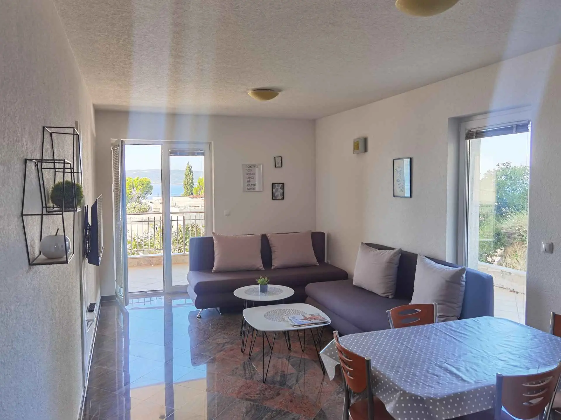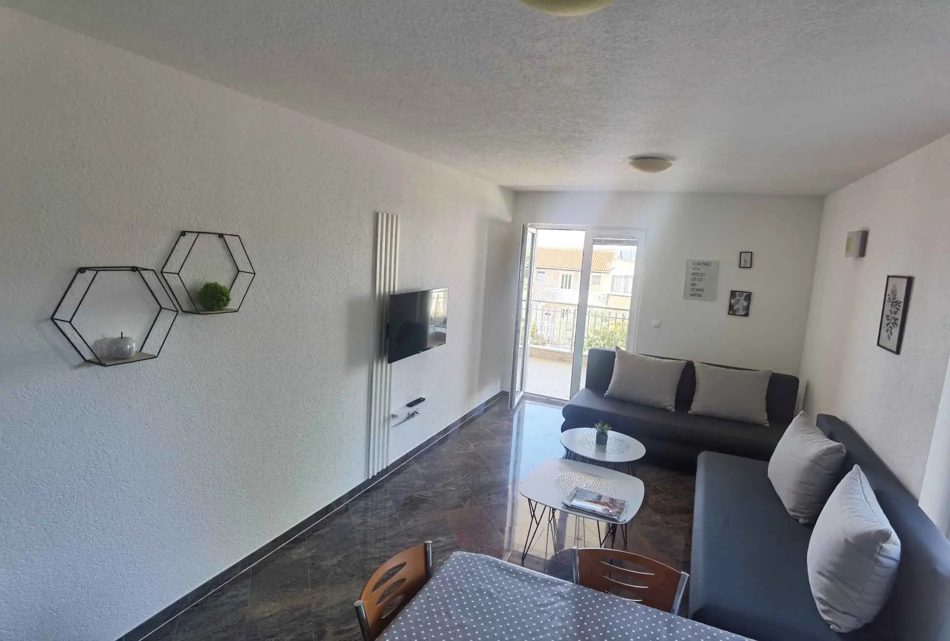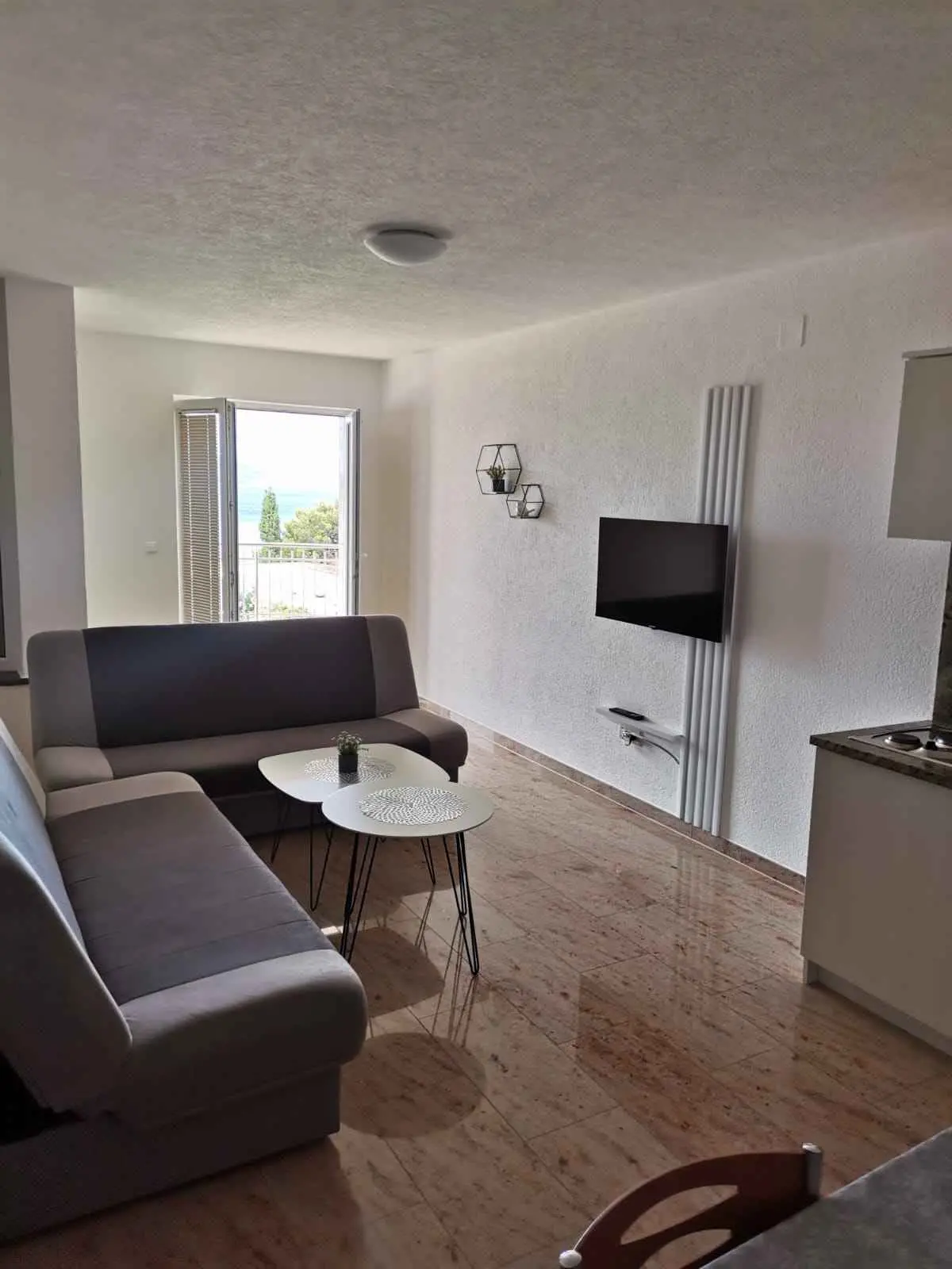 Villa Marić is located in a quiet part of Baška Voda, 200 meters from the sea. The villa offers a beautiful view of the sea, islands and surrounding mountains. There is a market, restaurants and cafes nearby. Spacious apartments consist of a double bedroom, bathroom, kitchen, dining room and living room. There is a sofa bed in the living room. Modernly equipped apartments make your stay more comfortable: SAT TV, WiFi, air conditioning and necessary kitchen utensils, and a terrace with a beautiful view of the sea. There is a spacious parking lot in front of the villa. Parking in the garage can be provided on request for an extra charge. The quiet environment around the house ensures peace from street noise and safety for children. Friendly staff are always at your service. We wish you a warm welcome and wish you to feel at home. We hope you will enjoy our apartments and that you will have an unforgettable time in Baška Voda! We are looking forward to your arrival!