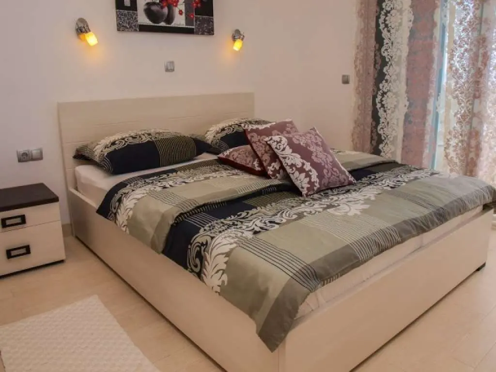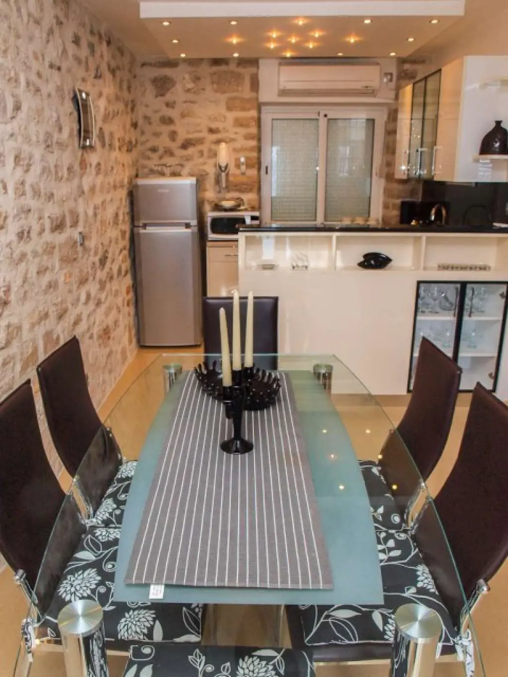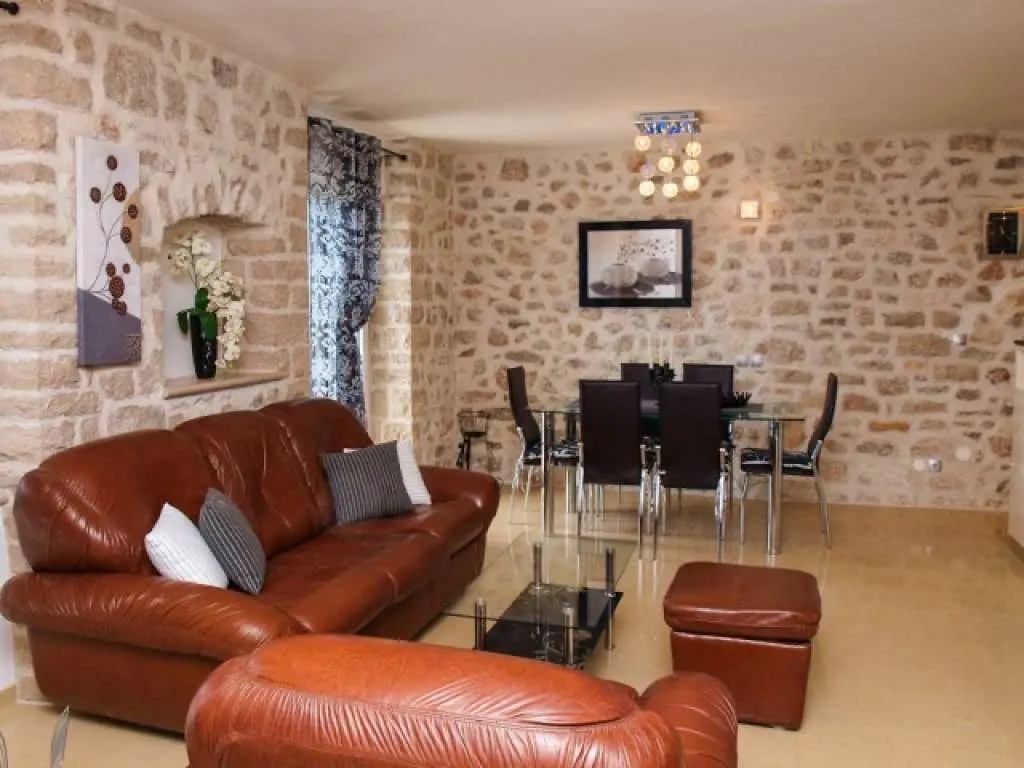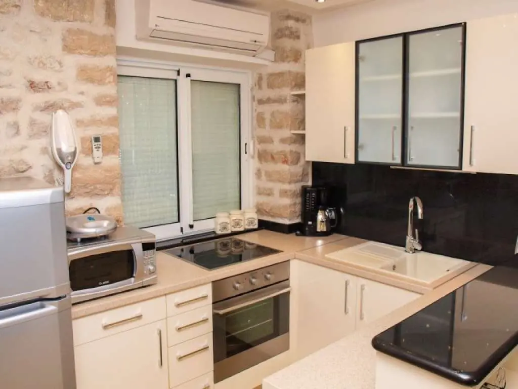 Luxury apartment RIVA is located in the very centre of Bol, on the waterfront, just 10 m from the sea. Completely renovated in 2011, this new, duplex apartment offers a combination of a traditional old Dalmatian house and modern interior. The spirit of the 100-years old stone walls creates a very special atmosphere. The owners of the apartment house RIVA have renovated it with great care, trying to cherish family memories. Duplex apartment Riva for 4 persons have a separate entrance from the north side of the house. First floor with 40 m2 has a modern, fully equipped kitchen, dining area, living room, bathroom and balcony. Second floor also with 40 m2 has two bedrooms, each with bathroom and terrace with a stunning view to the sea and the town of Bol. Both floors are air conditioned. The apartment has Satellite TV, Internet, built-in safe deposit box, washing machine, hair dryer, dish washer, microwave oven, coffee maker, toaster, iron and ironing board. There is a parking space in the public area in the centre, and we offer the garage daily rent. The apartment is conveniently located, only a couple of minutes walk to the nearest beach, and only 5 minutes on foot to the promenade that leads to Zlatni rat, the most beautiful beach of the Adriatic. Since the apartment is in the centre of Bol, all the shops, restaurants, pizzerias and bars are only a short walk away. Have you ever dreamt of waking up to the sound of the sea instead of the hustle and bustle of the urban way of life? Opening your eyes to the most beautiful view of the crystal clear water from your bed? Enjoying your morning coffee on the terrace by the sea? Want to feel all this? Then come to Bol. We wish you a warm welcome to the apartment RIVA where this dream can come true!