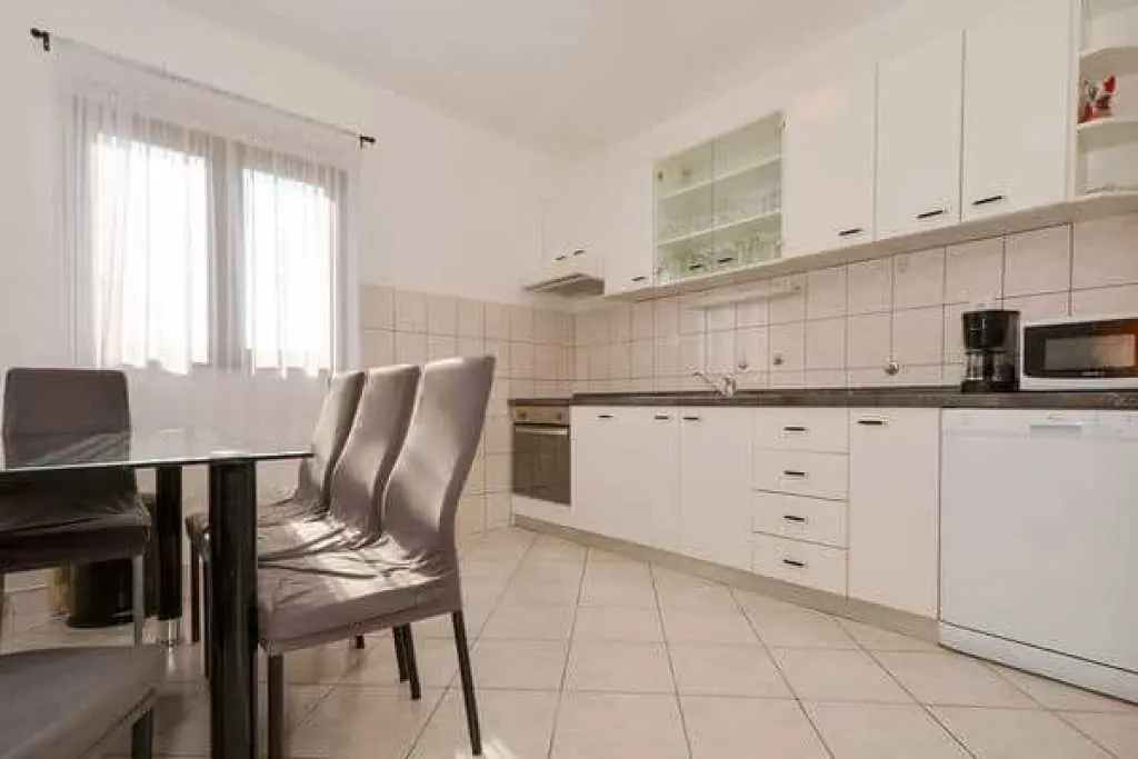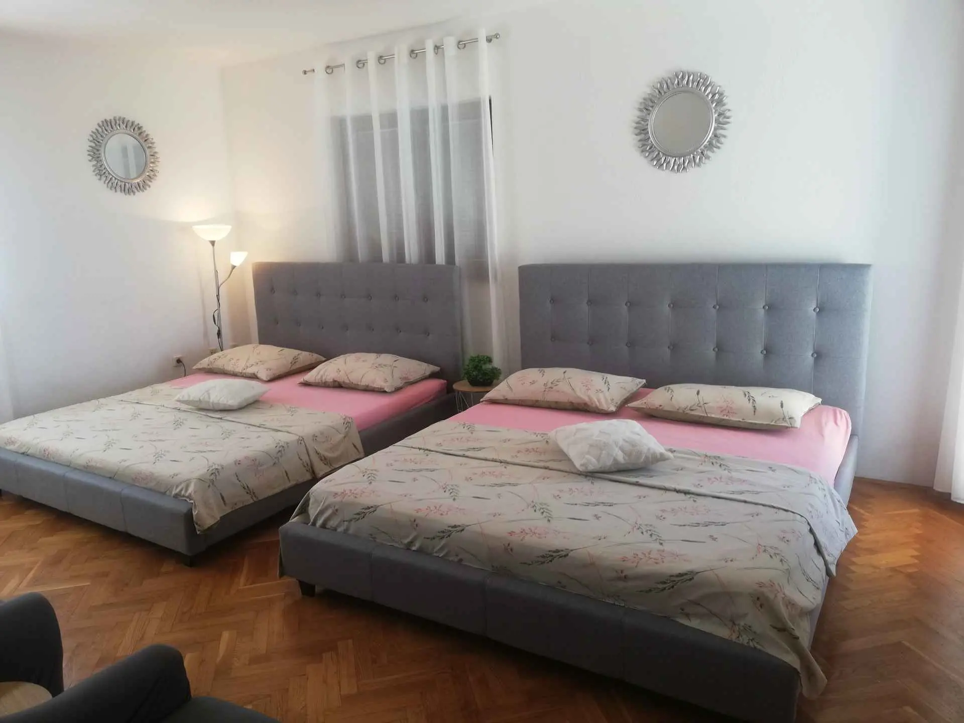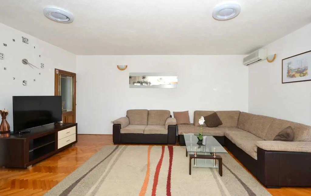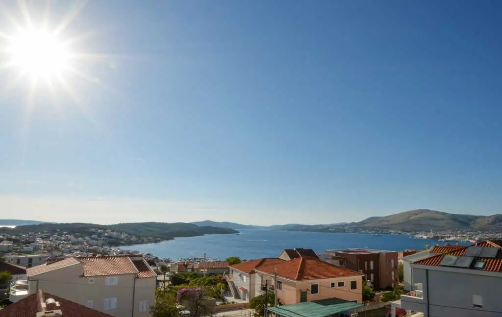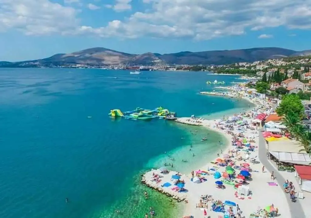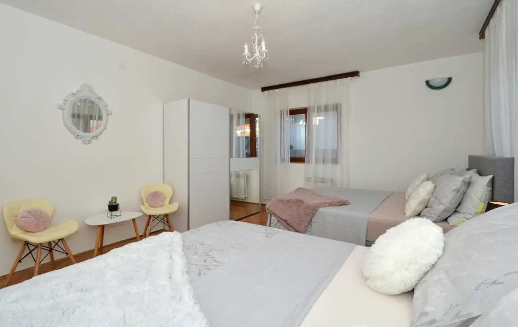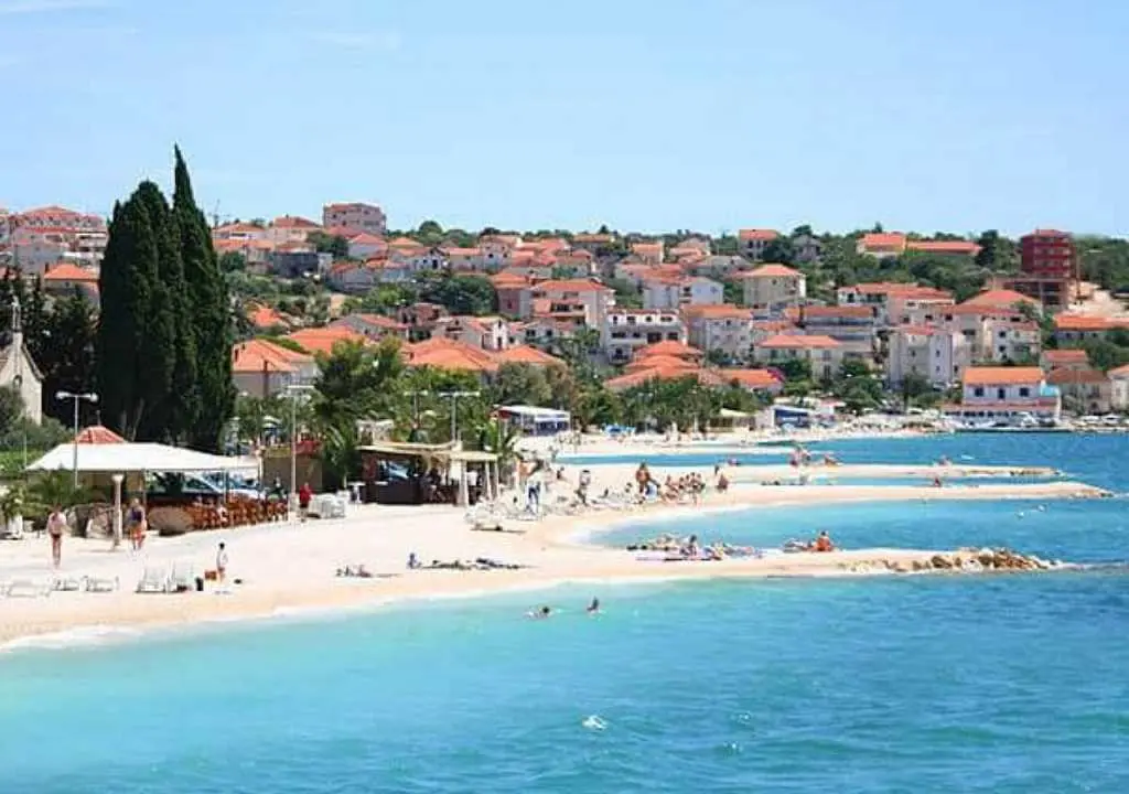 Apartments D & D are located in Okrug Gornji,Ciovo. Spacious and large apartments (200 square meters): Large kitchen with all appliances (dishwasher, coffee maker, microwave) and dining room, living room, three bedrooms, two bathrooms with washing machine, balconies with sea view, heated swimming pool, sunbeds, umbrella, barbecue, outdoor table, parking space, wi-fi, air conditioning. Each apartment is designed for 10 people. The accommodation is the perfect choice for those traveling in groups (20-24 people max). Beach in Okrug Gornji - Copacabana District The 'Zila kucavica' of the District, which in the summer months becomes the center of life of the Riviera, is a two-kilometer-long pebble beach Toc with a promenade. It is the center of all day and night events - filled with customers during the day, and entertainment lovers and gastronomes at night. Shops, cafes, restaurants, pharmacy, ATMs are only 200m away from the apartment. Only 5 minutes by car separates you from the District to the city of Trogir, which is primarily a centuries-old monument. Numerous monographs of the city, such as the one by Ivo Babić, show us that experts rightly consider it a city-monument, because within it it is possible to clearly discern all past historical epochs. If you are a fan of valuable architecture, the inevitable attention should be paid to the pro-class, the most monumental work of the Romanesque-Gothic style in Croatia - the main portal of the church of Sv. Lawrence in Trogir, named after his master Radovan. Experts say that this work is of great importance for the entire Adriatic basin, and can be compared to any European achievement of that time! The relief of the Greek god Kairos from the 4th century, which is kept in the Trogir monastery of St. Nikola, which has become a kind of symbol of Trogir - he is the god of a happy moment that needs to be caught by a tuft of hair and thus catch a happy opportunity, otherwise it will disappear. Grab a happy moment and "jump" from Okrug to Trogir. Let your dream vacation be in Okrug Gornji. We are looking forward to your arrival. Your hosts Dubravka and Damir Jelovic