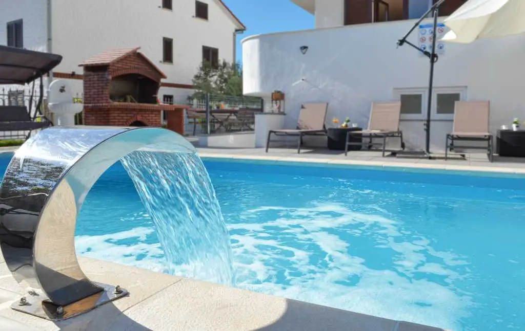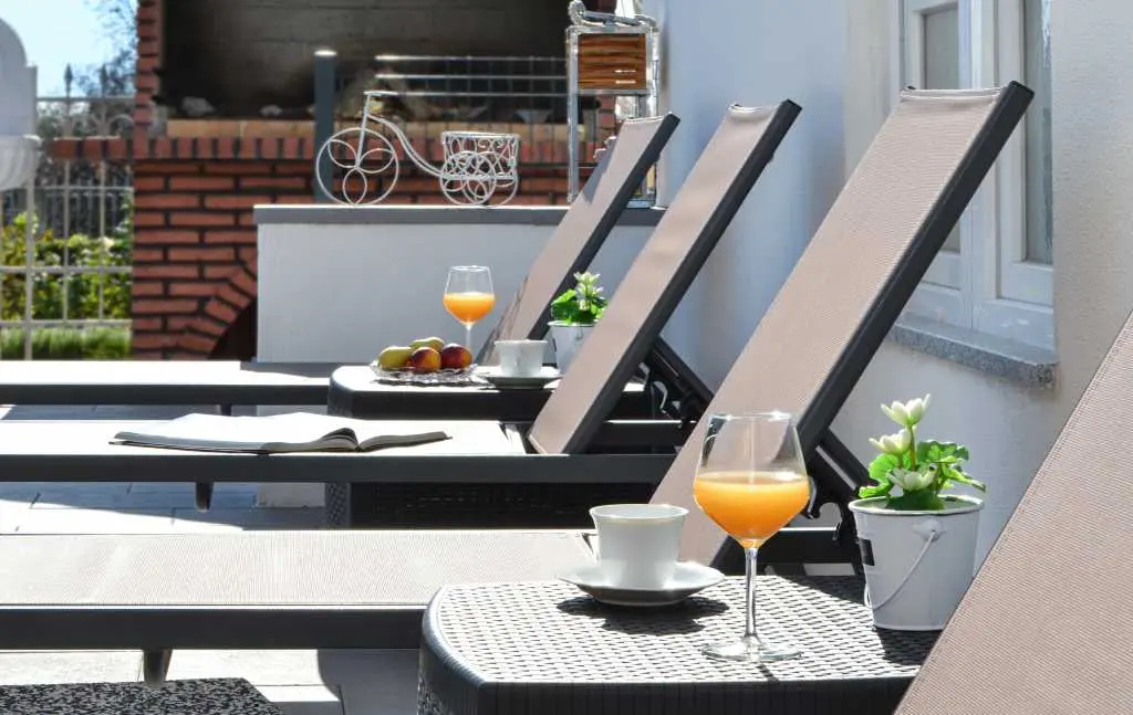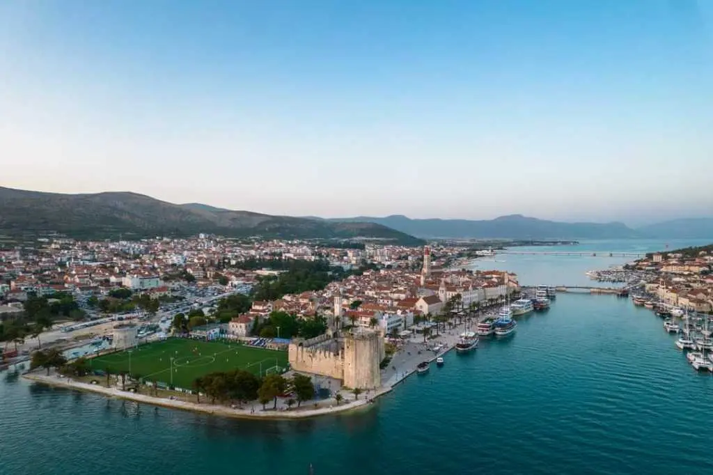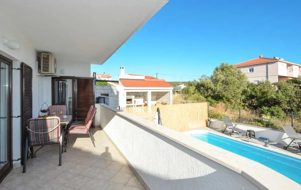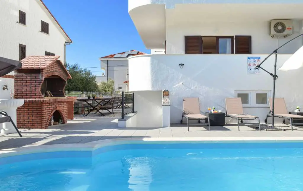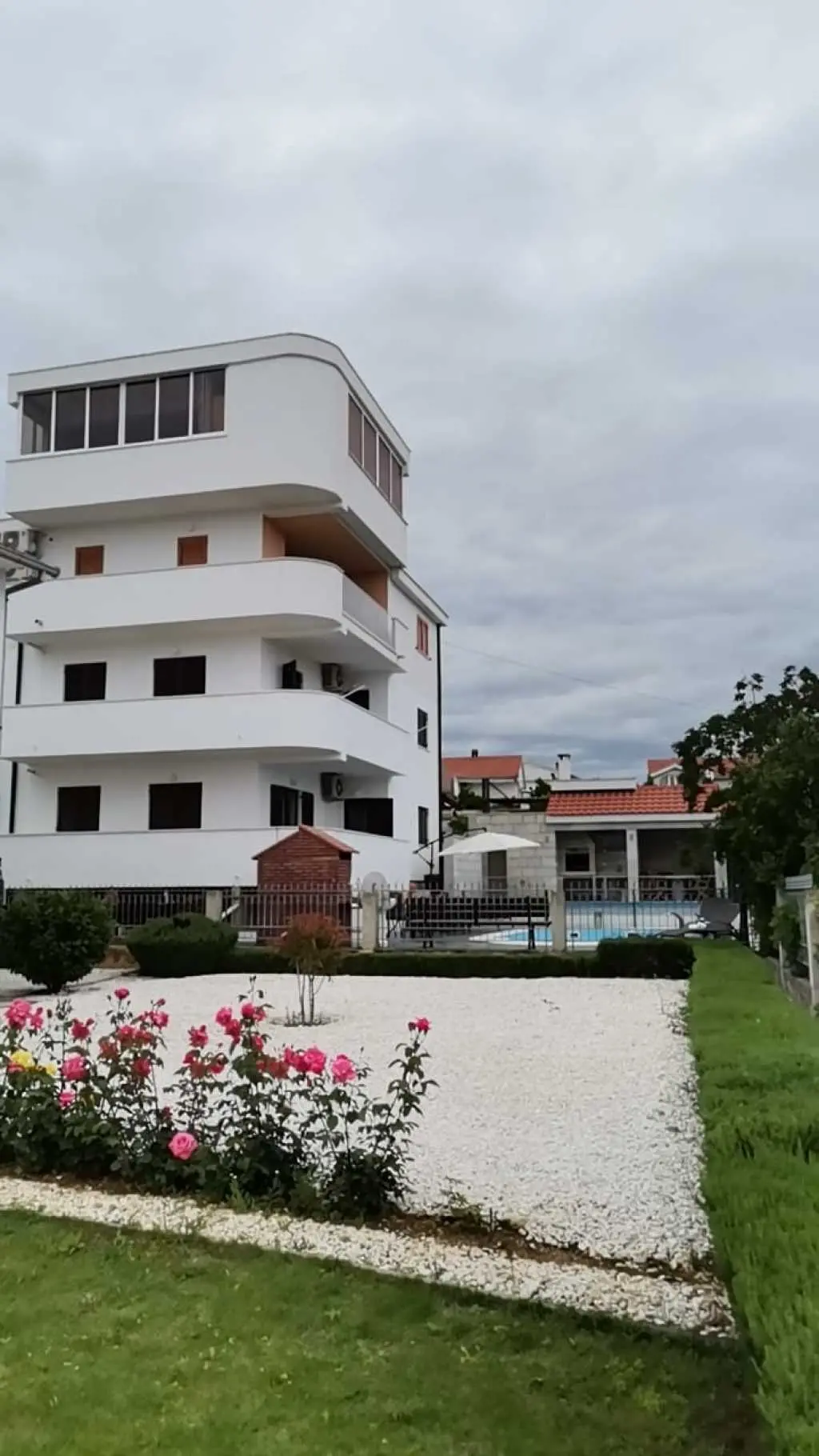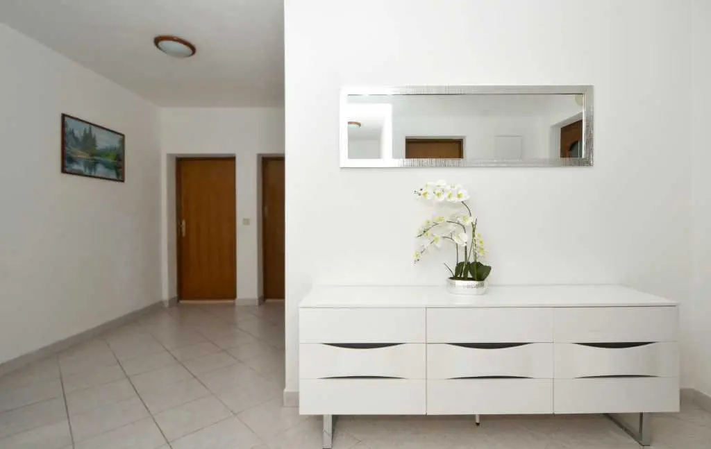 Apartments D & D are located in Okrug Gornji,Ciovo. Spacious and large apartments (200 square meters): Large kitchen with all appliances (dishwasher, coffee maker, microwave) and dining room, living room, three bedrooms, two bathrooms with washing machine, balconies with sea view, heated swimming pool, sunbeds, umbrella, barbecue, outdoor table, parking space, wi-fi, air conditioning. Each apartment is designed for 10 people. The accommodation is the perfect choice for those traveling in groups (20-24 people max). Beach in Okrug Gornji - Copacabana District The 'Zila kucavica' of the District, which in the summer months becomes the center of life of the Riviera, is a two-kilometer-long pebble beach Toc with a promenade. It is the center of all day and night events - filled with customers during the day, and entertainment lovers and gastronomes at night. Shops, cafes, restaurants, pharmacy, ATMs are only 200m away from the apartment. Only 5 minutes by car separates you from the District to the city of Trogir, which is primarily a centuries-old monument. Numerous monographs of the city, such as the one by Ivo Babić, show us that experts rightly consider it a city-monument, because within it it is possible to clearly discern all past historical epochs. If you are a fan of valuable architecture, the inevitable attention should be paid to the pro-class, the most monumental work of the Romanesque-Gothic style in Croatia - the main portal of the church of Sv. Lawrence in Trogir, named after his master Radovan. Experts say that this work is of great importance for the entire Adriatic basin, and can be compared to any European achievement of that time! The relief of the Greek god Kairos from the 4th century, which is kept in the Trogir monastery of St. Nikola, which has become a kind of symbol of Trogir - he is the god of a happy moment that needs to be caught by a tuft of hair and thus catch a happy opportunity, otherwise it will disappear. Grab a happy moment and "jump" from Okrug to Trogir. Let your dream vacation be in Okrug Gornji. We are looking forward to your arrival. Your hosts Dubravka and Damir Jelovic