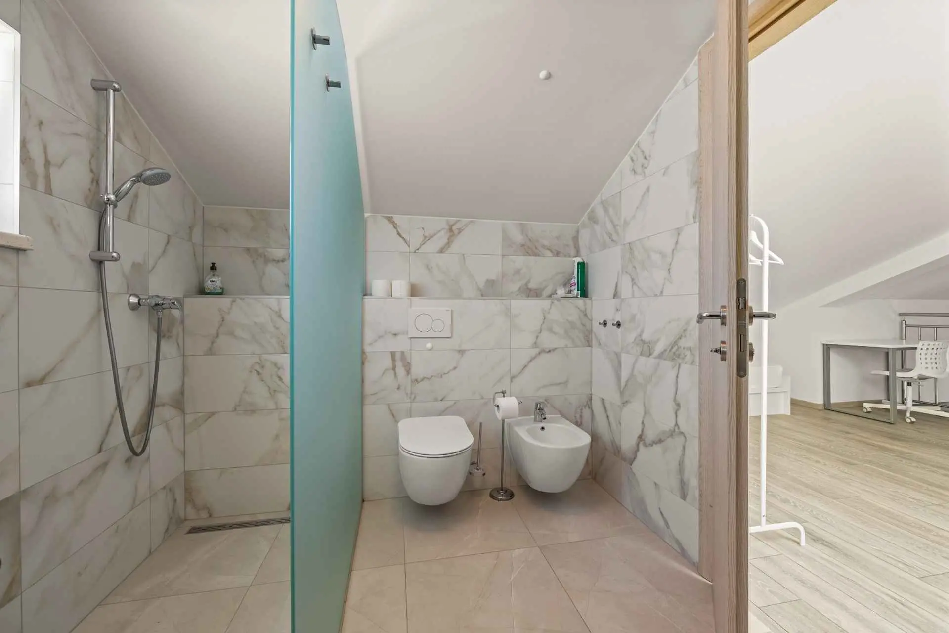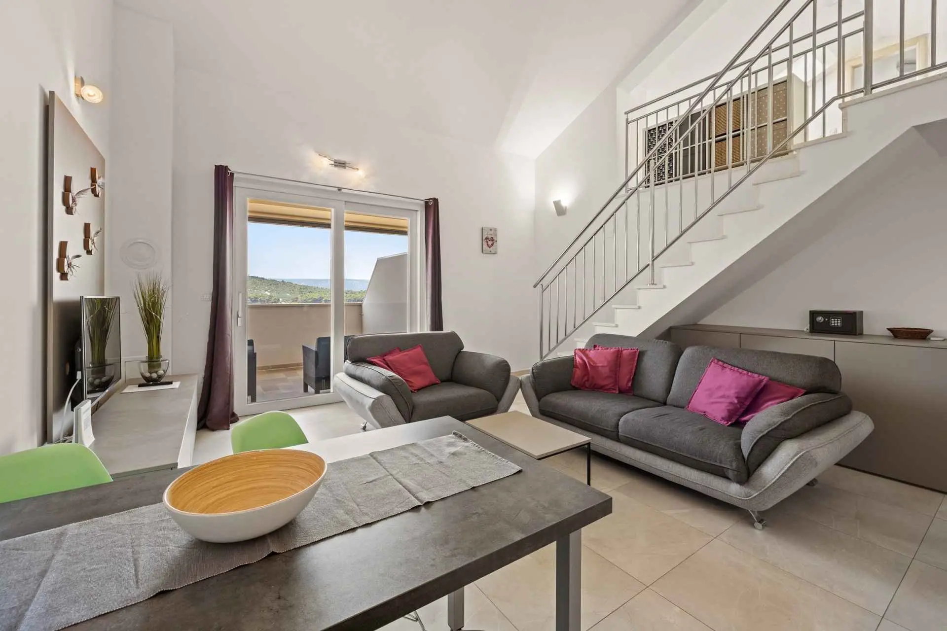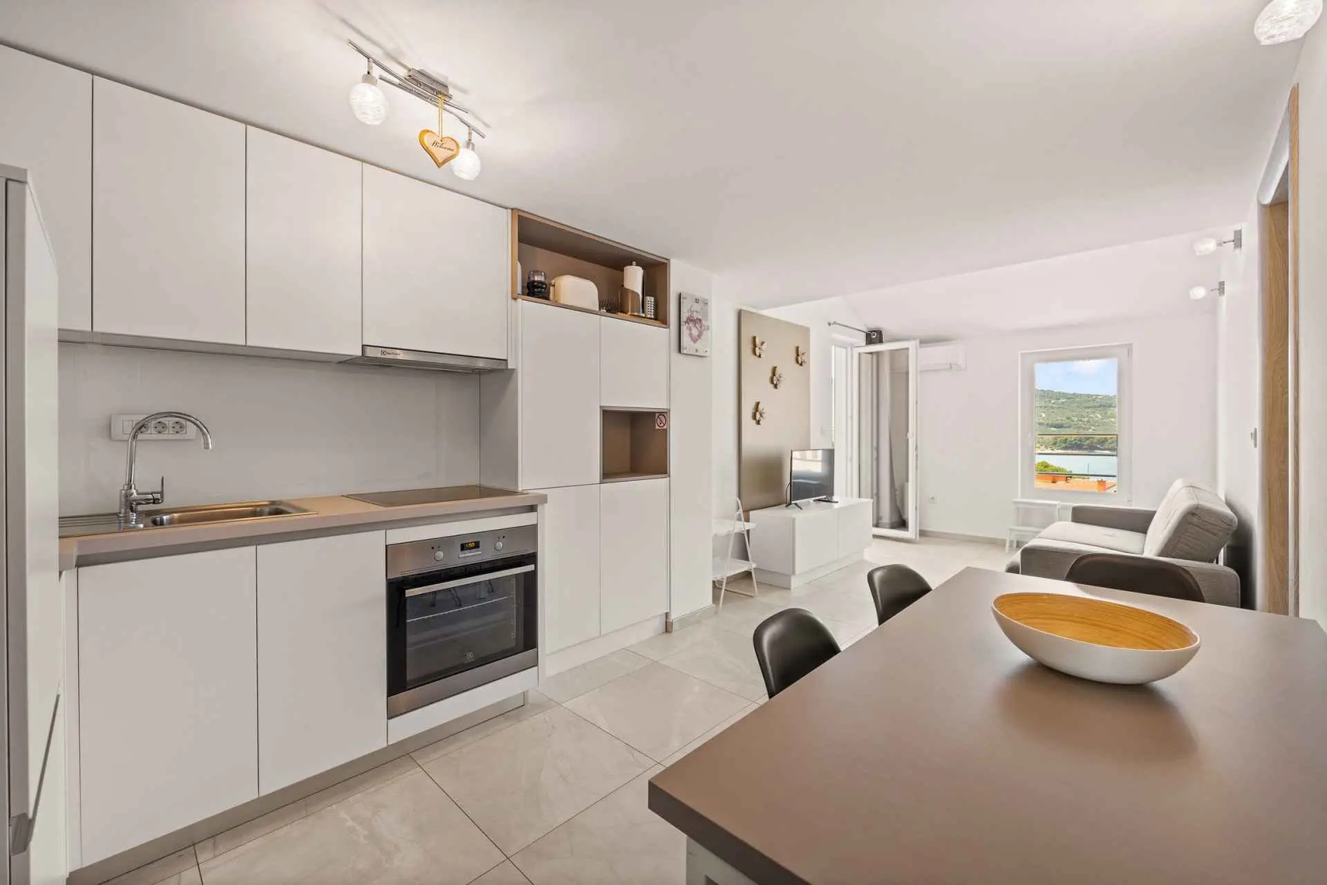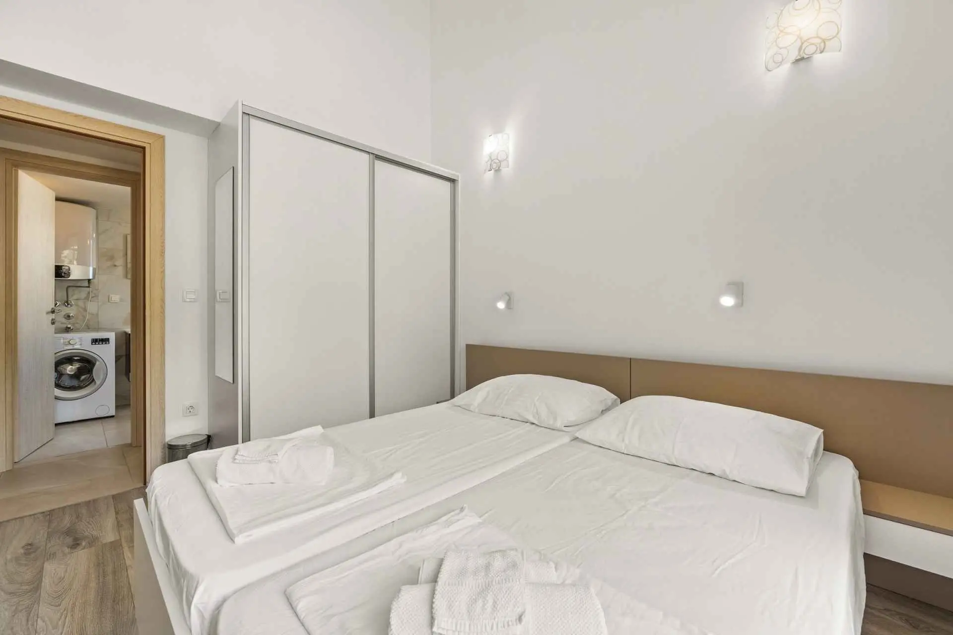 Beautiful Apartments Jana & Paula are located in Cres, just 700 meters from the city Center, yet outside of the city bustle.Both apartments have maginificent sea view from the balcony. Apartment Jana consists of two bedrooms, a living room, a kitchen, two bathrooms and a balcony with beautiful sea view. One bedroom and bathroom are located on the gallery, which makes it a perfect choice for a children's corner. Additional two airbeds can be placed in the gallery, turning the apartment into a perfect space for up to 4 adults and 2 children. One parking space is provided in front of the building, and another one can be provided the garage. If you need two parking spaces, please notify us in advance. Apartment Paula consists of two bedrooms, a living room, a kitchen, one bathroom and a balcony with beautiful sea view. One parking space is provided in front of the building.