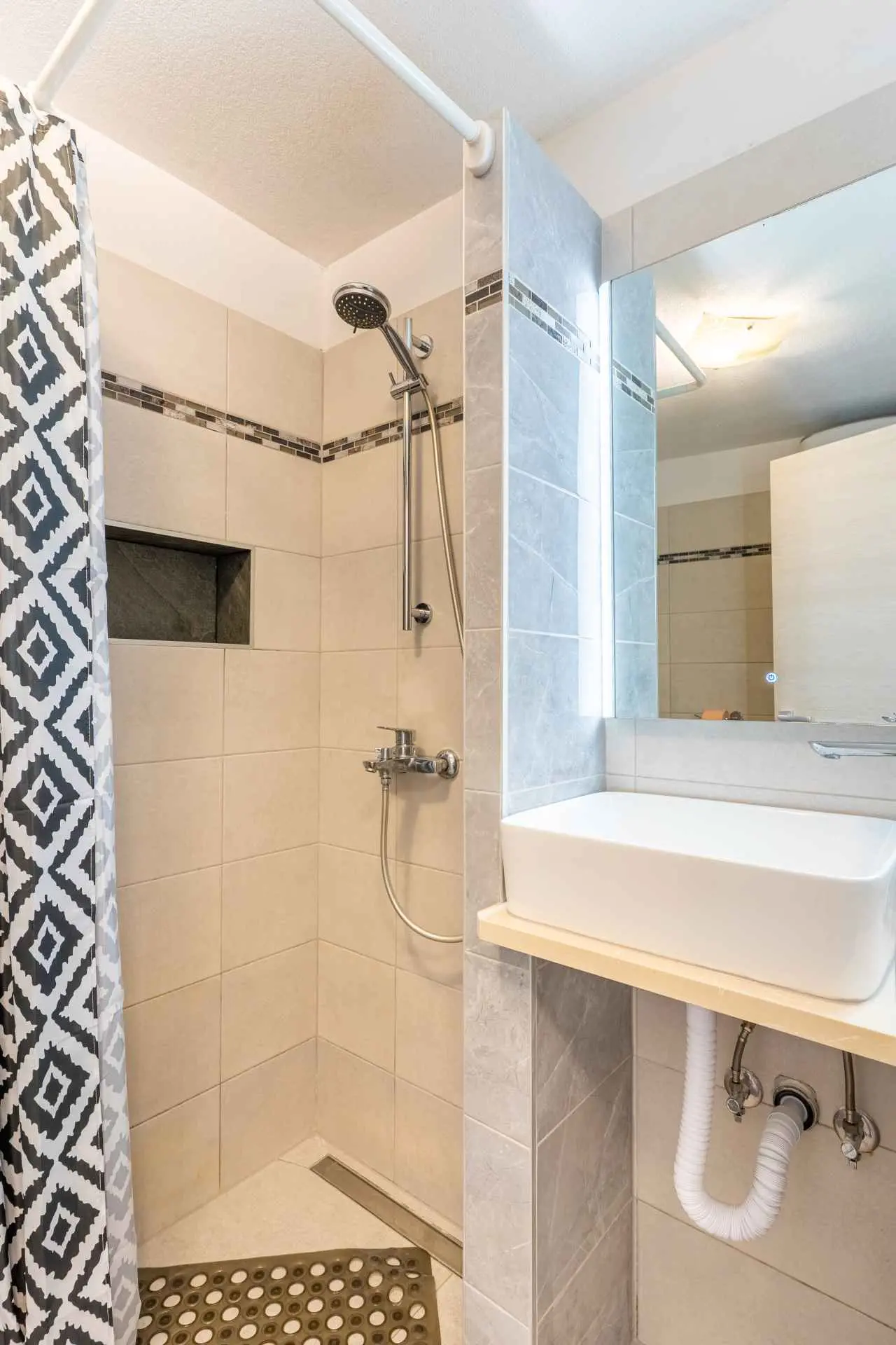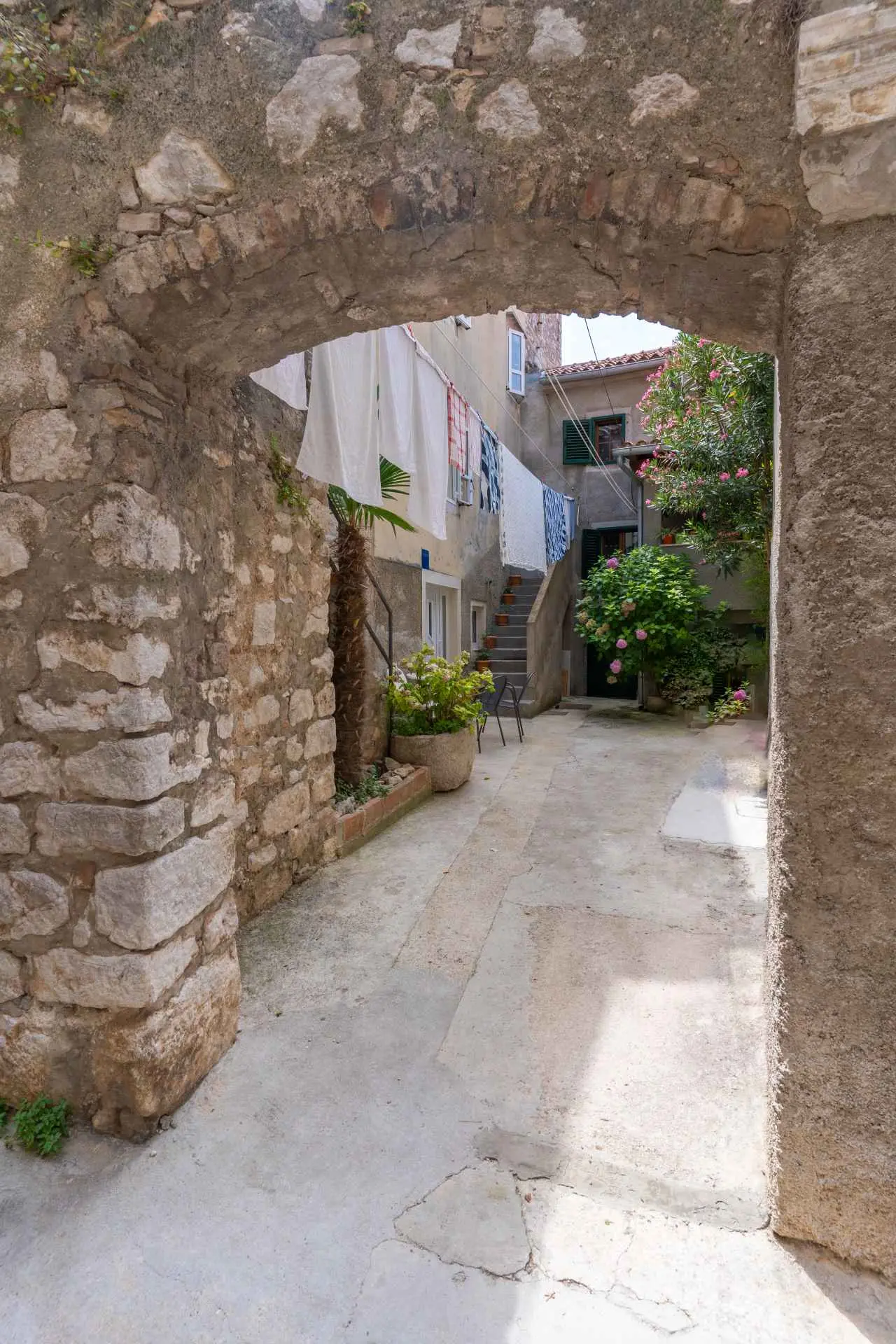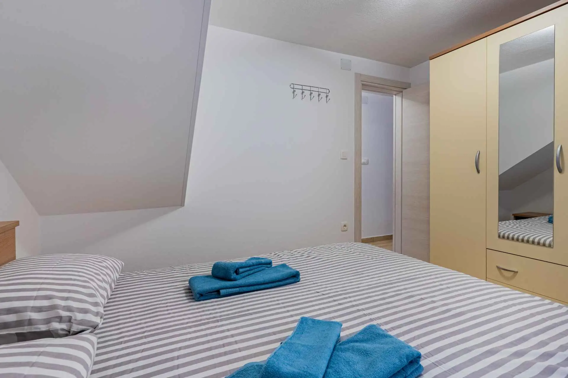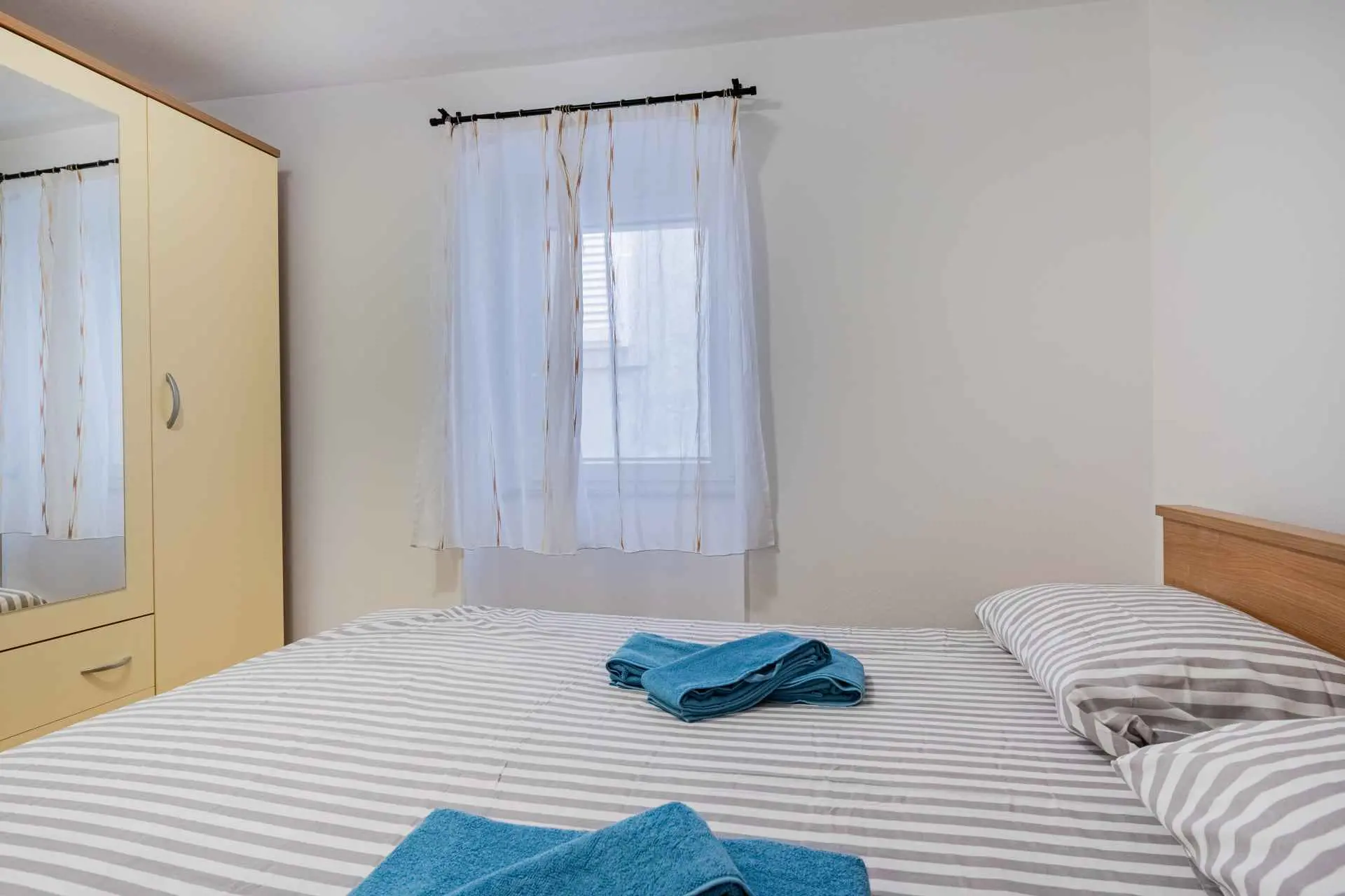 The apartment is located on the ground floor of the family house and has its own separate entrance. It is located in a quiet part of the old town, where all necessary facilities (restaurants, bakery, orchard, butcher, coffee bar, pharmacy, etc.) are only a 2-minute walk away. The apartment is modernly equipped, and includes one bedroom with a large bed, a kitchen with a refrigerator and an oven, a bathroom with a large shower and a washing machine, a living room with air conditioning and a TV. The price includes free Wi-Fi and a private parking space near the apartment.