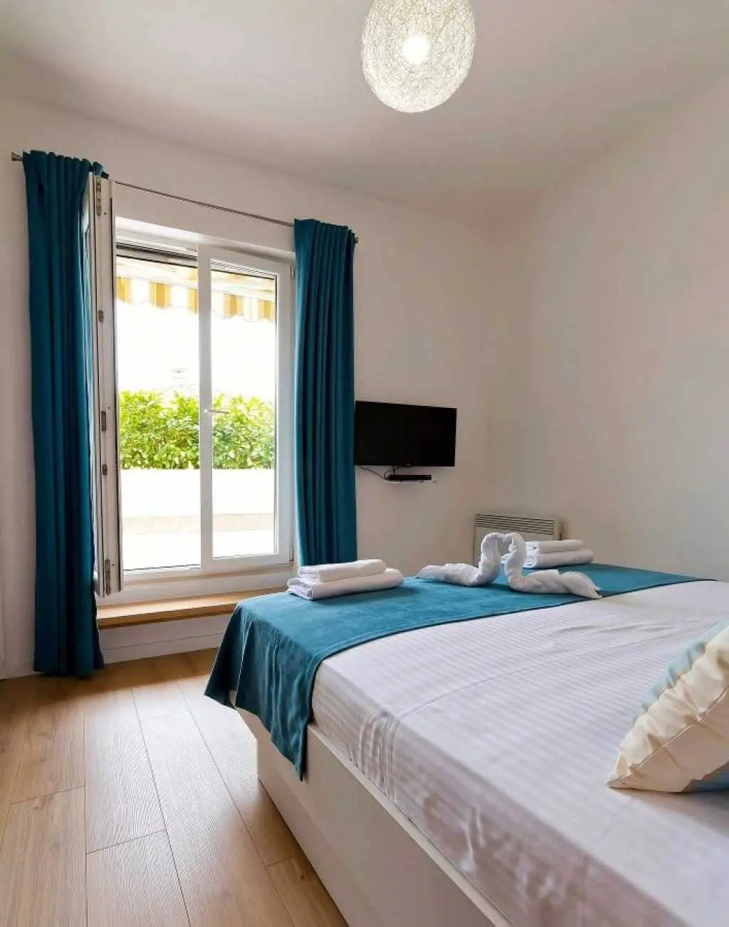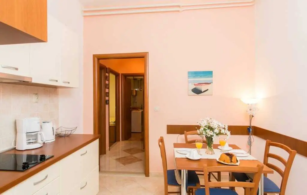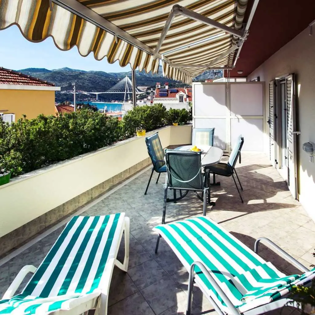 Apartment Michelle is a 45 sqm, two bedroom apartment situated on the ground floor of a family house in Lapad. It consists of two double bedrooms with LCD TV, fully equipped fitted kitchen and dining area with SAT TV, one bathroom with shower and a terrace with garden furniture and a partial sea view and the Dubrovnik bridge. The apartment is fully air conditioned and provides additional amenities such as free Wi-Fi, Sat TV, washing machine, iron & ironing board, hair dryer, etc. The nearest beach is about 10 minutes walk away (Uvala Lapad beach) and a mini-market is just a minute walk, as well as a shopping centre which is only 5 minutes walk away. There is a very good bus service to the Old city of Dubrovnik and the bus takes you there in 10 minutes. Apartment is situated in a peaceful area of Dubrovnik. It is in the vicinity of all important touristic facilities. A few hundred meters from the apartment is one of the Dubrovniks most beautiful and well known walking areas called Uvala Lapad. Nearby, there are beautiful beaches, tennis courts, restaurants, hotels, markets, a trade center, a pharmacy, a clinic, hospital, bank, post-office, taxi and a bus stop.