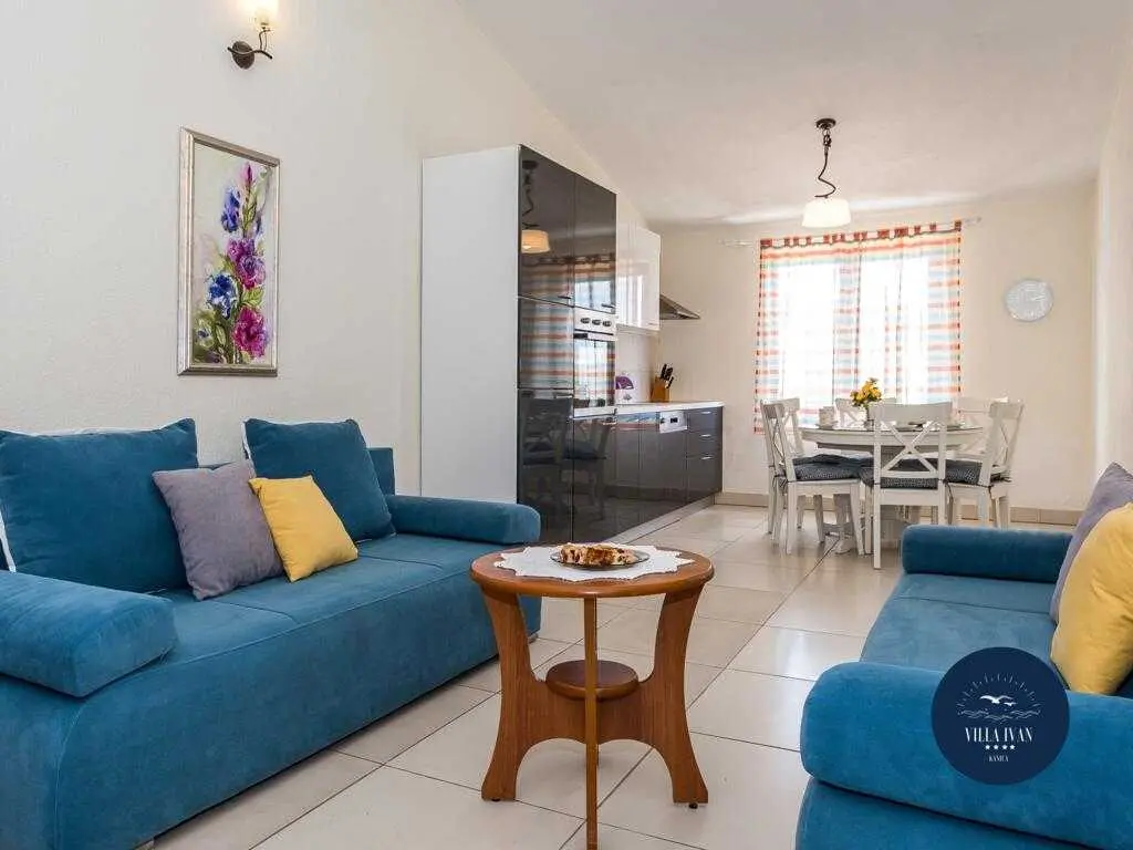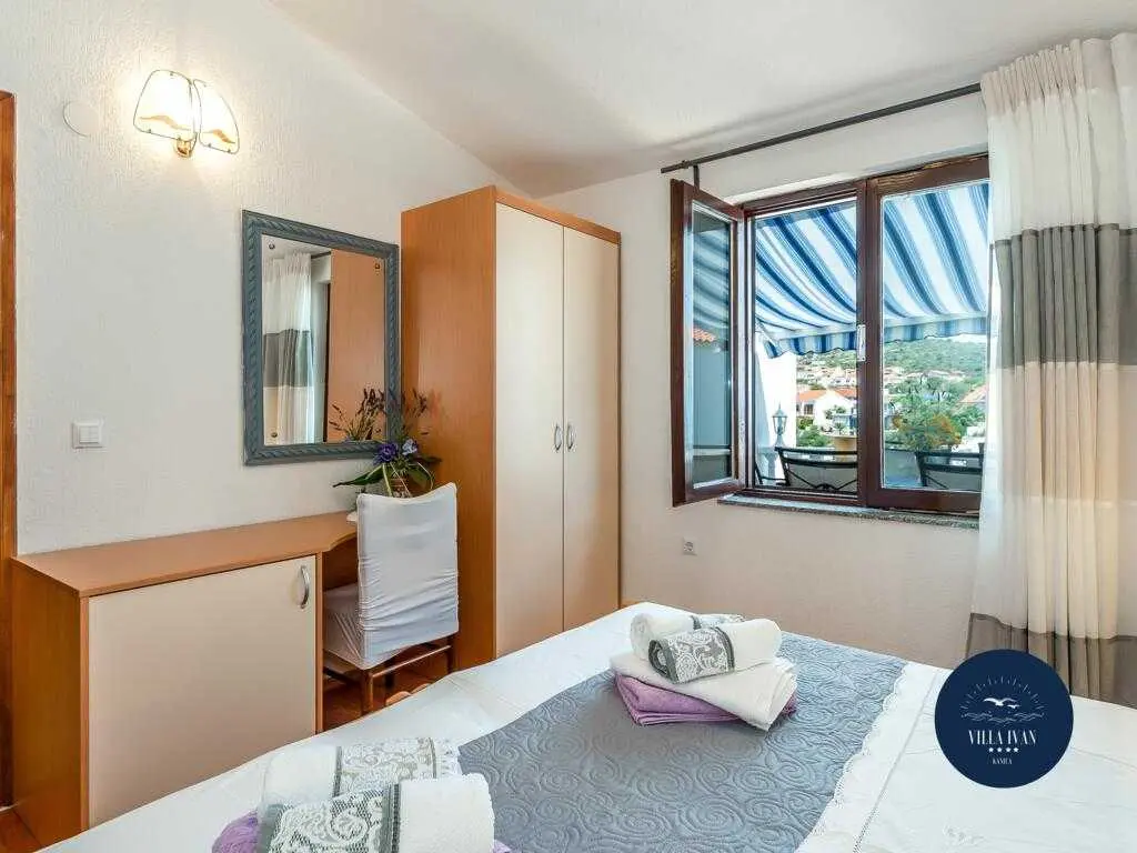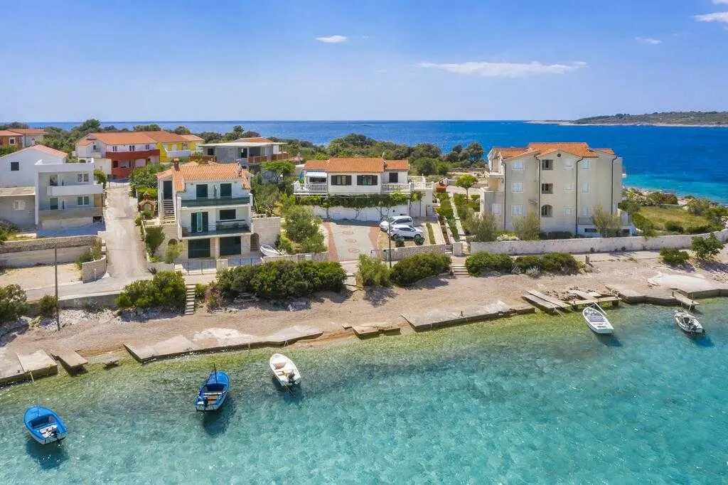 Apartment 4 **** is located in a quiet bay near Rogoznica on Kanica, right on the sea with direct access to the beach! Our guests can expect a great and comfortable apartment in the first row to the sea and the beach. On the beach below the house there are deck chairs available to our guests. Boat mooring is also available free of charge. The whole apartment is air conditioned and has bedrooms. All rooms and the terrace offer a sea view. It is an ideal place for a family vacation with small children. The apartments are comfortable, luxuriously furnished, with separate entrances. You can enjoy the clear sea, untouched nature, diving, fishing, sailing, each apartment has 2 bedrooms, 2 bathrooms, large terrace overlooking the open sea, large living room, fully equipped kitchen, barbecue, indoor parking, Park for children. If you see the cultural wealth and national parks nearby, old Trogir, Sibenik and Split, as well as the national park Krka, Kornati, Paklenica. All apartments have air conditioning, wireless internet access. Ideal for a family vacation. Private parking in the yard Garden with barbecue available to guests Boat mooring The apartments are equipped with satellite, WiFi, washing machine, dishwasher and other appliances. Kanica is a small fishing village with 2 restaurants, ideal for a quiet holiday. Nearby are the old Trogir, Split, Primosten and Sibenik, as well as the national parks Krka and Kornati.