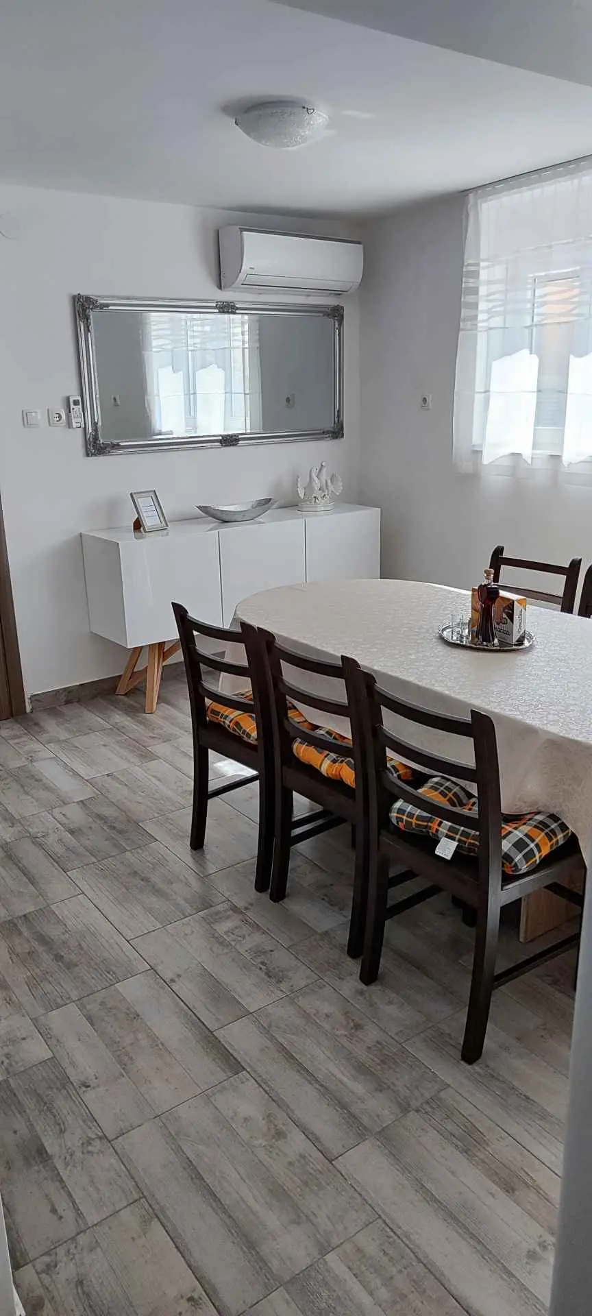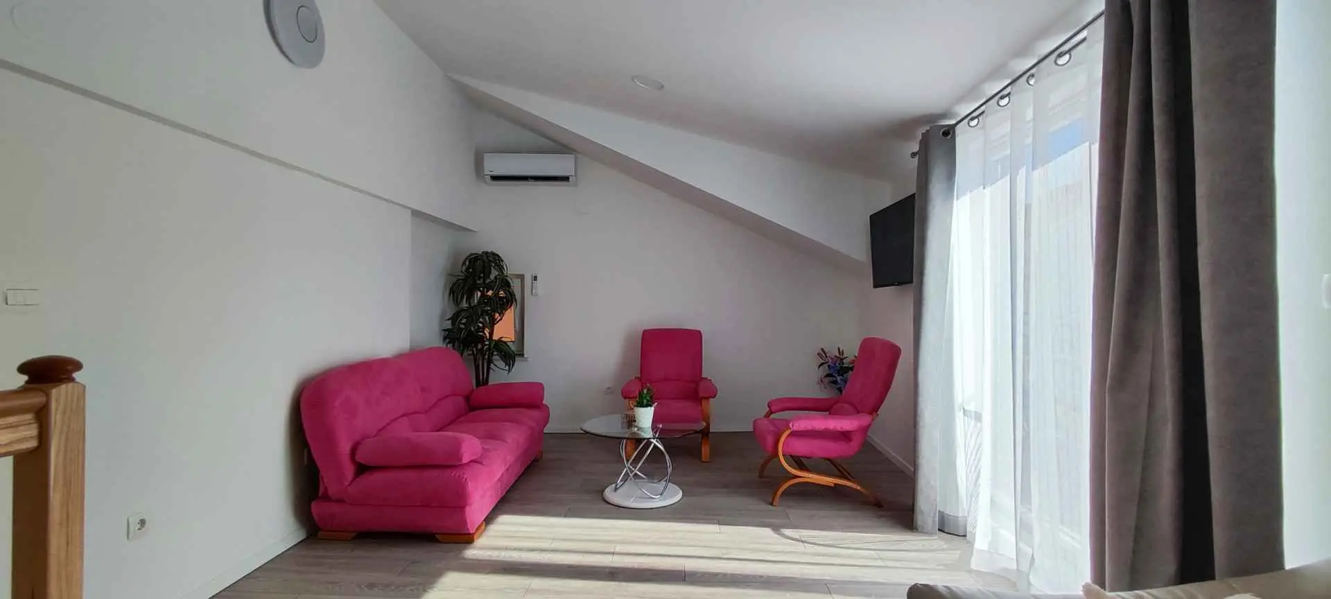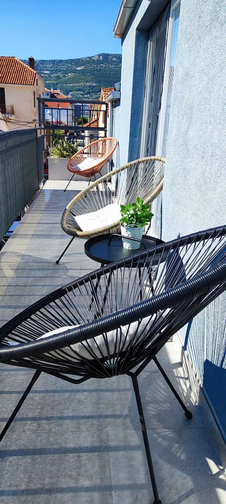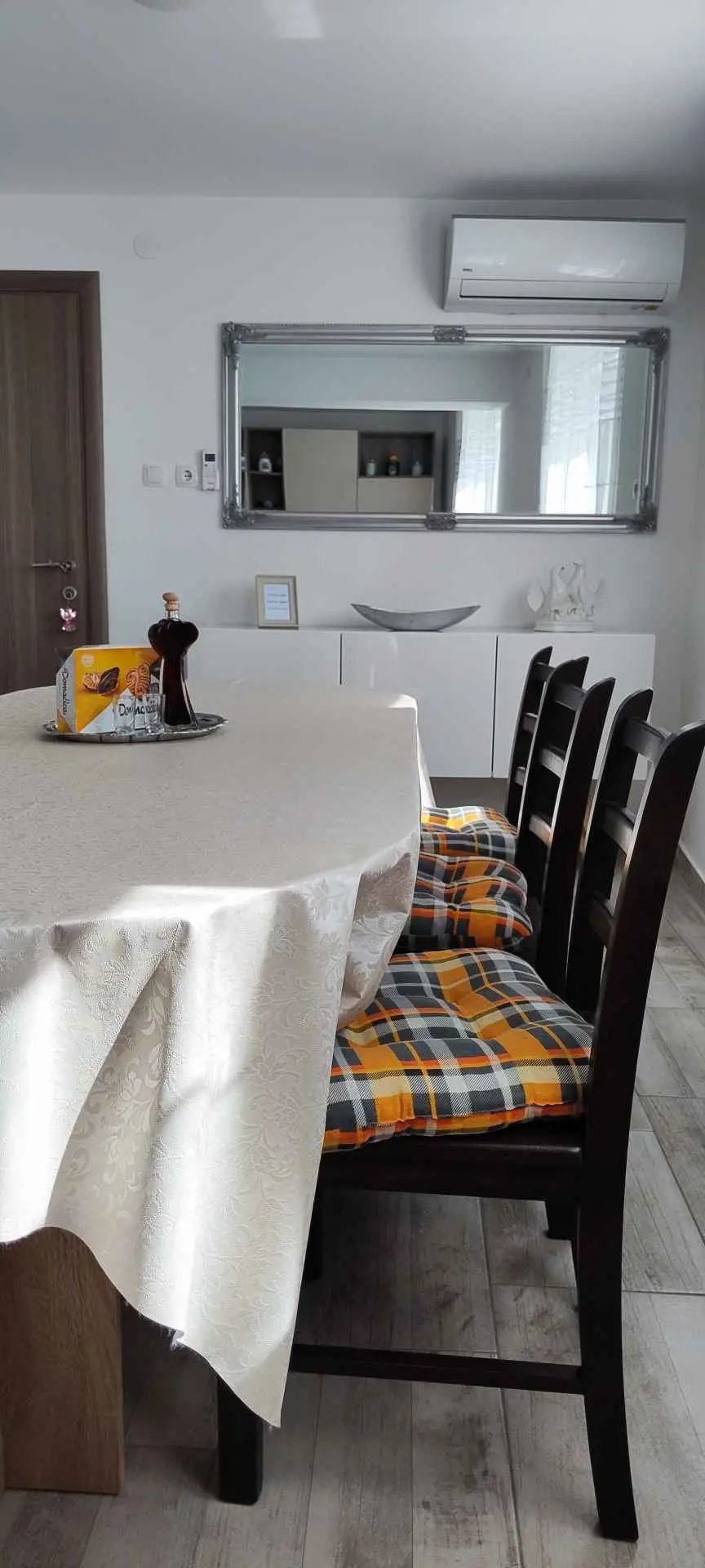 Apartment Leona is located in the old part of Kaštel Novi. The apartment is located in a renovated house with a ground floor, first floor and attic. It is only 250 m from the sea. It consists of a dining room, kitchen and bathroom on the ground floor, two bedrooms on the first floor and a newly decorated attic. The kitchen has all the necessary facilities (oven, dishwasher, microwave...), air conditioning, a large dining table and smart TV. There is a washing machine in the bathroom. The first bedroom consists of a double bed plus a single bed. There is an air conditioner in the room. The second bedroom has a double bed and a floor fan. In the attic there is a large living room with a three-seater and two armchairs on one side and a two-seater on the other side. It also has air conditioning and a large smart TV. You can sit and relax on the balcony and there is an outside clothes dryer. Apartment Leona is modernly decorated and equipped for a pleasant stay.