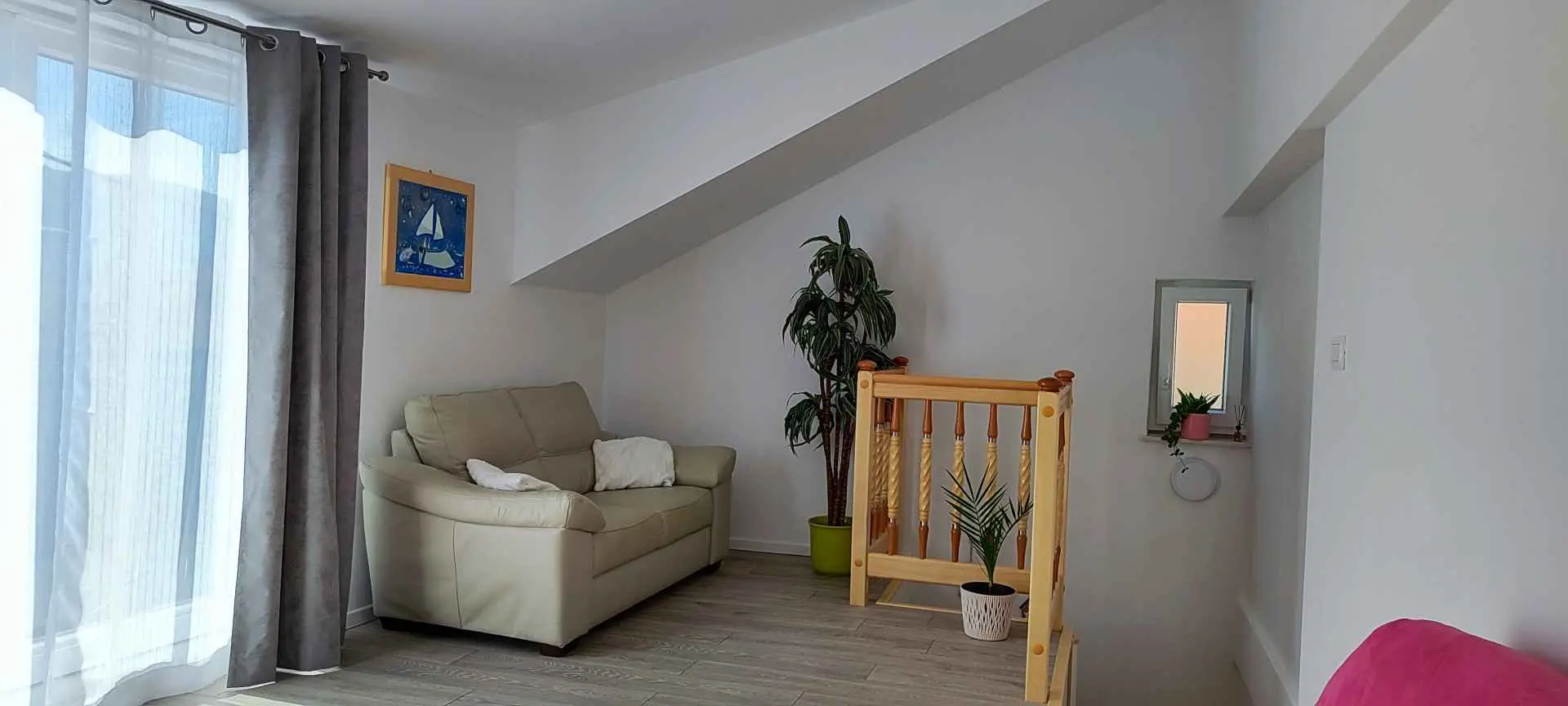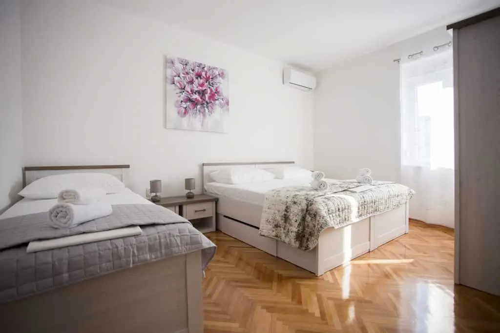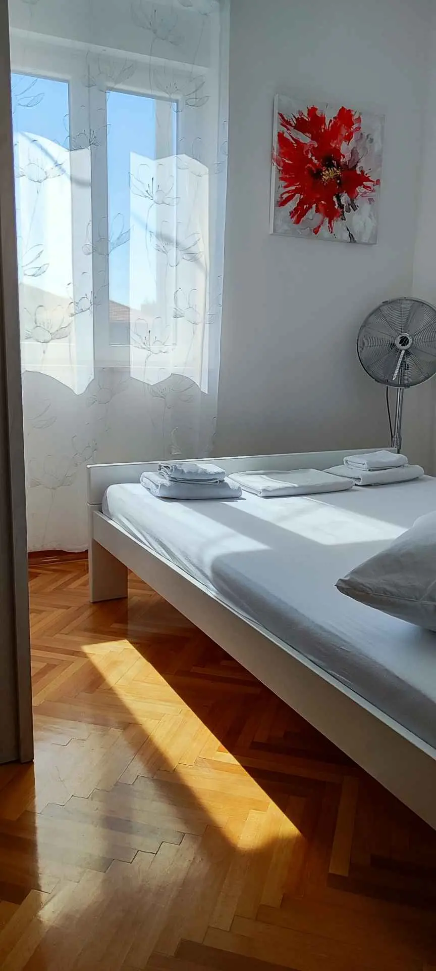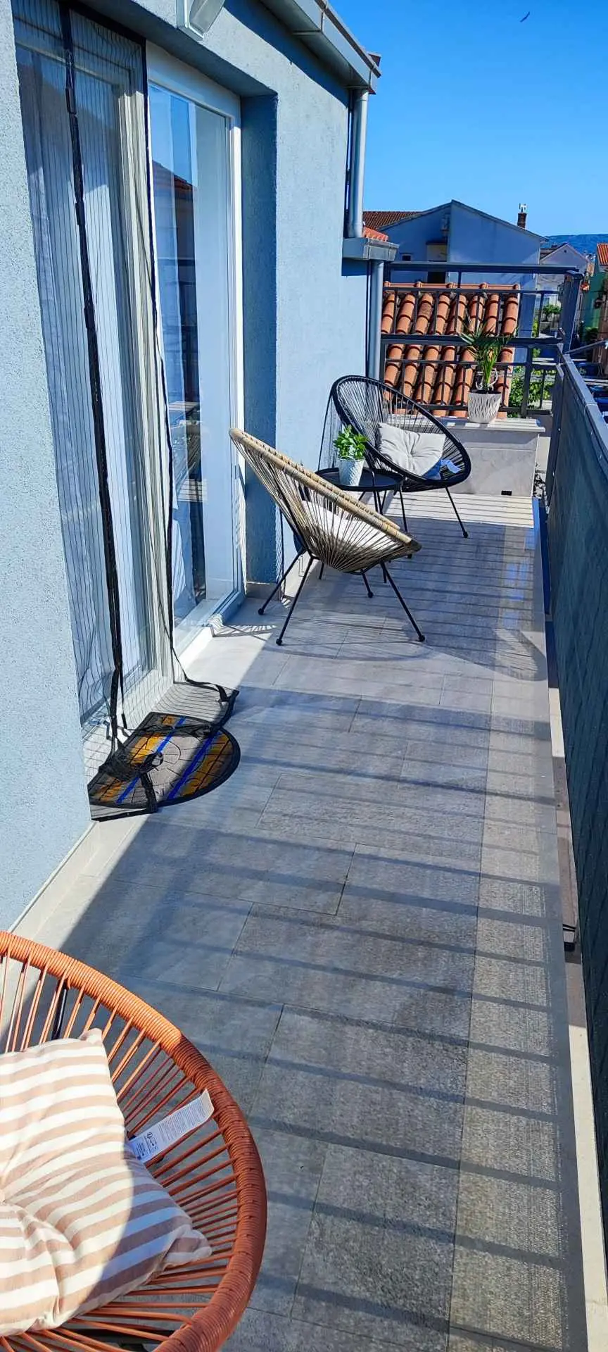 Apartment Leona is located in the old part of Kaštel Novi. The apartment is located in a renovated house with a ground floor, first floor and attic. It is only 250 m from the sea. It consists of a dining room, kitchen and bathroom on the ground floor, two bedrooms on the first floor and a newly decorated attic. The kitchen has all the necessary facilities (oven, dishwasher, microwave...), air conditioning, a large dining table and smart TV. There is a washing machine in the bathroom. The first bedroom consists of a double bed plus a single bed. There is an air conditioner in the room. The second bedroom has a double bed and a floor fan. In the attic there is a large living room with a three-seater and two armchairs on one side and a two-seater on the other side. It also has air conditioning and a large smart TV. You can sit and relax on the balcony and there is an outside clothes dryer. Apartment Leona is modernly decorated and equipped for a pleasant stay.