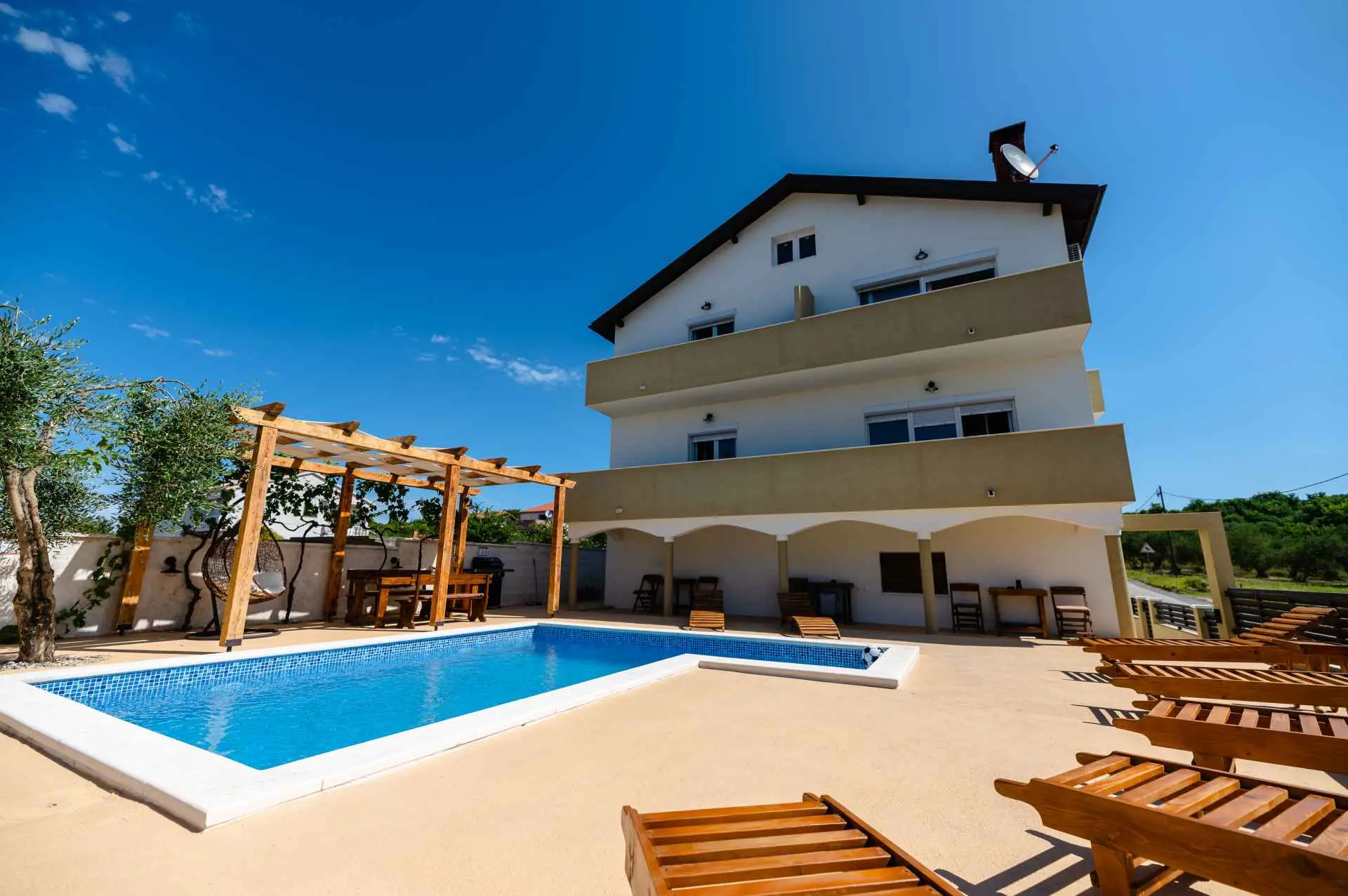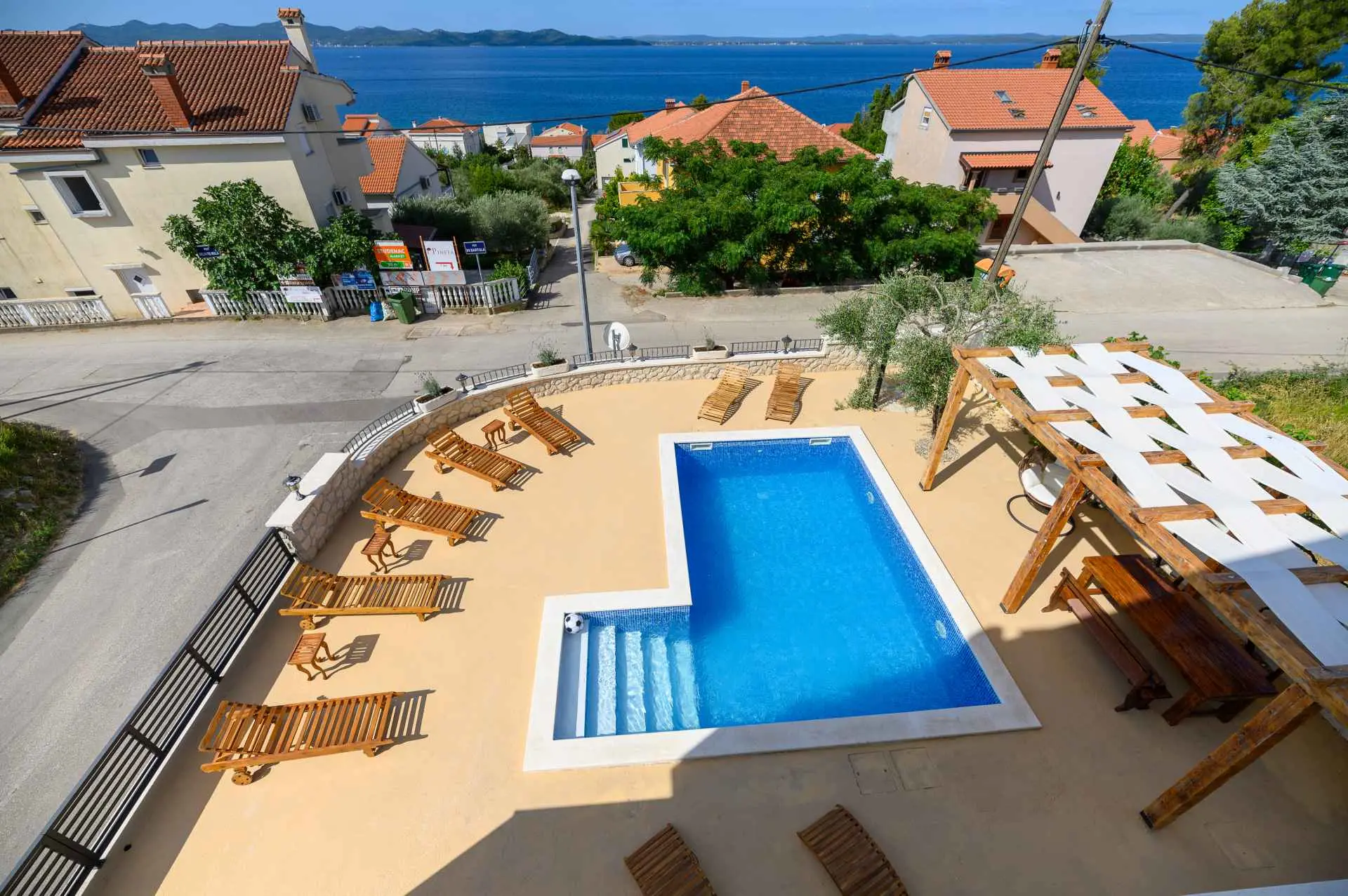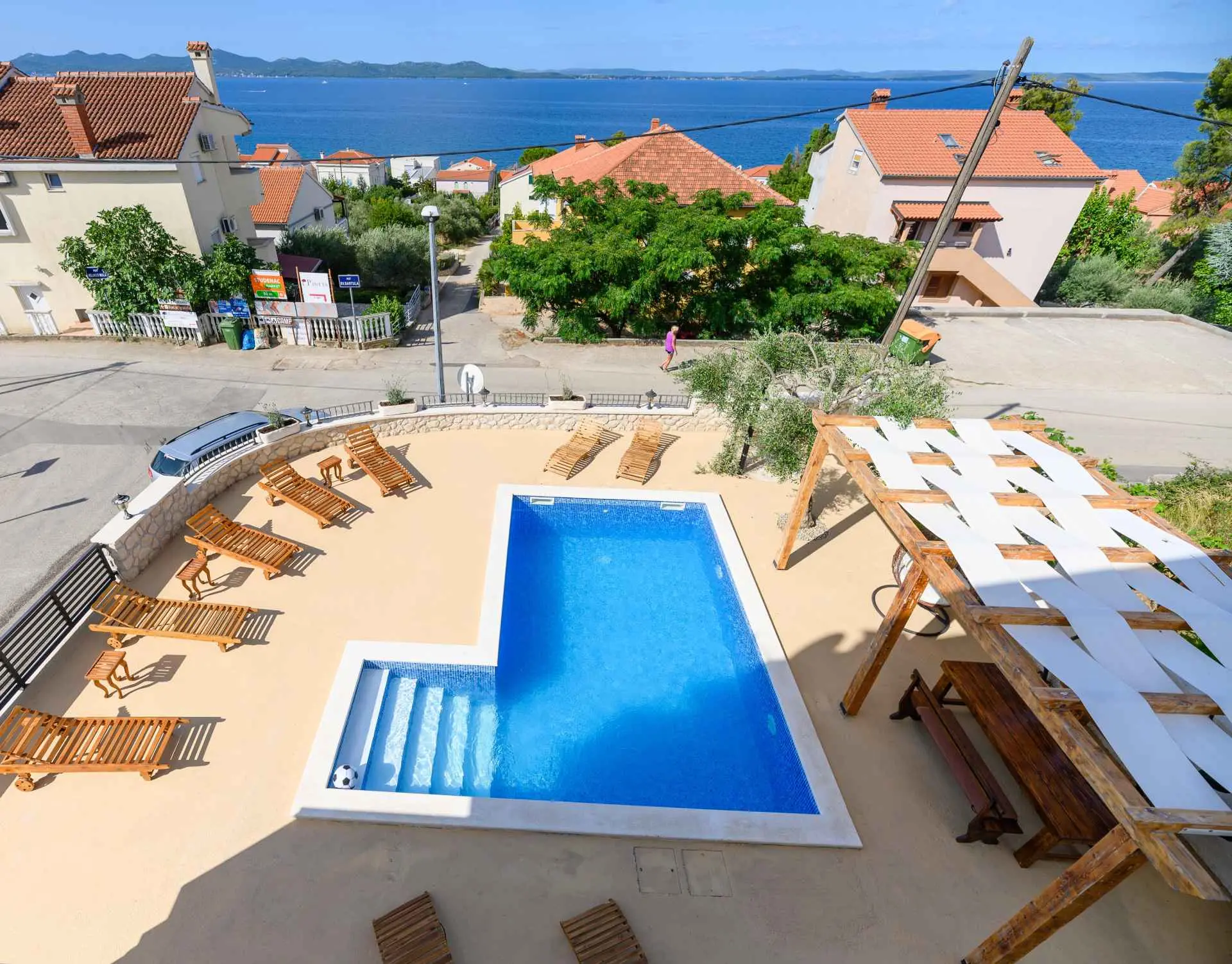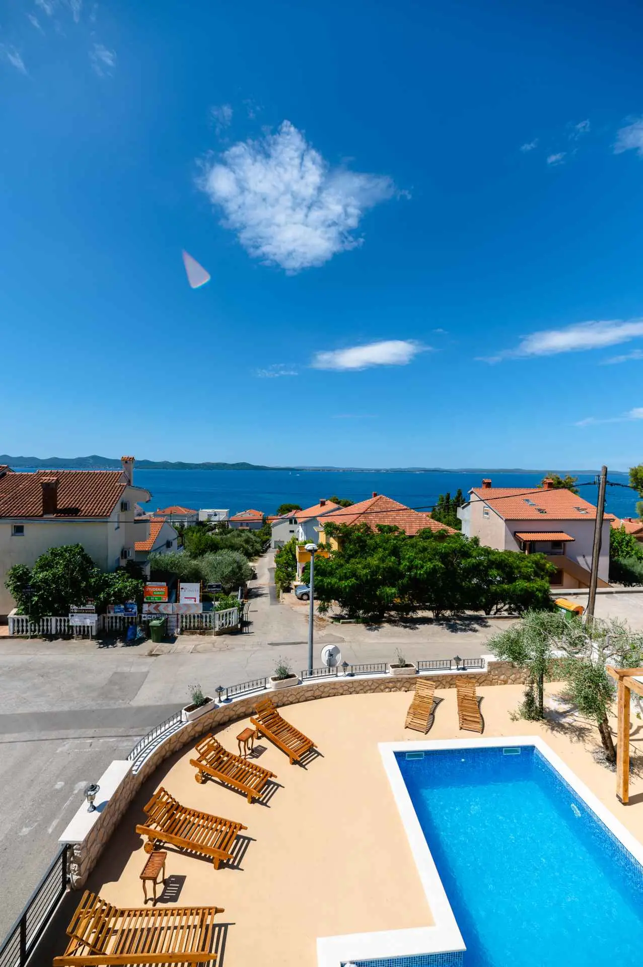 Welcome dear guests! For all those who love peace and quiet, we offer ideal private accommodation that will provide you with superior comfort, a pleasant vacation and the feeling of your own home. Apartments M with a beautiful view of the Zadar channel and islands are located in Kožino. Kožino is a place near Zadar, only 8 km away from the old town of Zadar (Church of St. Donatus, Greeting to the Sun, the main street of Zadar Kalelarga, Zadar waterfront, the most beautiful sunset, ...) Two apartments are located on the second floor of the building which have a beautiful sea view and a terrace with a swimming pool, and one apartment on the ground floor. The apartments consist of a kitchen and dining room, living room, bathroom, toilet and bedroom with double beds. The apartments also have parking spaces. In the yard there is a barbecue which is available to all guests and a children's playground. The apartments are newly renovated, fully modern and equipped and have air conditioning, wireless Internet access, ...