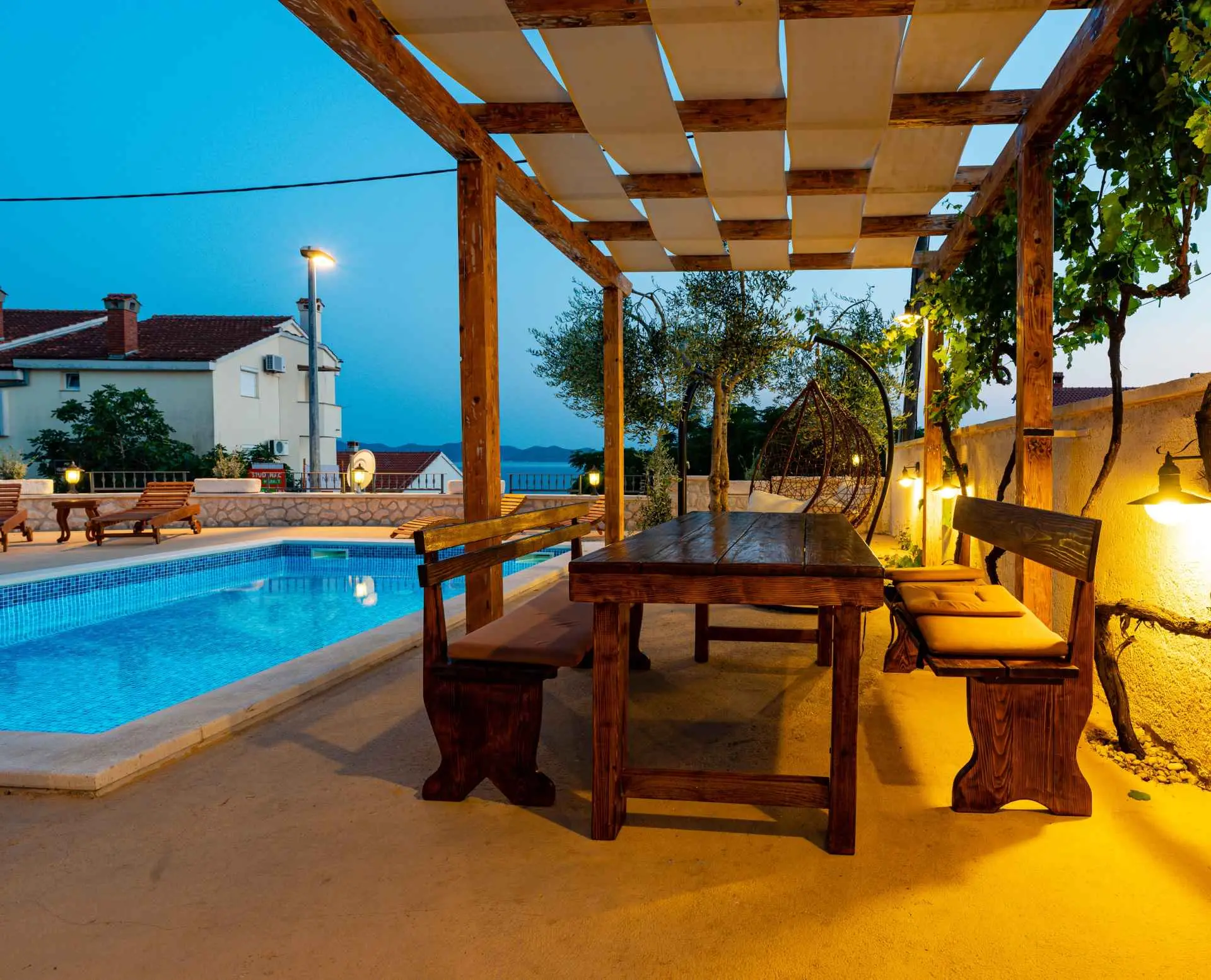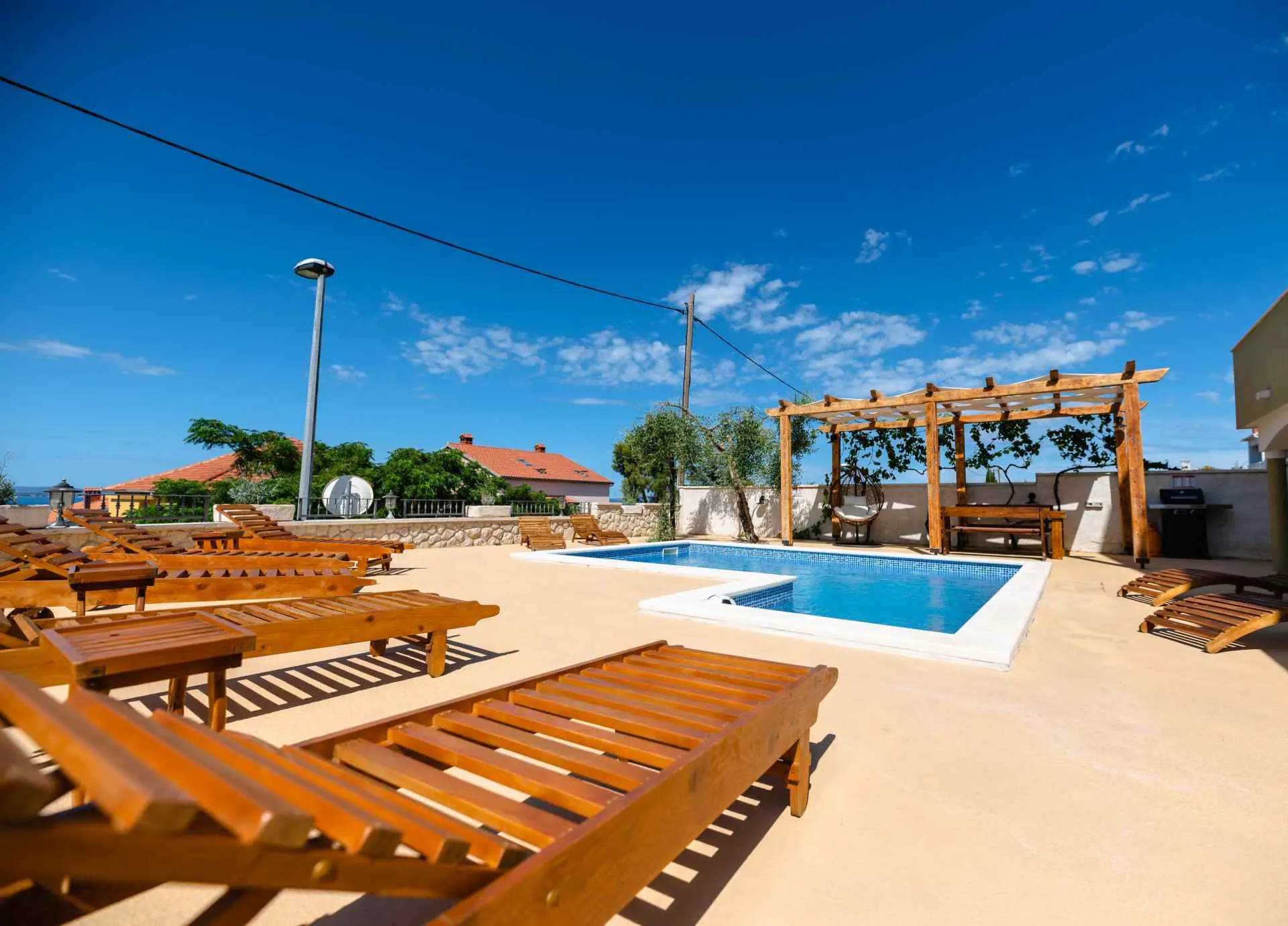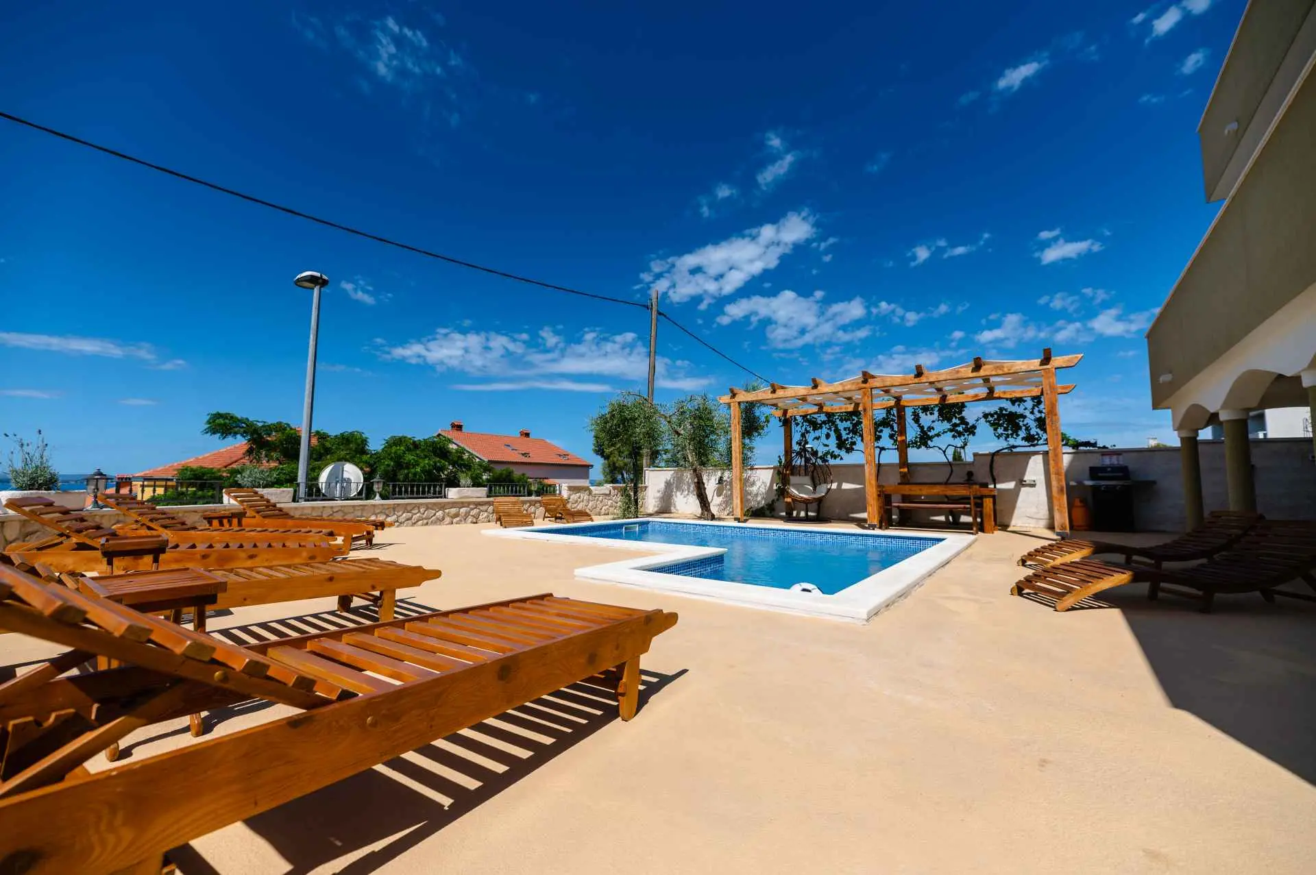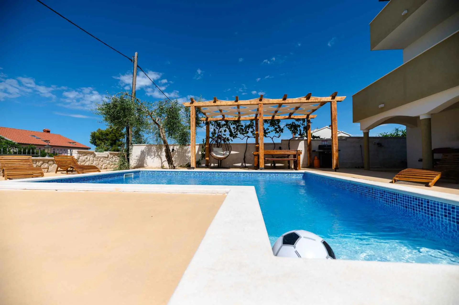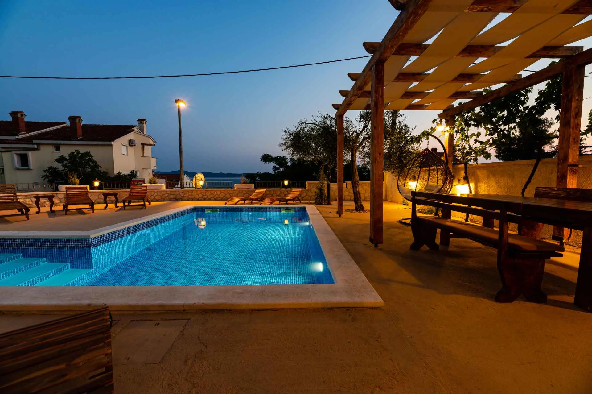 Welcome dear guests! For all those who love peace and quiet, we offer ideal private accommodation that will provide you with superior comfort, a pleasant vacation and the feeling of your own home. Apartments M with a beautiful view of the Zadar channel and islands are located in Kožino. Kožino is a place near Zadar, only 8 km away from the old town of Zadar (Church of St. Donatus, Greeting to the Sun, the main street of Zadar Kalelarga, Zadar waterfront, the most beautiful sunset, ...) Two apartments are located on the second floor of the building which have a beautiful sea view and a terrace with a swimming pool, and one apartment on the ground floor. The apartments consist of a kitchen and dining room, living room, bathroom, toilet and bedroom with double beds. The apartments also have parking spaces. In the yard there is a barbecue which is available to all guests and a children's playground. The apartments are newly renovated, fully modern and equipped and have air conditioning, wireless Internet access, ...