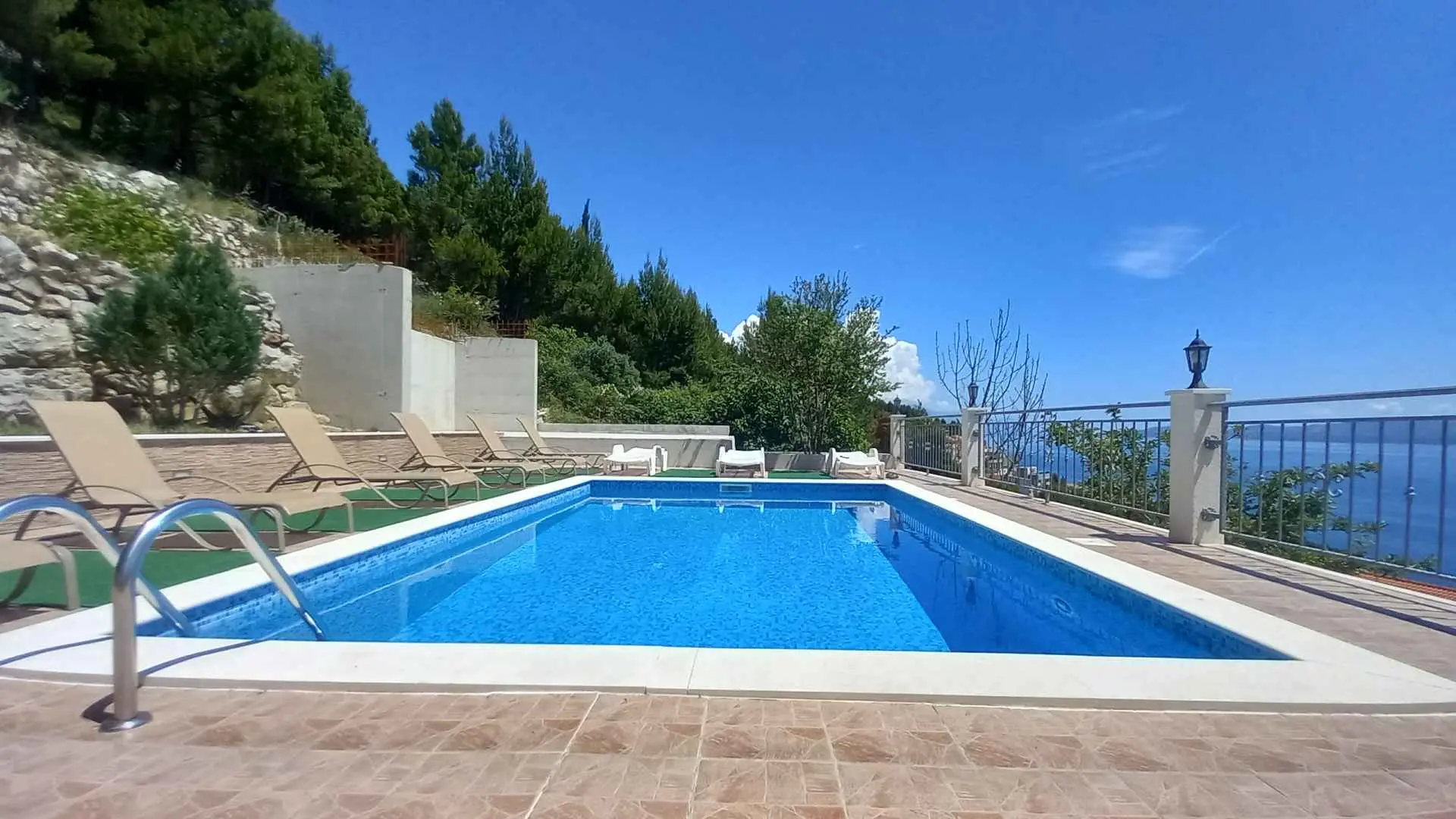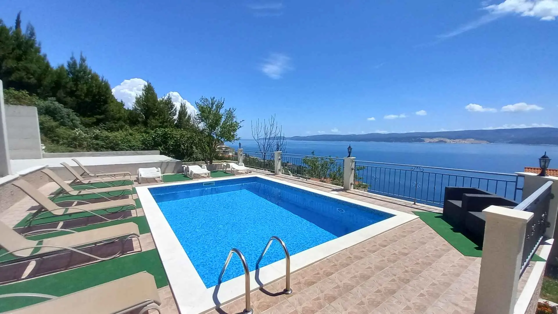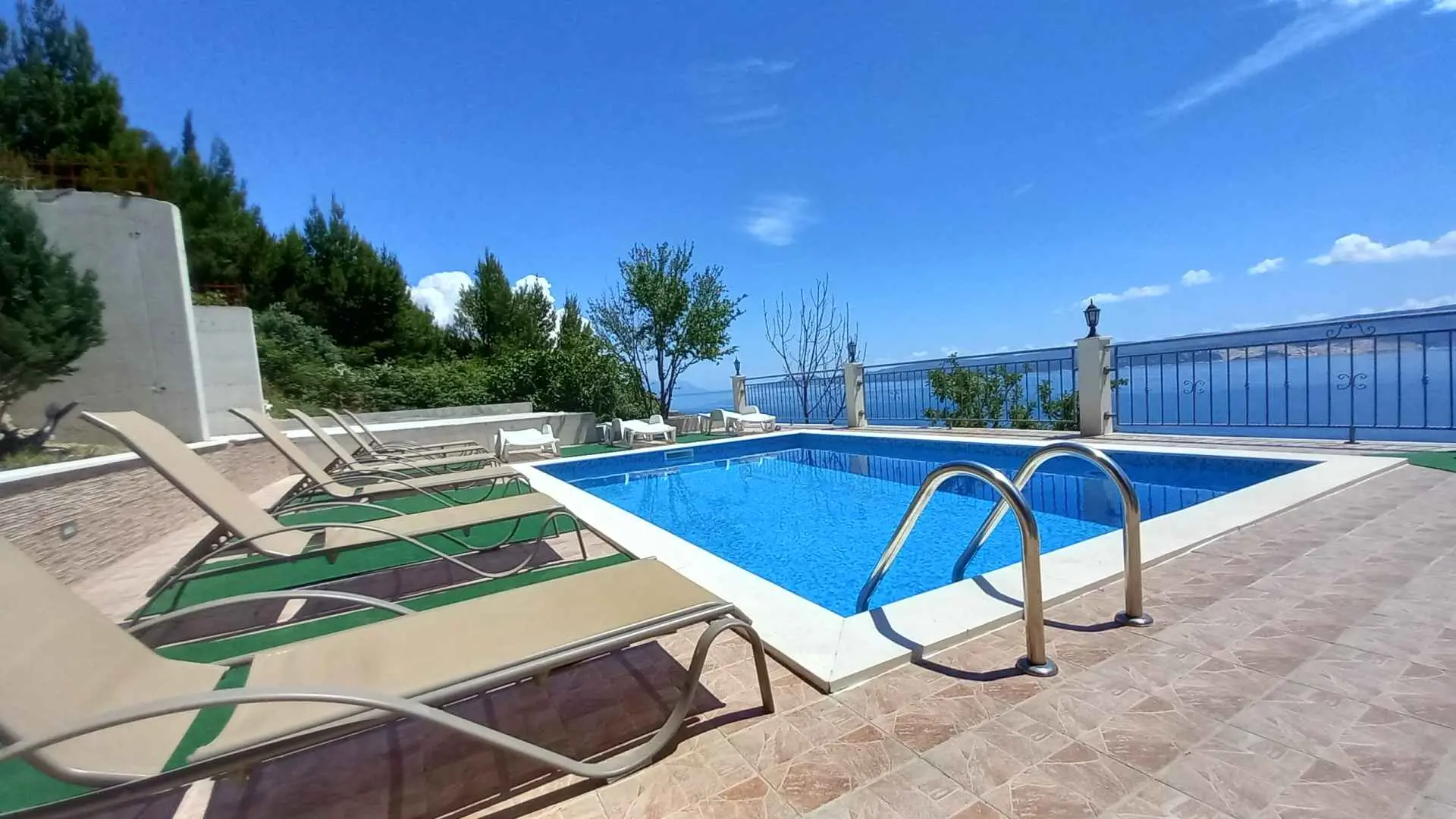 Modern apartments with a swimming pool in the small tourist town of Čelina, 5 kilometers from the capital Omiš. We offer two two-room luxury apartments. Apartment description: Apartment A 5 +1 is located on the first floor and consists of two bedrooms, fully equipped kitchen, living room, bathroom and toilet. It has a large terrace facing south with a stunning sea view and two smaller balconies facing east and west. A 4 +1 is on the second floor and consists of two bedrooms, fully equipped kitchen, living room, bathroom. It has a large terrace facing south with a beautiful view of the sea and a small balcony facing west. There is one double bed in both bedrooms. Guests have at their disposal free WiFi, free parking (garage), outdoor pool with a view of the sea and the island of Brač, free use of air conditioning (6 hours a day, in all apartments, each additional hour is paid 2 euros (good insulation in the house) .