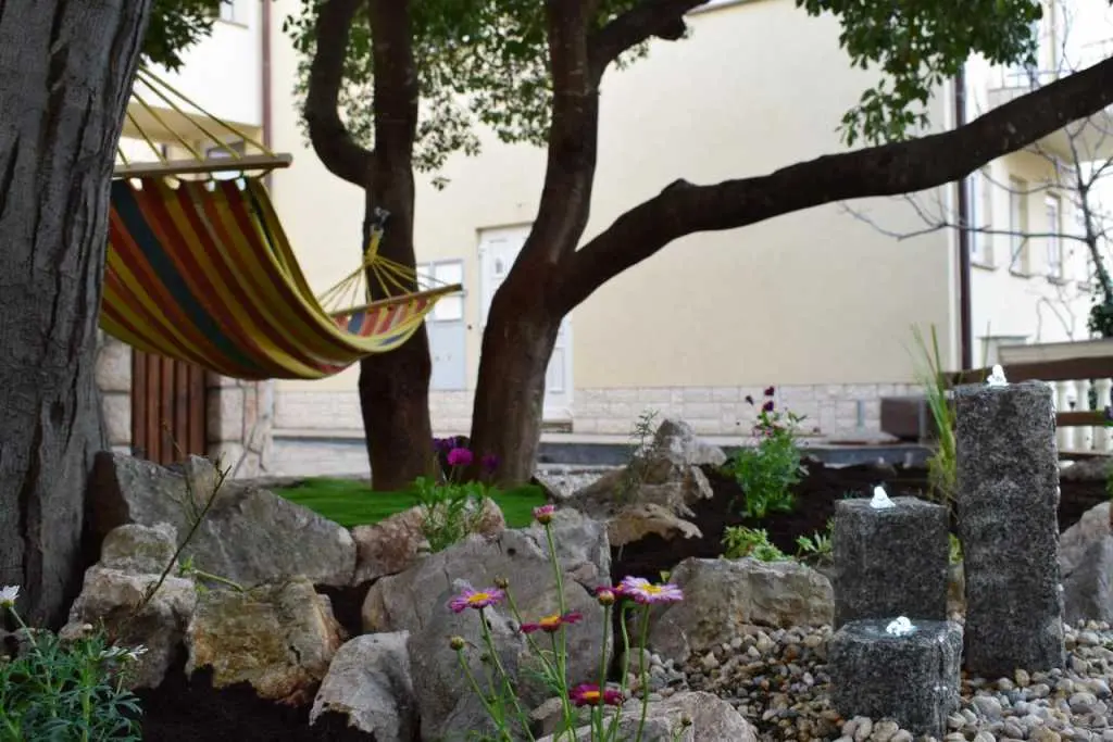 The apartments are located in the center of Novi V. opposite the entrance to the main bus station. In the range of 10 m to 200 m are: bakery, some of the best restaurants and coffee houses, two gas stations, several travel agencies and money exchange, ATM, shop, bank, tennis courts, bowling alley, the towns main port from which are offered various boat trips. In the immediate surroundings there are 3 different types of beaches, sandy, rocky and main town beach with swimming pool and extensive entertainment facilities to which you need 2 to 5 min walk on flat ground. The apartments are new and well furnished situated on the ground floor with direct access to the garden terrace with garden furniture and barbecue and a view of the sunset. We offer accommodation in two studio apartments for 2 + 1 and 3 + 1, and 2 comfortable luxury two-bedroom apartments. Close to all amenities, close to the beach, as well as the content of the object make Apartments Katarina & Doris ideal for a family or a romantic holiday. Welcome!