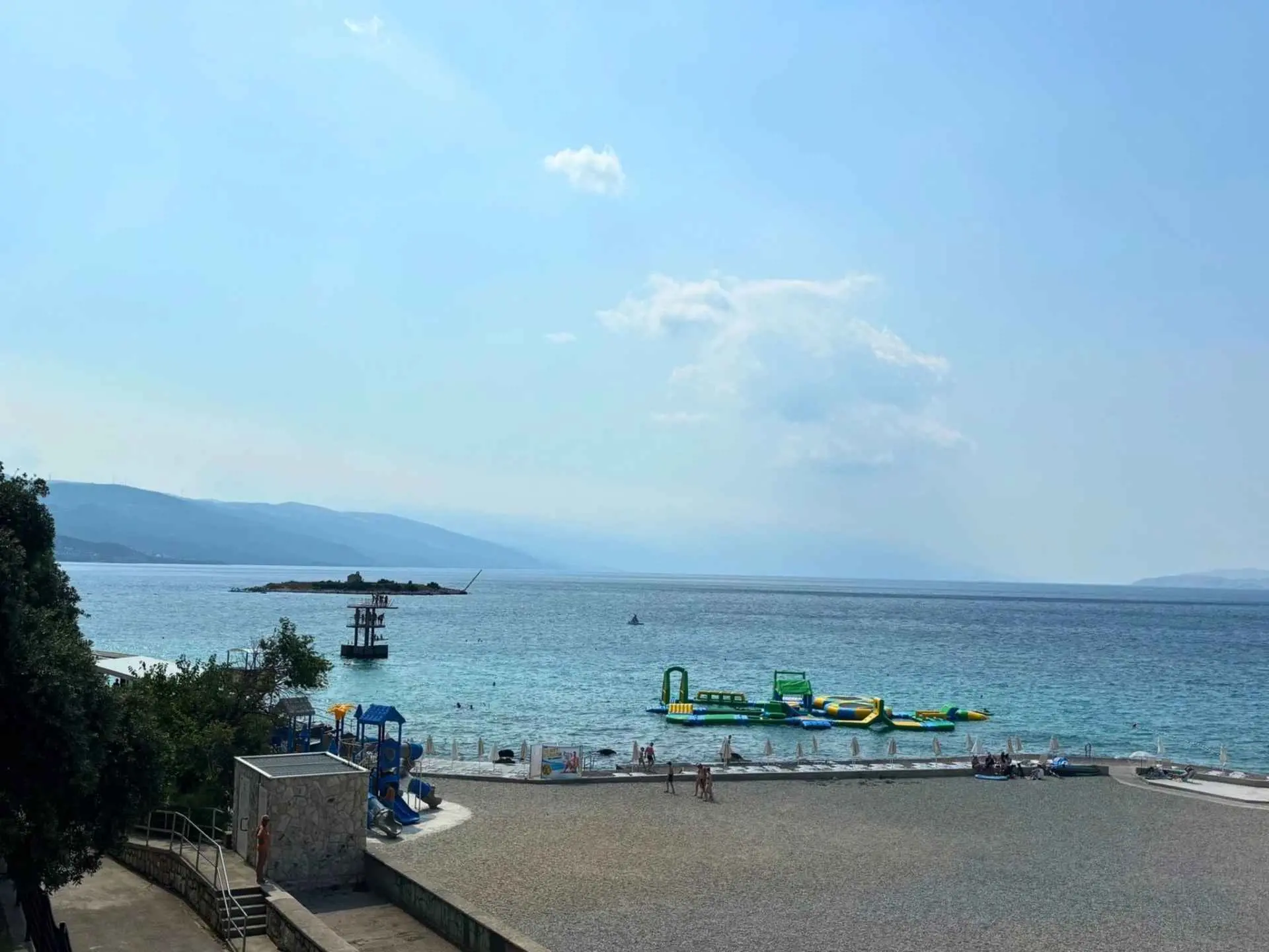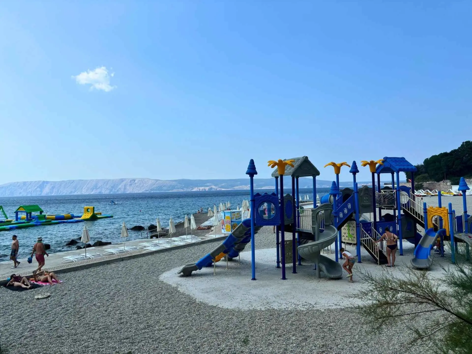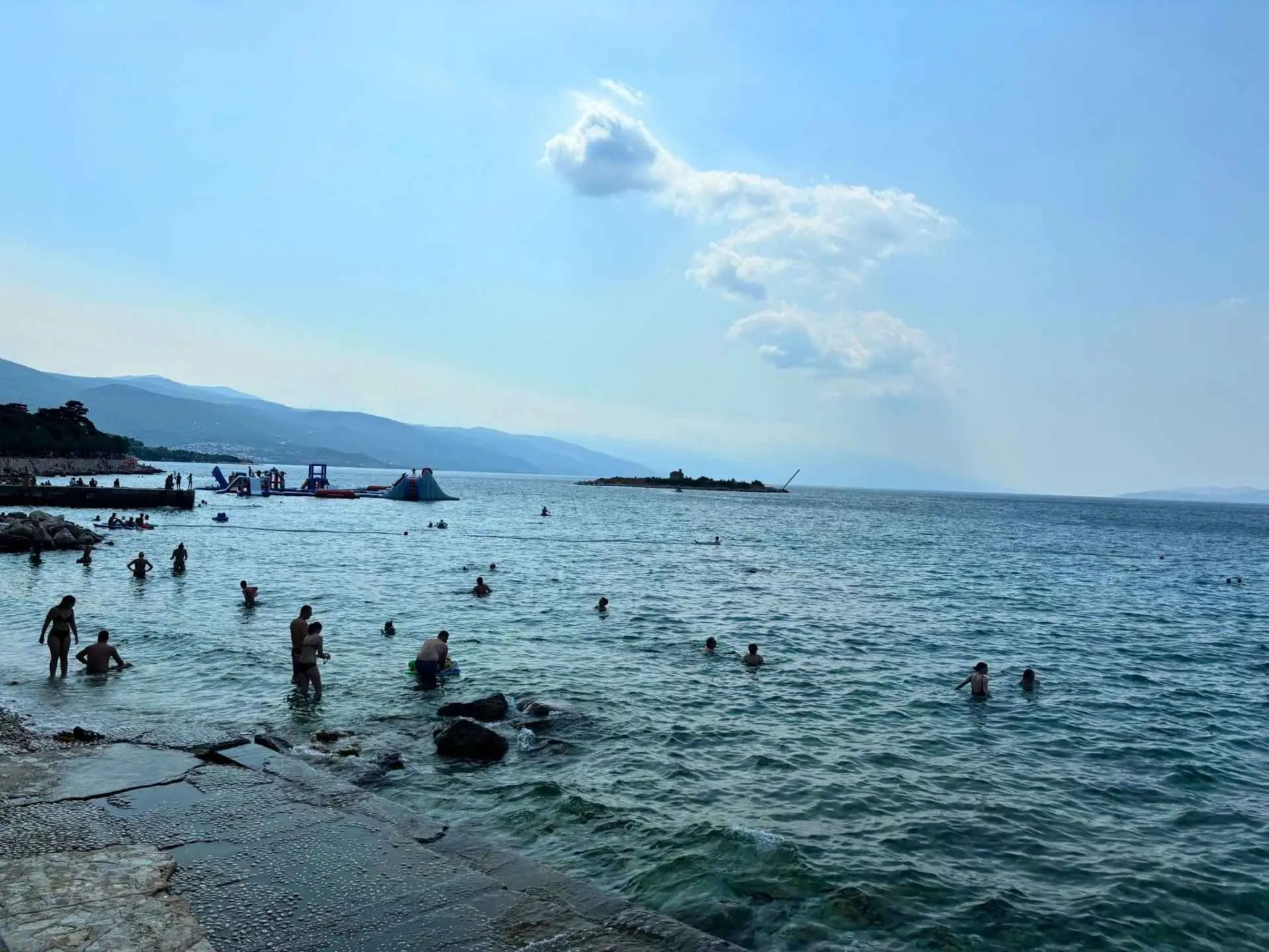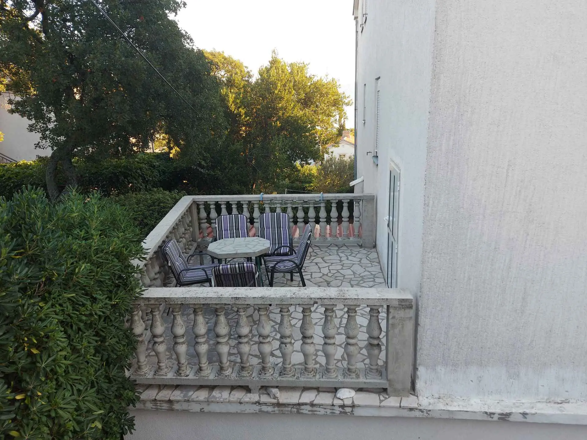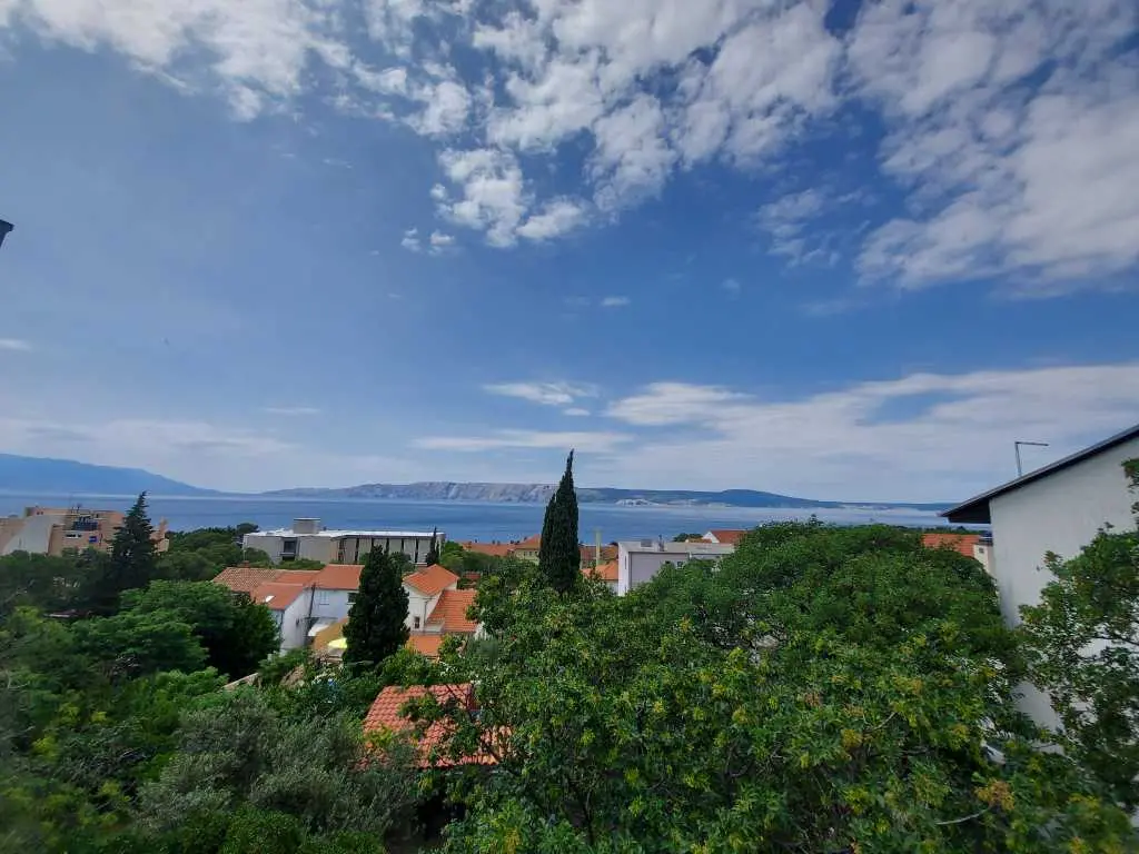 The apartment is located on the first floor of a family house in a quiet part of town, with terrace on the ground floor and a view of the sea and the island of Krk. It is just a few minutes' walk from the town beach. The town center and market are 200 meters away. Restaurants, shops, and various entertainment and sports facilities are nearby. Parking is provided, as well as SAT-TV and Wi-Fi. Guests of the apartment have access to a garden with a grill and dining area.