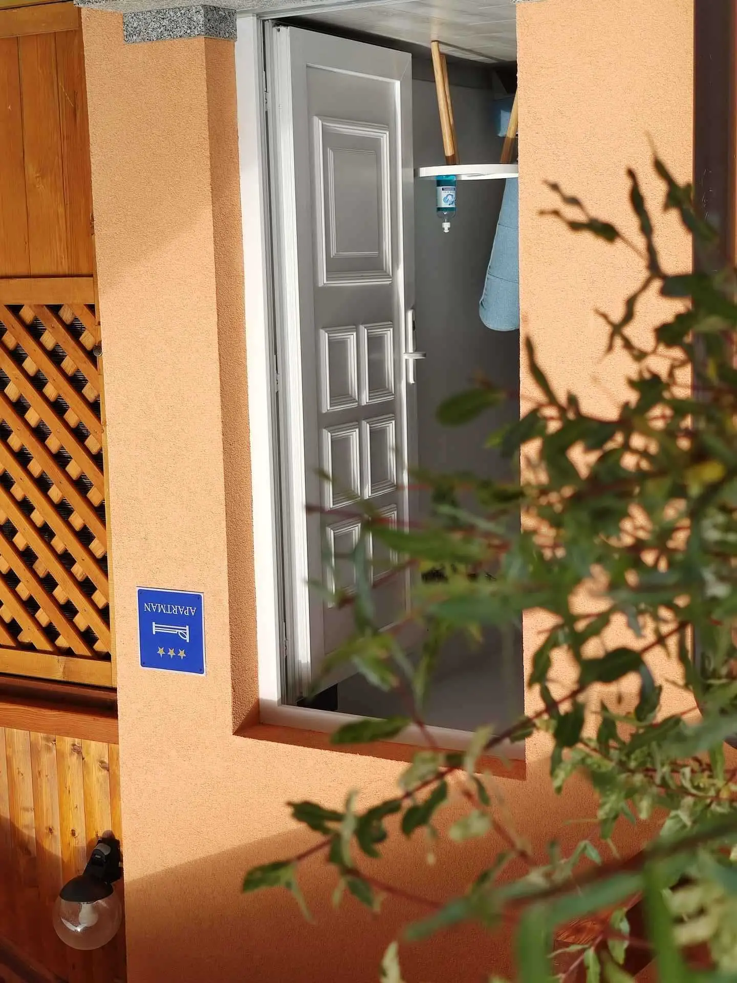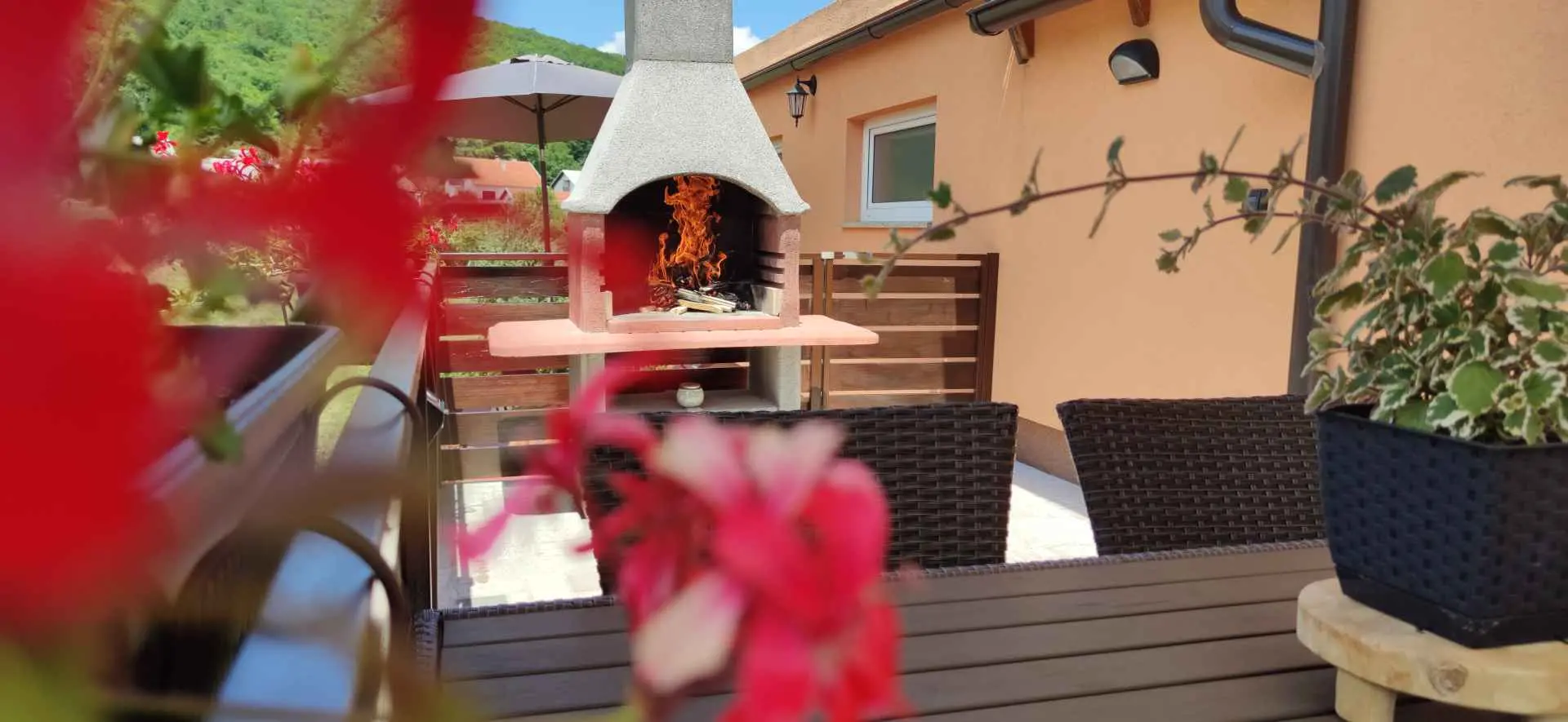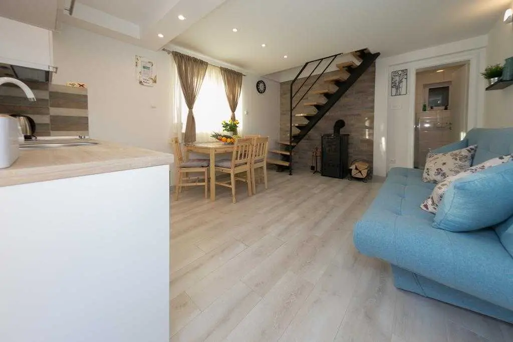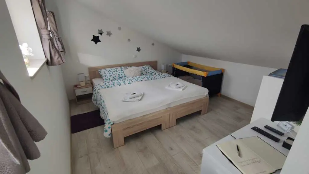 Apartment "Urban Nature" is located in a quiet, newly built street not far from the center of the town of Otočac. Situated close to the shopping center of Plodine, within walking distance of the museum, sport center, tourist office, bus station, health center and pharmacy, and local restaurants within a few minutes drive by car. Next to the apartment there is a open terrace with a grill and with view of the hill where Fortica's historic fortress is located. Guests can use the free Wi-Fi (WiFi), Smart TV, satellite TV, fridge, kettle, toaster, fully equipped kitchen and dining room, a bathroom with a shower, a washing machine that is only available to guests, and parking in the area of the property. The room is equipped with two removable beds and a living room with a sofa for two additional persons. It is possible to arrange the use of a baby cot. An air conditioning unit is installed in the apartment. The surrounding area is popular among hikers and cycling enthusiasts. Apartment Urban Nature is, also, a "bike friendly" accommodation. We have safe place (ground floor garage) where we can accommodate the bikes and equipment of our guests. Apart from the space of the apartment (living room, kitchen, bathroom and room) guests can also use laundry room where is a washing machine, iron, ironing board and stand for laundry drying.