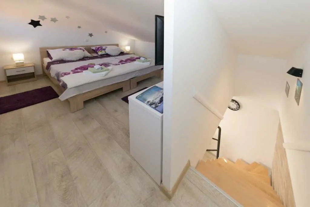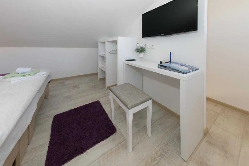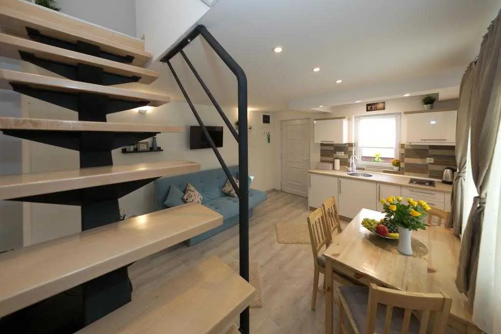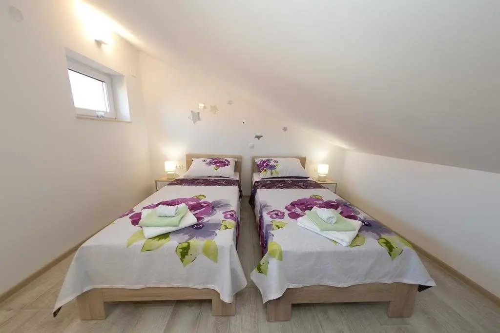 Apartment "Urban Nature" is located in a quiet, newly built street not far from the center of the town of Otočac. Situated close to the shopping center of Plodine, within walking distance of the museum, sport center, tourist office, bus station, health center and pharmacy, and local restaurants within a few minutes drive by car. Next to the apartment there is a open terrace with a grill and with view of the hill where Fortica's historic fortress is located. Guests can use the free Wi-Fi (WiFi), Smart TV, satellite TV, fridge, kettle, toaster, fully equipped kitchen and dining room, a bathroom with a shower, a washing machine that is only available to guests, and parking in the area of the property. The room is equipped with two removable beds and a living room with a sofa for two additional persons. It is possible to arrange the use of a baby cot. An air conditioning unit is installed in the apartment. The surrounding area is popular among hikers and cycling enthusiasts. Apartment Urban Nature is, also, a "bike friendly" accommodation. We have safe place (ground floor garage) where we can accommodate the bikes and equipment of our guests. Apart from the space of the apartment (living room, kitchen, bathroom and room) guests can also use laundry room where is a washing machine, iron, ironing board and stand for laundry drying.