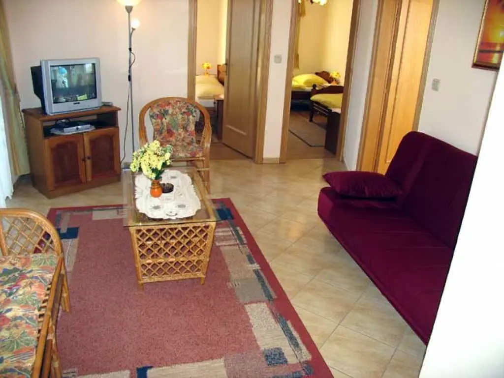 Family Kontin would like to present You an offer of luxurious apartments within villas Kruna and Palma, in place called Kraj, on island of Pašman, Croatia. Apartment villas, attractively located on sand beaches, are not just luxuriously furnished, but they offer a beutiful view on Pašman channel, a view that will turn your vacation into a unique experience. Villa Kruna, ranked with 4 stars, is a luxurious accommodation that can comfortably accommodate up to 30 persons. Villa is first in the line, situated on a beautiful location, on the very sand beach with a view on the Pašman channel. Rich mediterranean garden that surrounds the villa will make Your visit unforgettable. There is an illuminated swimming pool in the garden. Villa Palma, ranked with 4 stars, is a luxurious accommodation that can comfortably accommodate up to 23 persons. Villa is situated on a beautiful location, on the very sand beach, with a view on the Pašman channel. The very nearness of a sand beach makes this villa special, because guests can have practically immediate contact with sea. In addition to luxury accommodation and fun time spent in villas, Kontin family can offer You a possibility of a half-board type nourishment in the pleasant guests-only restaurant of the villa Kruna.
