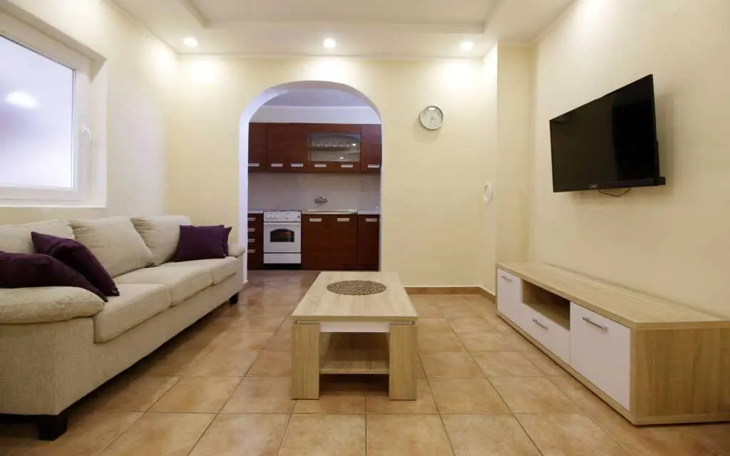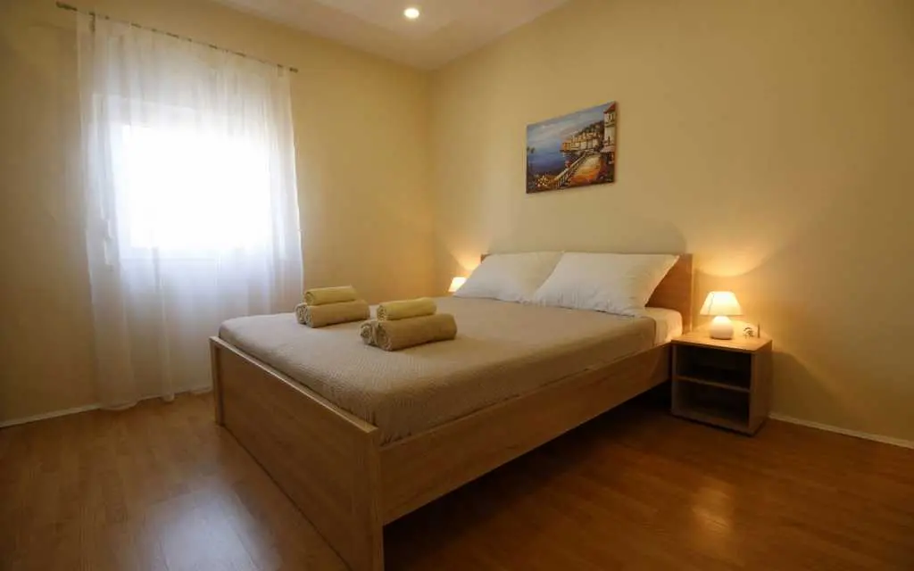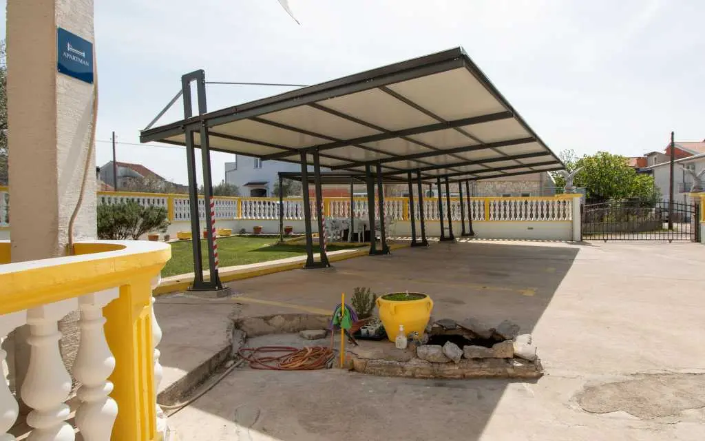 Apartments Pirovac are located in a quiet part of Pirovac, far enough away from the noise from the center and main roads, and yet close enough to the center and the main beach which is ideal for families with small children. We offer large beautiful apartments for 4 or 6 people. In each apartment there is a large LED TV with all domestic Croatian TV channels and foreign satellite channels. The whole house is covered by high speed WIFI internet and each apartment is Air Conditioned. In front of the house there is a large yard and a large parking lot with a canopy to keep your car safe and in the shade all day.
