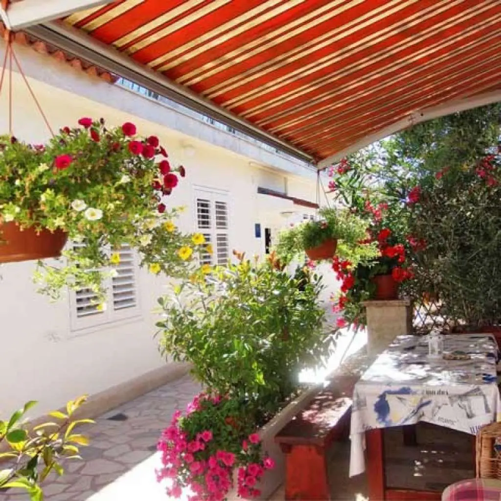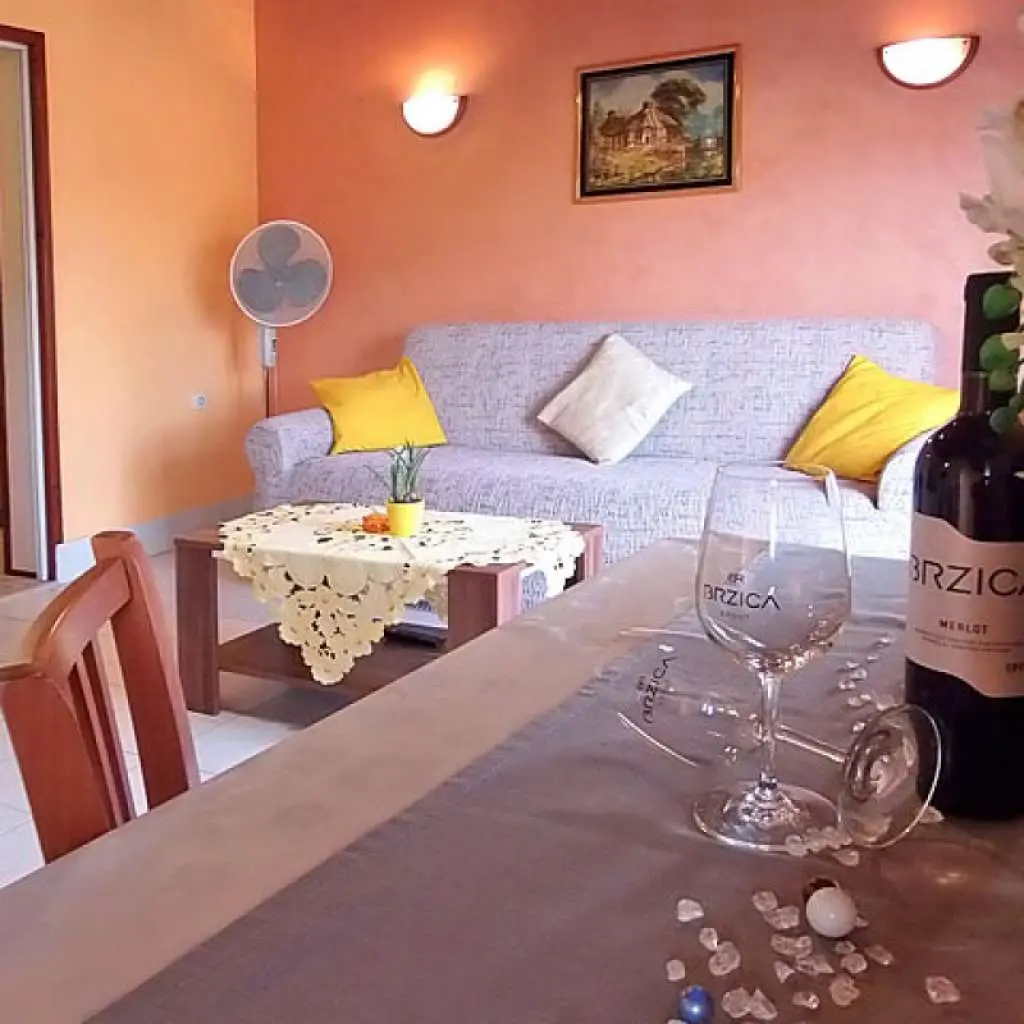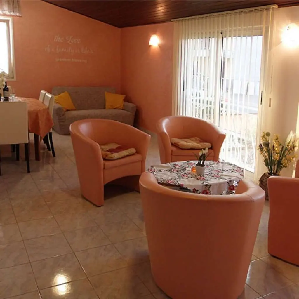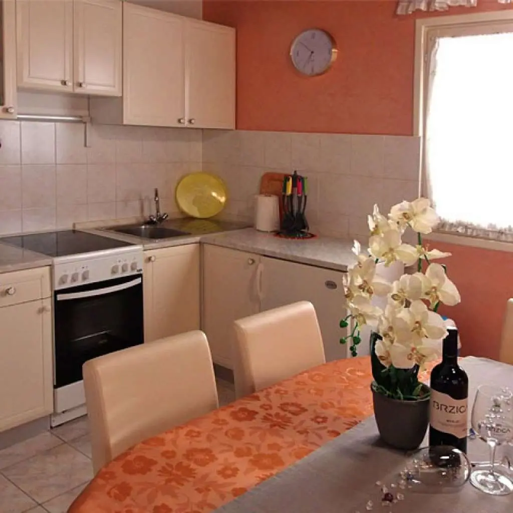 House with 4 apartments near the sea, about 450 m from the sea and from the town center (5-8 minutes walking, also without car use), with court and terraces in garden with grill, private parking in front of the house, on first floor, air condition, free WiFi (WLAN) internet, free safe in apartment, SAT TV: - One apartment type B5 for 4-6 people, with two bedrooms and living room - One apartment type B4 for 3-5 people, with 2 bedrooms - One apartment type A3 for 2-4 people, with 1 bedroom and living room - One apartment type A3 for 2-3 people, with 1 bedroom and living room