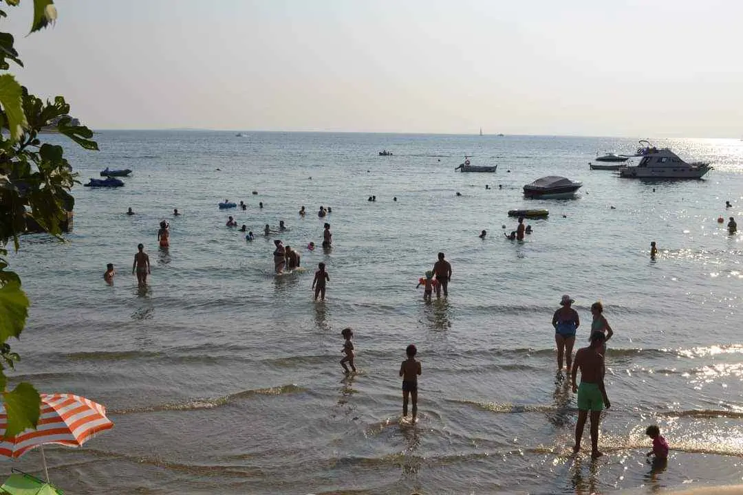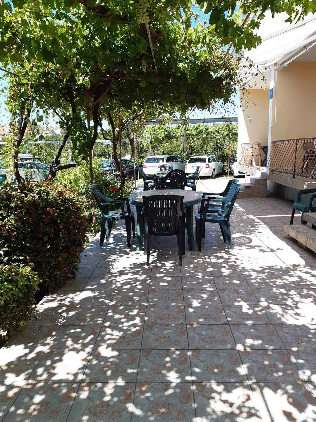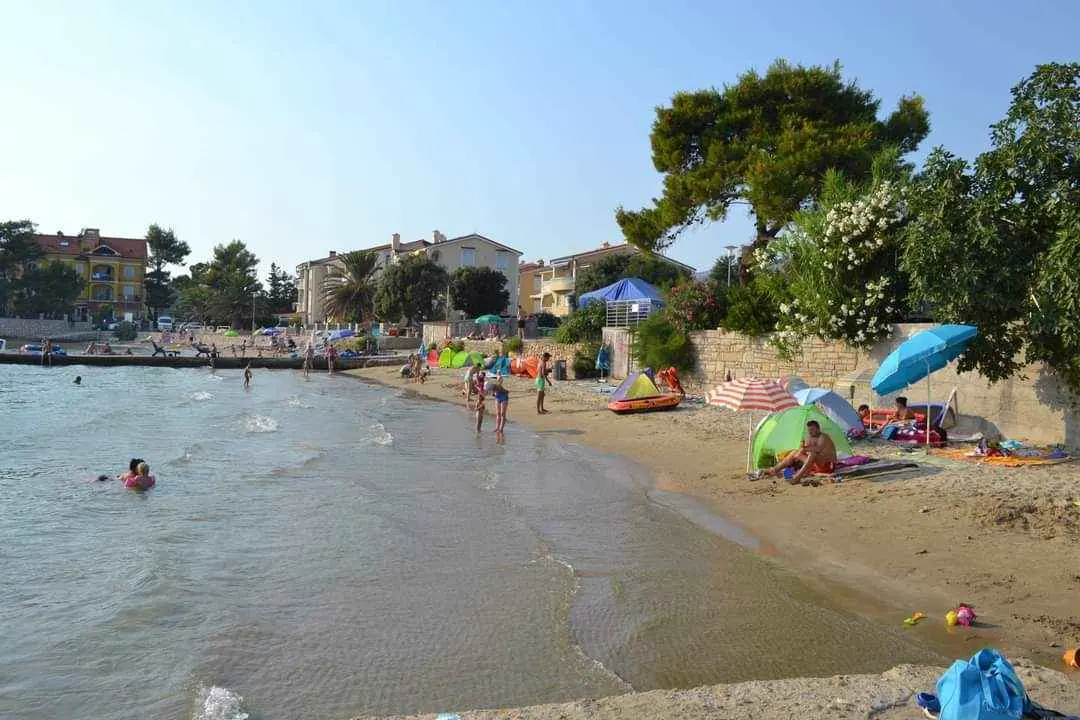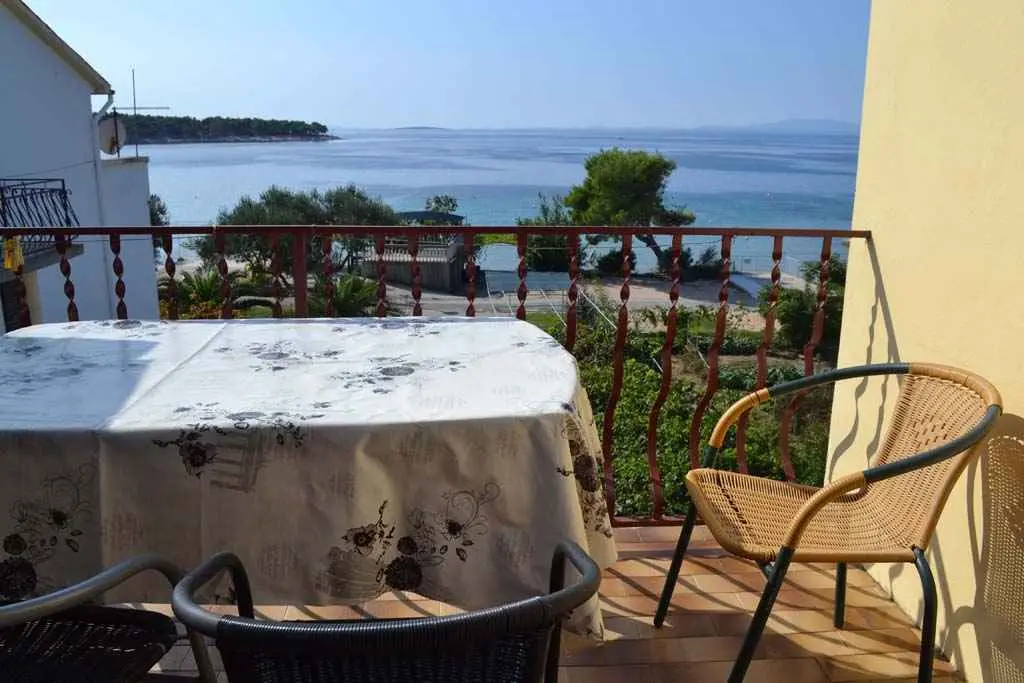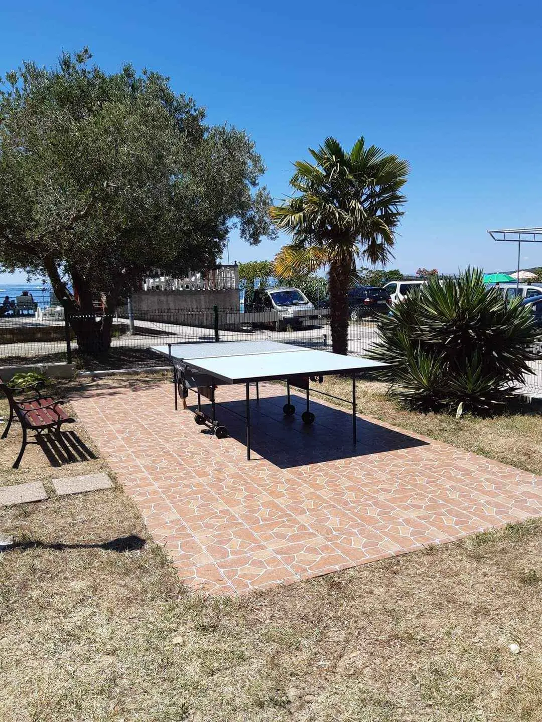 We are located by the bay Padova III on the island of Rab. Our guests can enjoy their stay in our apartments about 10 meters from the sea. Next to the beautiful sandy beach, there is our private terrace with deckchairs and from our balconies, you can have a fantastic view of the sea. Close by is fast food restaurant. In the garden under olive trees, there is a big barbecue with a table for having meals as well as swings and switchbacks for children and a table for table tennis.