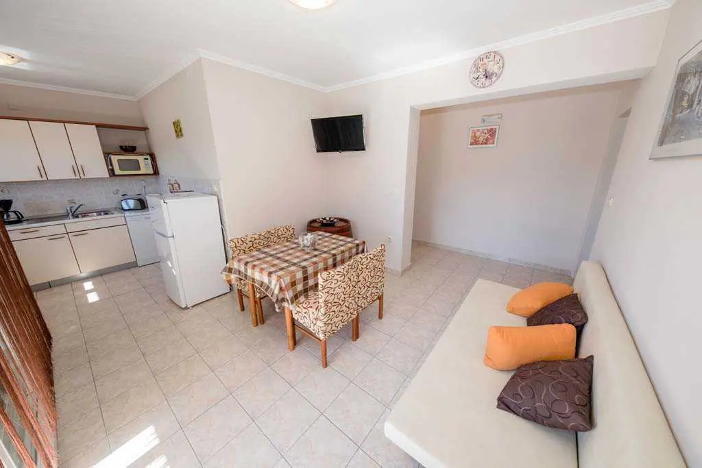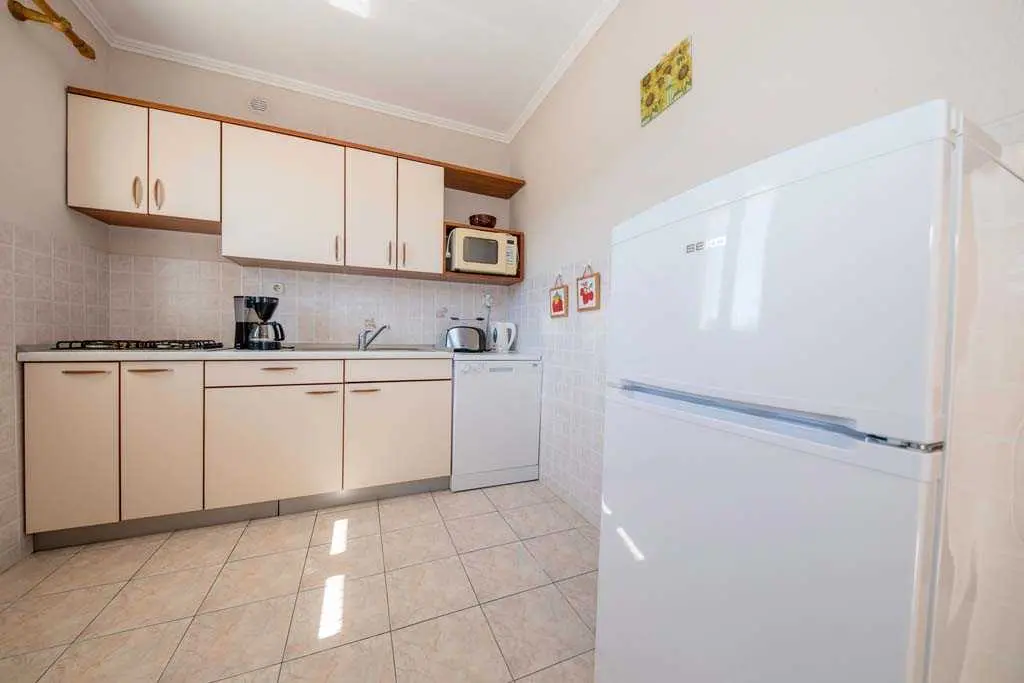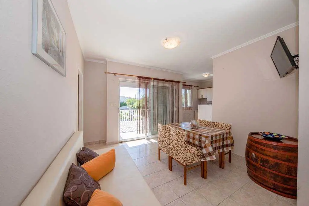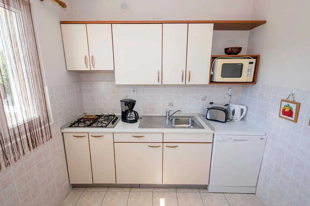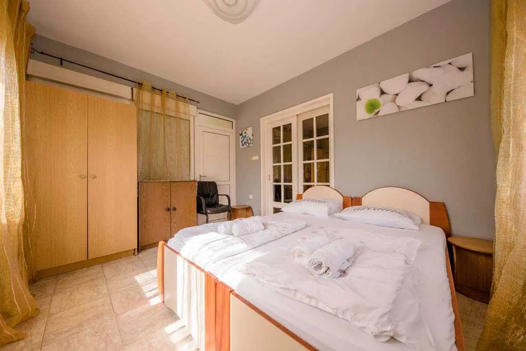 This family home is located in Lopar near (300 m) along the beach. Each apartment has a balcony overlooking the sea. The house has five apartments with balconies, beautiful garden and overlooking the beach which is only 300 m from the apartment. Distance from center of Lopar and sports facilities is 200 m, while distance from store is 200 m and restaurant is 50 m. Lopar is located on the northern coast of the island Rab 14 km from the town Rab. Here the people live from tourism, agriculture and raising sheep, and with a ferry line are associated with Valbiska place on the island Krk. The main economic activities of the local population include tourism, agriculture, stockbreeding and fishery. Lopar is surrounded by numerous islands and islets, notably Goli otok, Grgur, Lukovac and Školjic. A hundred years of tourist tradition in Lopar and significant investments into tourism, the island’s pristine nature and valuable cultural and historical heritage, as well as the many prizes the island of Lopar has been winning for years, are a guarantee of a supreme quality vacation. In 2003, Lopar was awarded the “Blue Sail” award, awarded to the best small town in the Kvarner region.