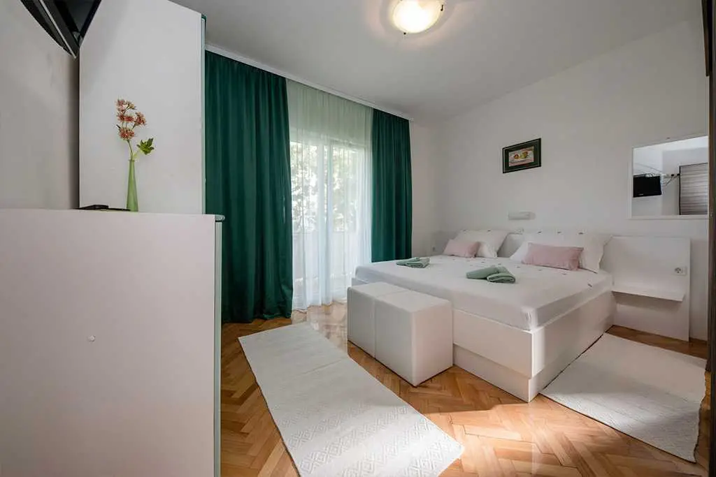Welcome to Rab, island of sun, sea and silence, olives, figs and grapes. Welcome to the island of lavender, rosemary, sage and immortelle. Here we find ourselves, in a small village Palit and we are in tourism for about 40 years. Our house is located about 1000 m from the cultural and historic medieval town Rab. In our neighborhood, only 700 m away, there is a famous beach Škver where we have a berth for boats. In front of Škver there is a Frkanj peninsula (island of love) with numerous small beaches where you, dear visitors, can find for yourself secluded spot in the shade of pine trees. We offer breakfast, which is enriched with fruits from our garden (seasonal fruits and vegetables). We love socializing with coffee and cakes and a tasting of our wines, brandies and Orahovica. You can relax in our surroundings because there is plenty of greenery, and is customized for socializing with grill. Next to the house is a large parking lot for your tin pets. If you want good fish and meat delicacies, there are good restaurants with rich food and wine offer.