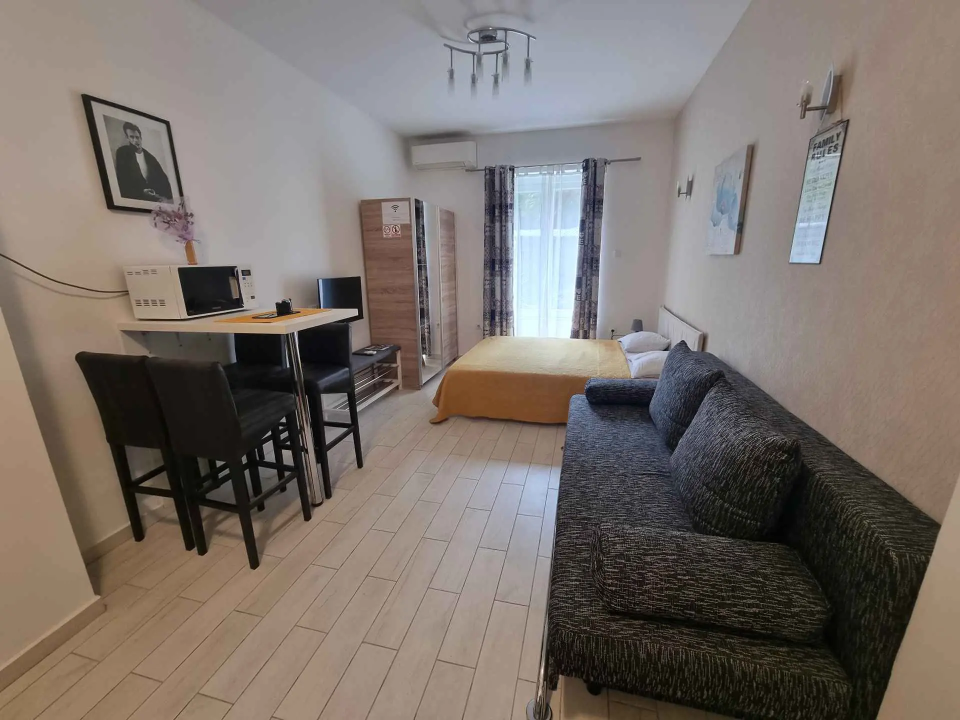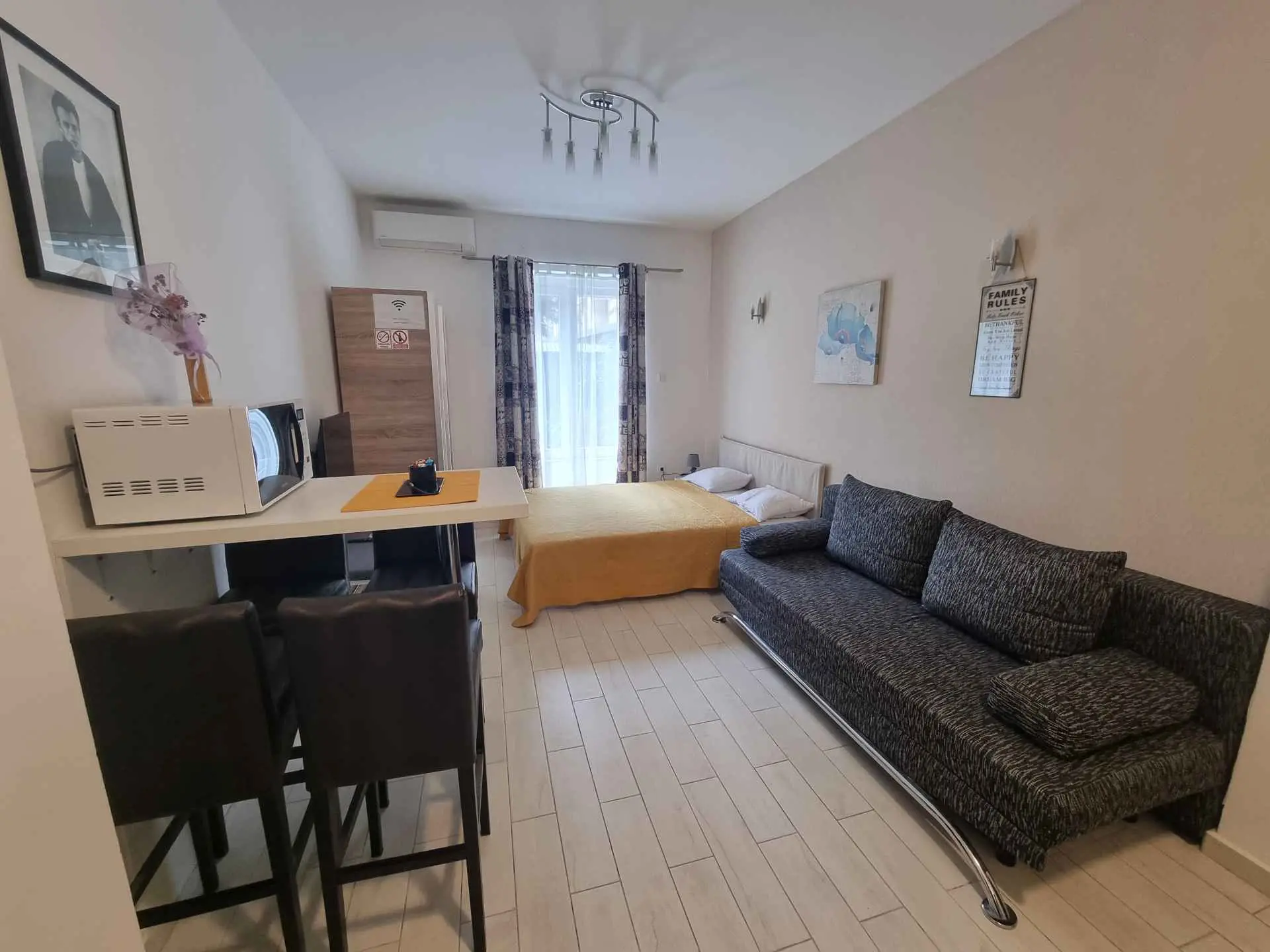 Studio Fiume - Potok is a lovely, little studio apartment in Rijeka, just a 5-minute walk from Rijeka's bustling promenade Korzo and the main bus station. It takes two minutes on foot to get to the railway station. Everything is at hand, only 50 meters from the apartment: supermarket, pharmacy, fast food restaurant, hospital. The apartment is equipped with a cooker, refrigerator, microwave, electronic water boiler, air-conditioner, smart television with Netflix, the Internet, washing machine.