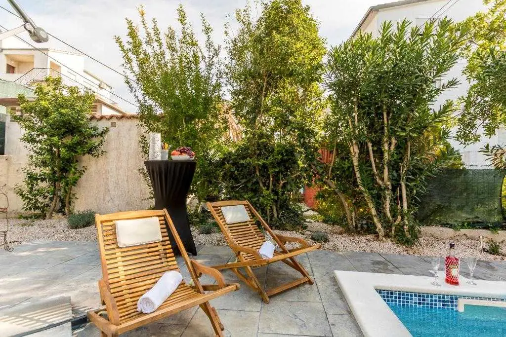 Four-star apartment in Dalmatian style ** * with swimming pool. offers a relaxing and peaceful place to enjoy in an apartment with a swimming pool Split It is located near the old quarter of Split, about 15-20 minutes by foot and 5 minutes by car from the city center (railway/bus station, city port, Diocletian's Palace and Marmontova Street), the heart of all events in the city and , next to the Marjan park-forest. Park Marjan is a green oasis and recreation center of the city. A perfect place for cycling, running and other outdoor activities. It is the setting for numerous beaches and jogging paths, as well as tennis courts, all surrounded by picturesque forest... 17 minutes walk to the old town of Varoš and after that the city center with the famous Diocletian's Palace. You can visit the islands of Solta, Brač, Hvar, Vis or Korčula by ferry. Split is one of the most famous tourist destinations on the Adriatic coast and the second largest city in Croatia. Split is a city with 1700 years of history, and offers you a wide range of relaxation and enjoyment. One of these places is the very popular sandy beach of Bačvice with numerous restaurants, cafes and night clubs.