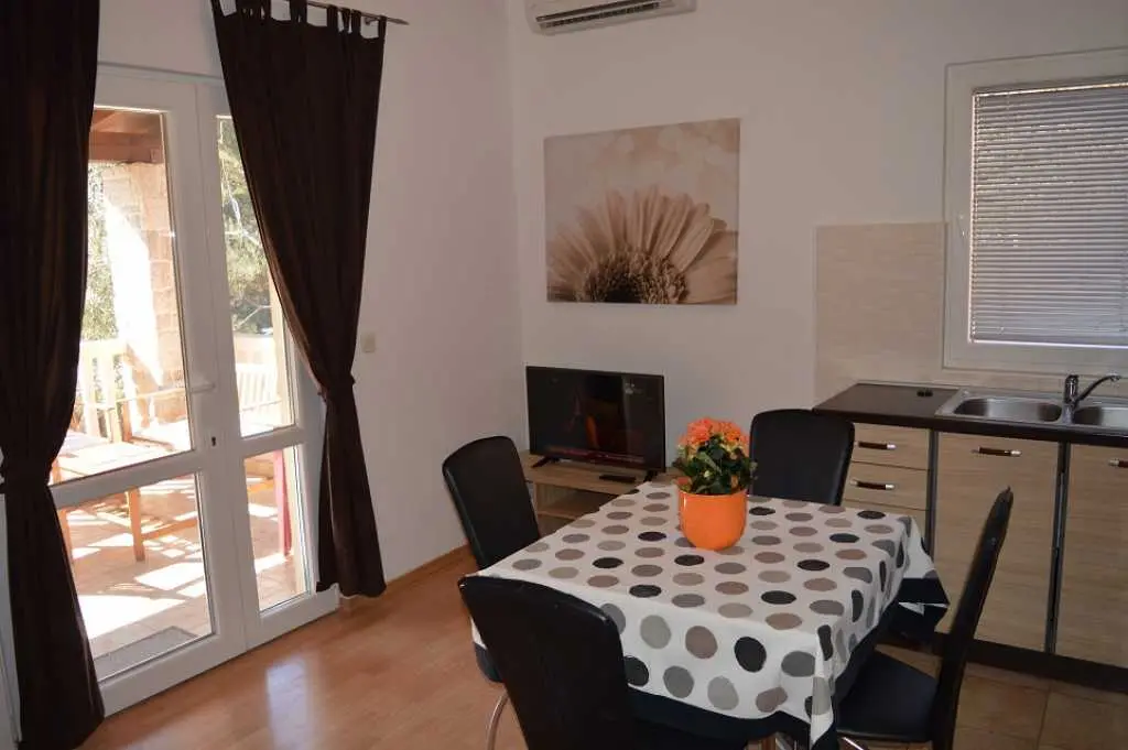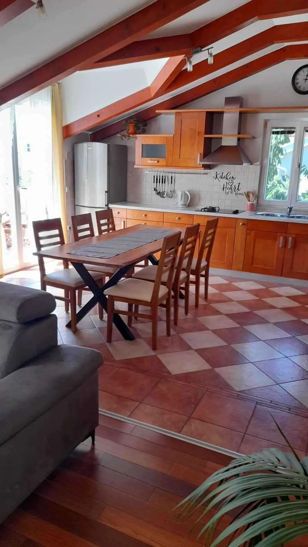 Nice house with 3 apartments. In the district of Srima 3 km from the center of Vodice, 10 km from the center of Sibenik. In a quiet, sunny position, 80 m from the sea, 80 meters from the beach. For shared use: barbecue, bicycles, internet access wi-fi. Parking by the house. Shop 500 m, restaurant 80 m, sandy beach 80 m suitable for children. Nearby attractions: NP Kornati, Krka.