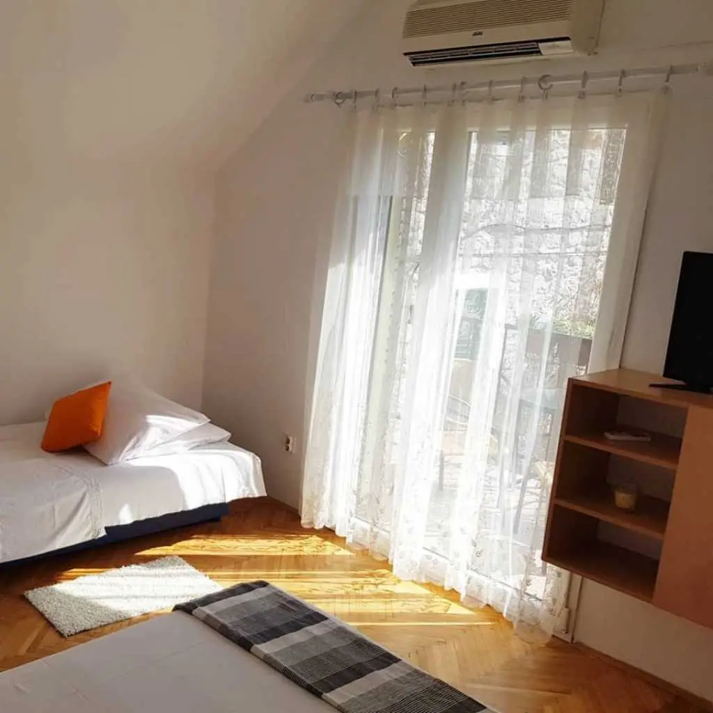 APARTMENTS PERICA 13 TRIBUNJ with two apartments fully air-conditioned. WIFI, TV, parking, and taxes included in the price 1 APARTMENT - ANTE on the ground floor of the house 45 m2 + 16 m2 balcony capacity 4 persons 80 €/night Includes bedroom - double bed, living room with two beds, bathroom with shower, kitchen with dining area partly covered balcony 2 APARTMENT - ŠIME In the attic 90 m2 + 10 m2 balcony1 + 20 m2 balcony2. Capacity 5 persons 100 €/night contains a bedroom with 1 bunk bed + bed, bedroom with double bed, bathroom with shower, kitchen and dining room, each room has a balcony