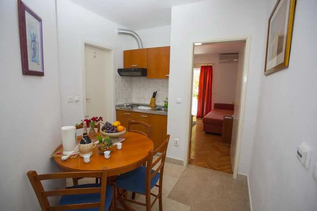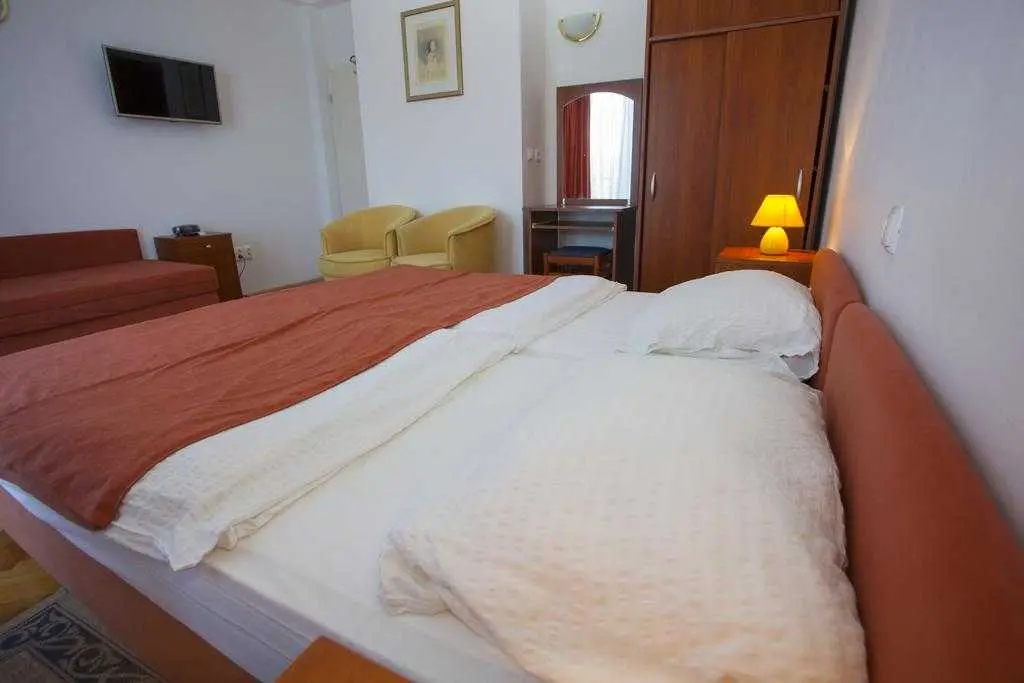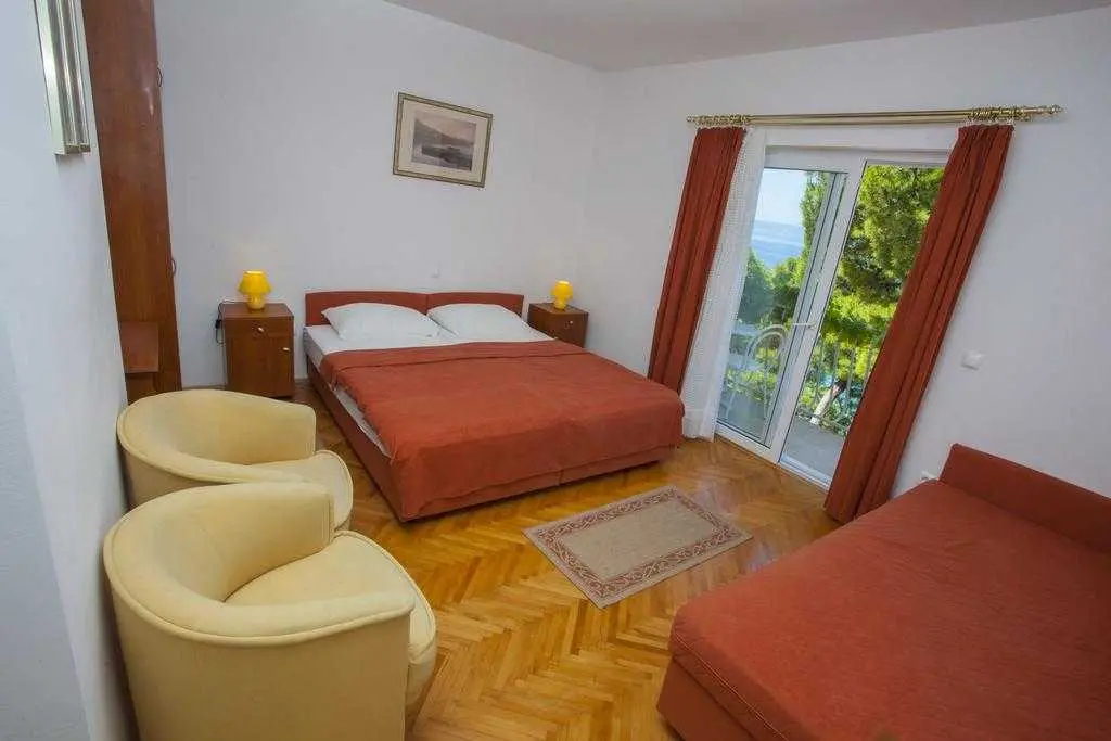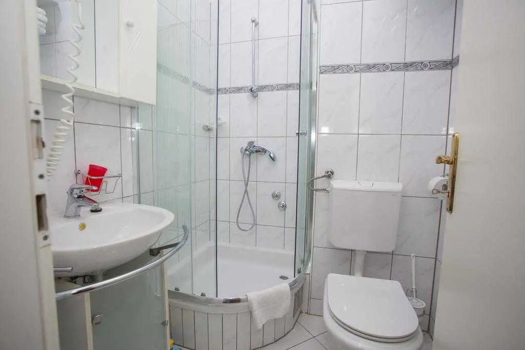 Our apartments come in two types: A for 3+2 people (two bedrooms), and B for 2+1 people (single bedroom). Both apartment types are located on every floor. All our apartments have balconies overlooking the sea. All our apartments are equipped with airconditioning, wifi and satellite TV.