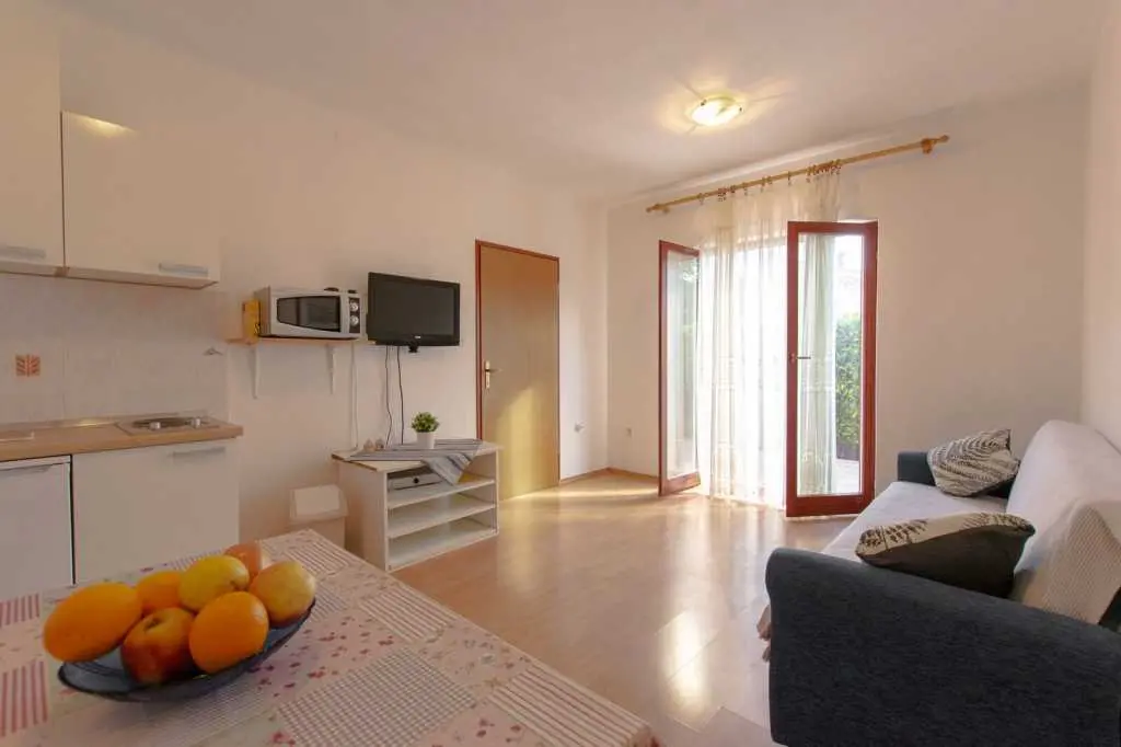 Apartment PETRA 2+2 is perfectly located in Fažana near Nature park Brijuni, for families and young people who want to be comfortable and is surrounded with the most wonderful beaches,forests,walking trails,sports content,playgrounds,beach bars and great restourants. Also there are supermarkets, shoping centar, groocery market and everything you need. You can walk to the town,it is very near. Apartment has lovely interior that is equipped with all necessary has 1 bedroom,1 bathrooms, kitchen, living room, dining room and a wonderful terrace that has a great view on garden. In front we also have big yard and playground. Guests have access to jogging tracks, beaches, walking trails, stores, bakerys, pharmacy, coffee shops, beach bars, snack bars, rent a bike store, restaurants, stadium, beauty centar, gyms, bus station, night clubs... Always available. In the apartment we have a board on which is written where to go, what to see and where to eat. Also I always arange one day trips and recommend what is best in Fažana and Istria. If you need a drive from the airport please let me know beacuse we have our taxy driver that is always available and he gives the best price to our dear guests. There are a bus line- bus station but of course you can always call a taxy to pick you up or rent a bicycle across the apartment. You can go on Fažana – start to Nature park brijuni with ship or to the centar Pula ( Amphitheater, theater, hospital, police, banks, shopping centar...) is just fiu km away from the apartment. Also you can always go on foot because everything is near and connected. The beach is across the apartment- 500m so you don't need a car, it is much better to go on foot. There are a lot of different beaches so you can choose, dependes on which type od beach do you like.