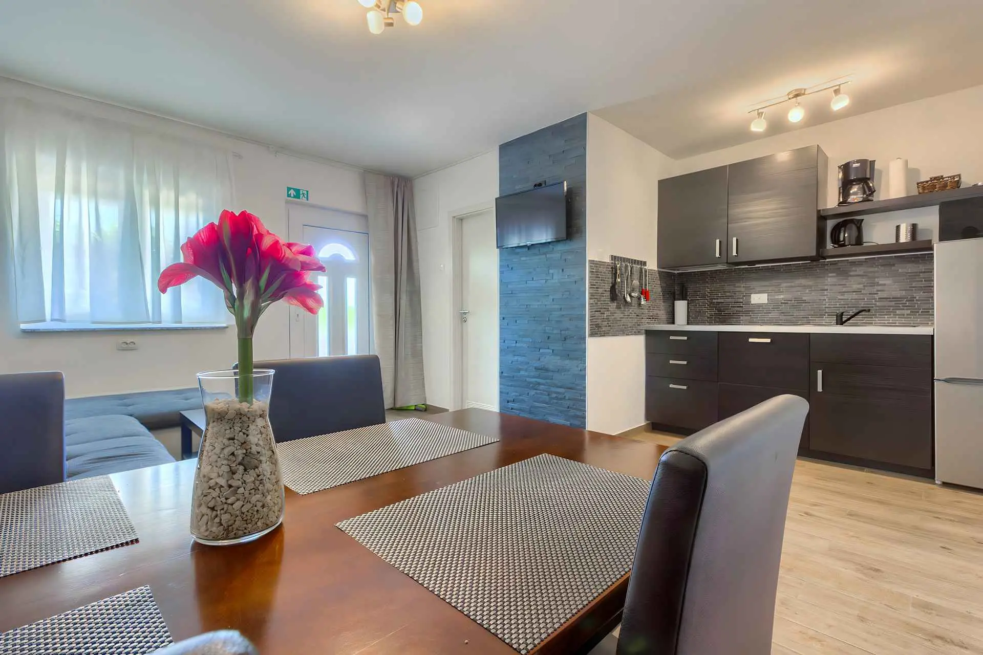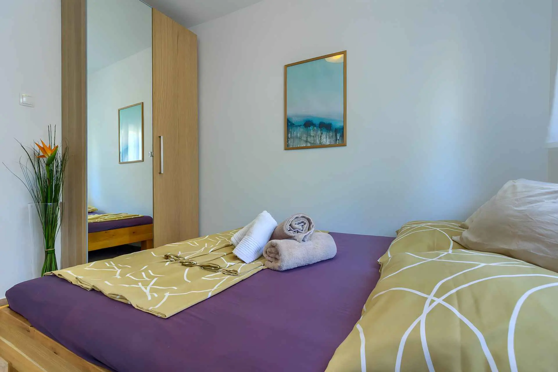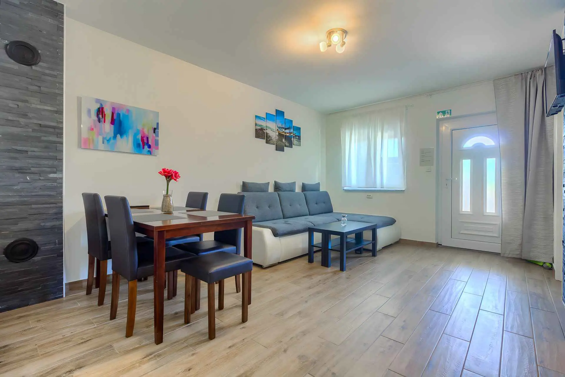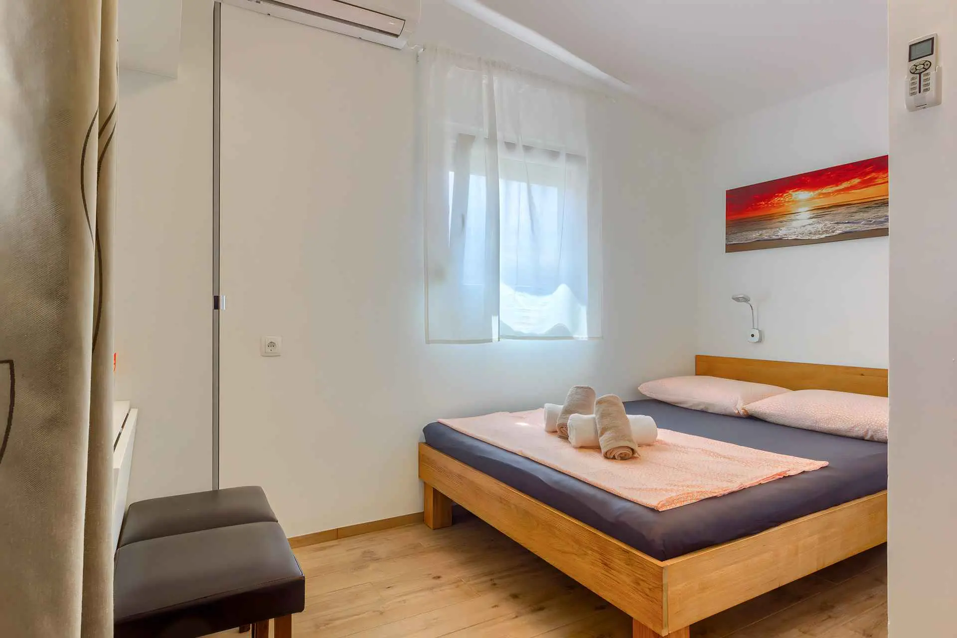 The holiday home is approx. 100 m from the beach/sea. There is an outdoor grill and a parking space at the house to enjoy your vacation in a relaxed manner. There is a bakery, a supermarket and several restaurants within a radius of approximately 100 m. The apartments ara equipped with air conditioning, Wi-Fi, and a smart TV. We also provide a hairdryer, bed linens, towels, and kitchen towels. For your safety, we have a key safe and a first aid kit. If you are traveling with a small child, we can provide a baby crib and a mattress, and upon request, we will supply an iron and ironing board. Your stay in our apartment will be comfortable and enjoyable, and we take care of all the details to ensure you can relax and enjoy your vacation.