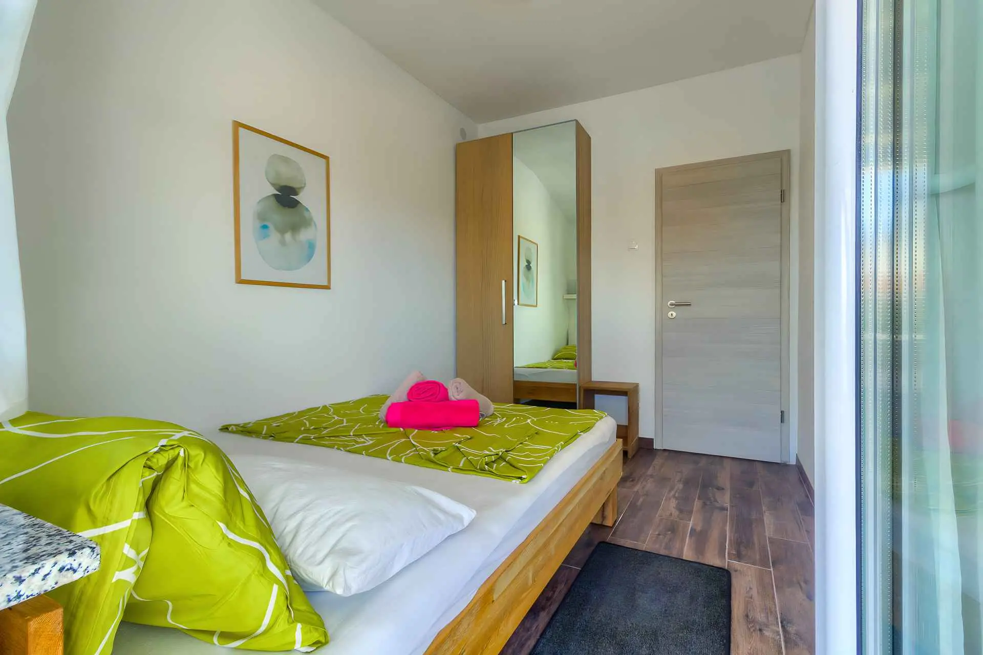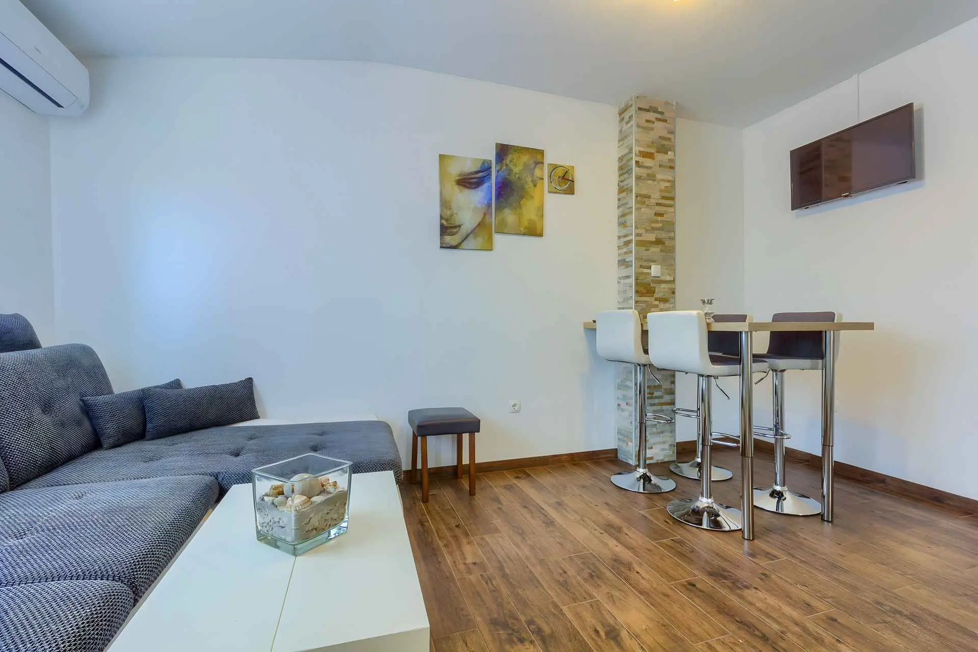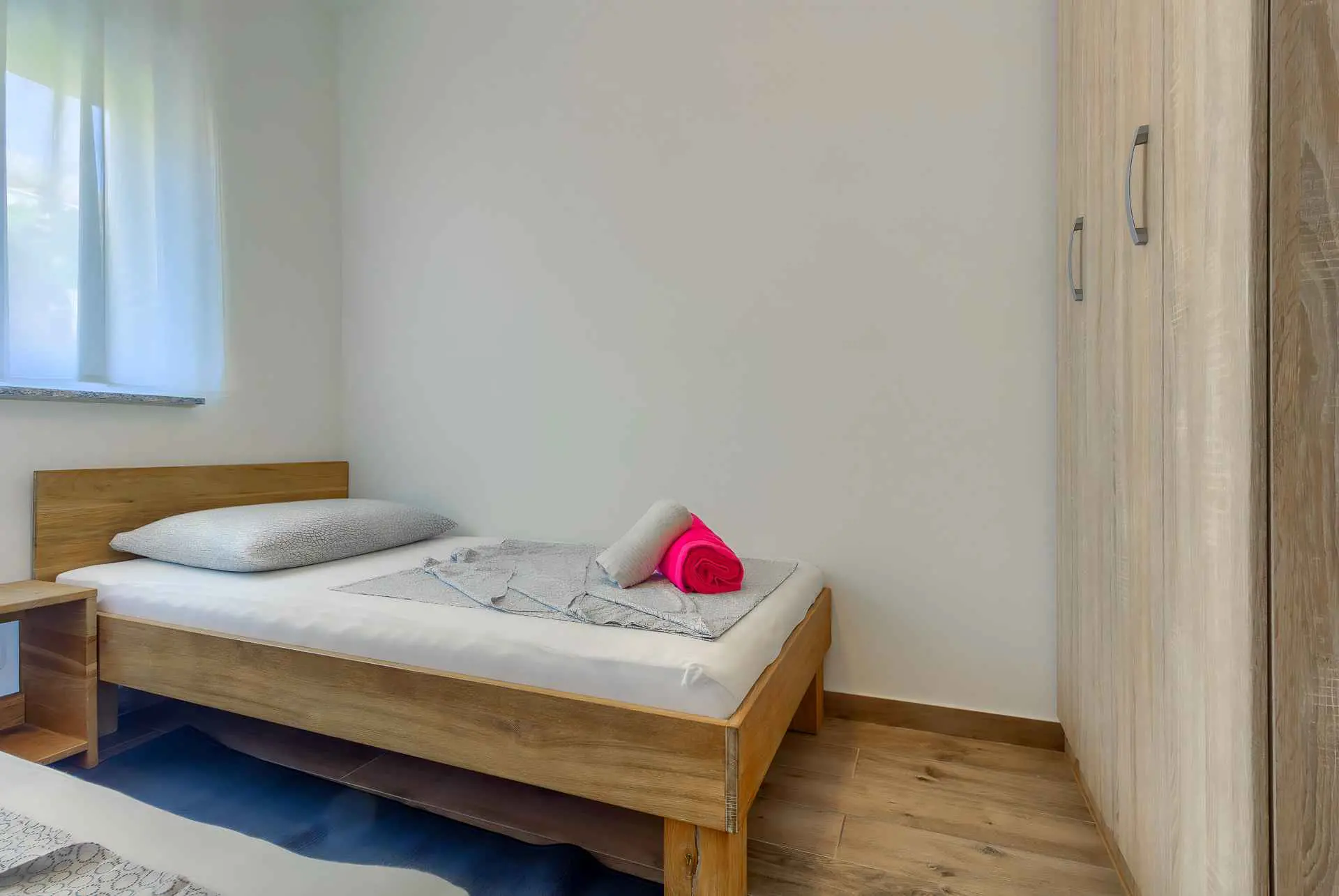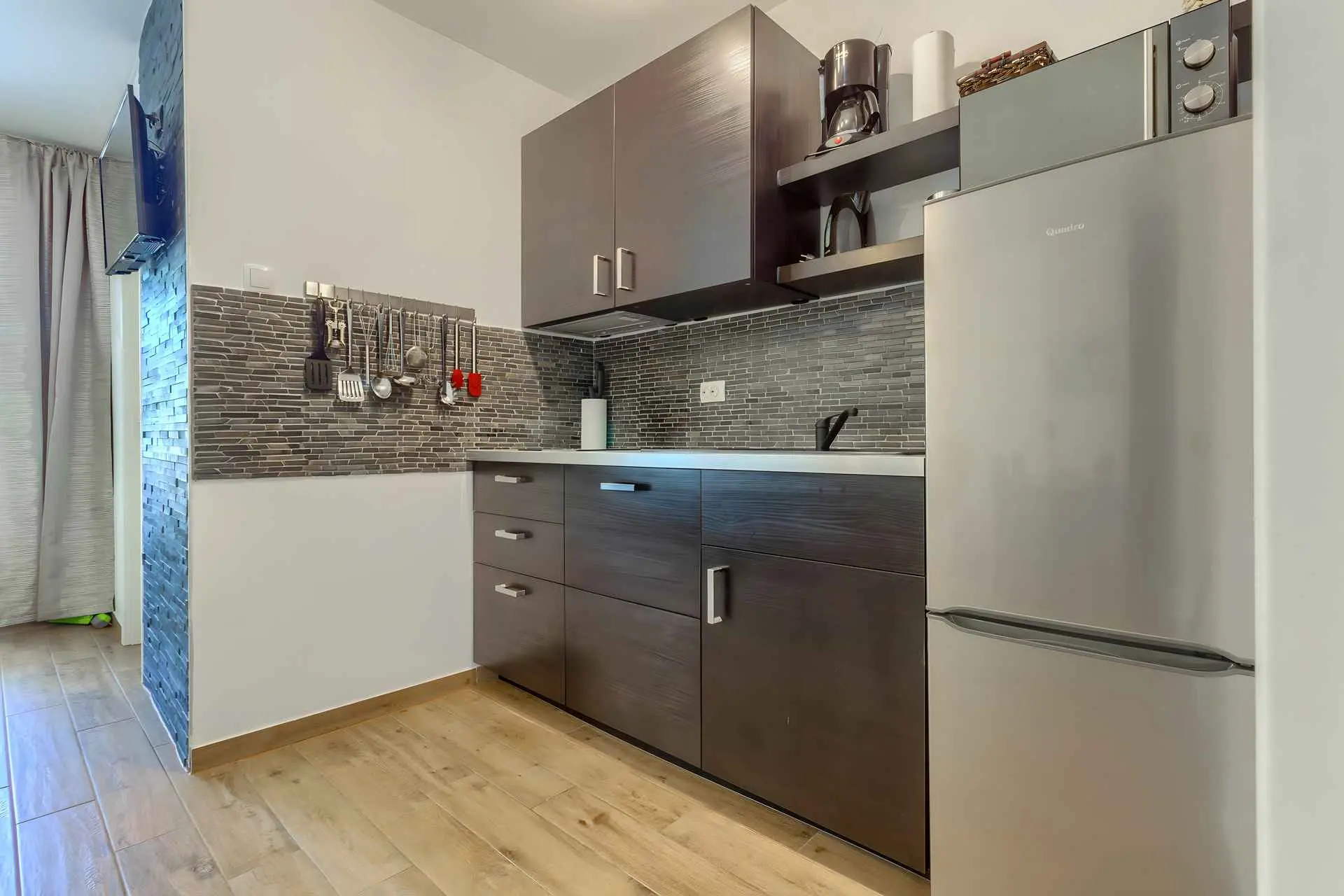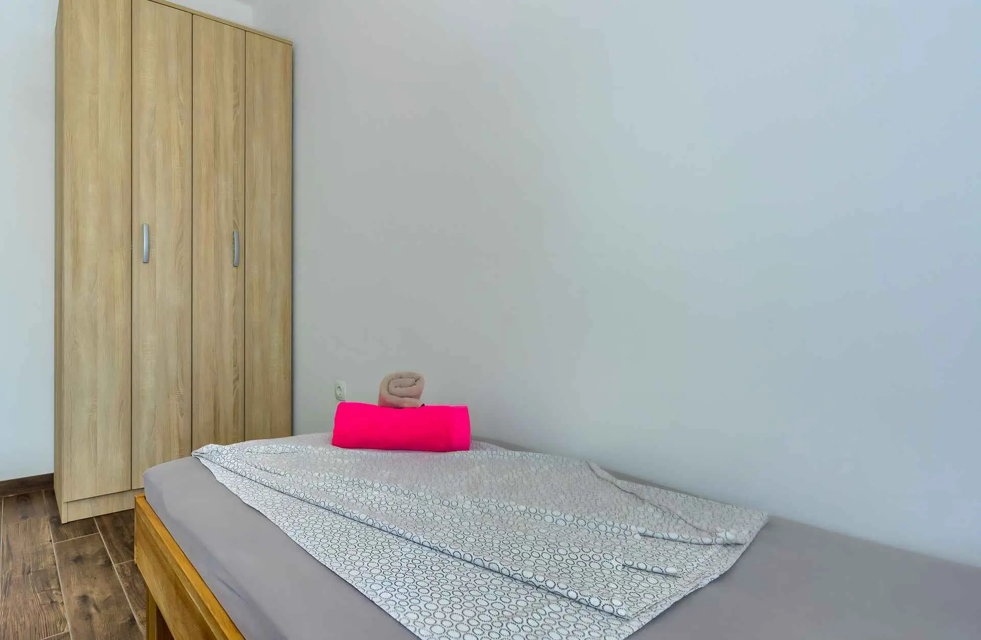 The holiday home is approx. 100 m from the beach/sea. There is an outdoor grill and a parking space at the house to enjoy your vacation in a relaxed manner. There is a bakery, a supermarket and several restaurants within a radius of approximately 100 m. The apartments ara equipped with air conditioning, Wi-Fi, and a smart TV. We also provide a hairdryer, bed linens, towels, and kitchen towels. For your safety, we have a key safe and a first aid kit. If you are traveling with a small child, we can provide a baby crib and a mattress, and upon request, we will supply an iron and ironing board. Your stay in our apartment will be comfortable and enjoyable, and we take care of all the details to ensure you can relax and enjoy your vacation.