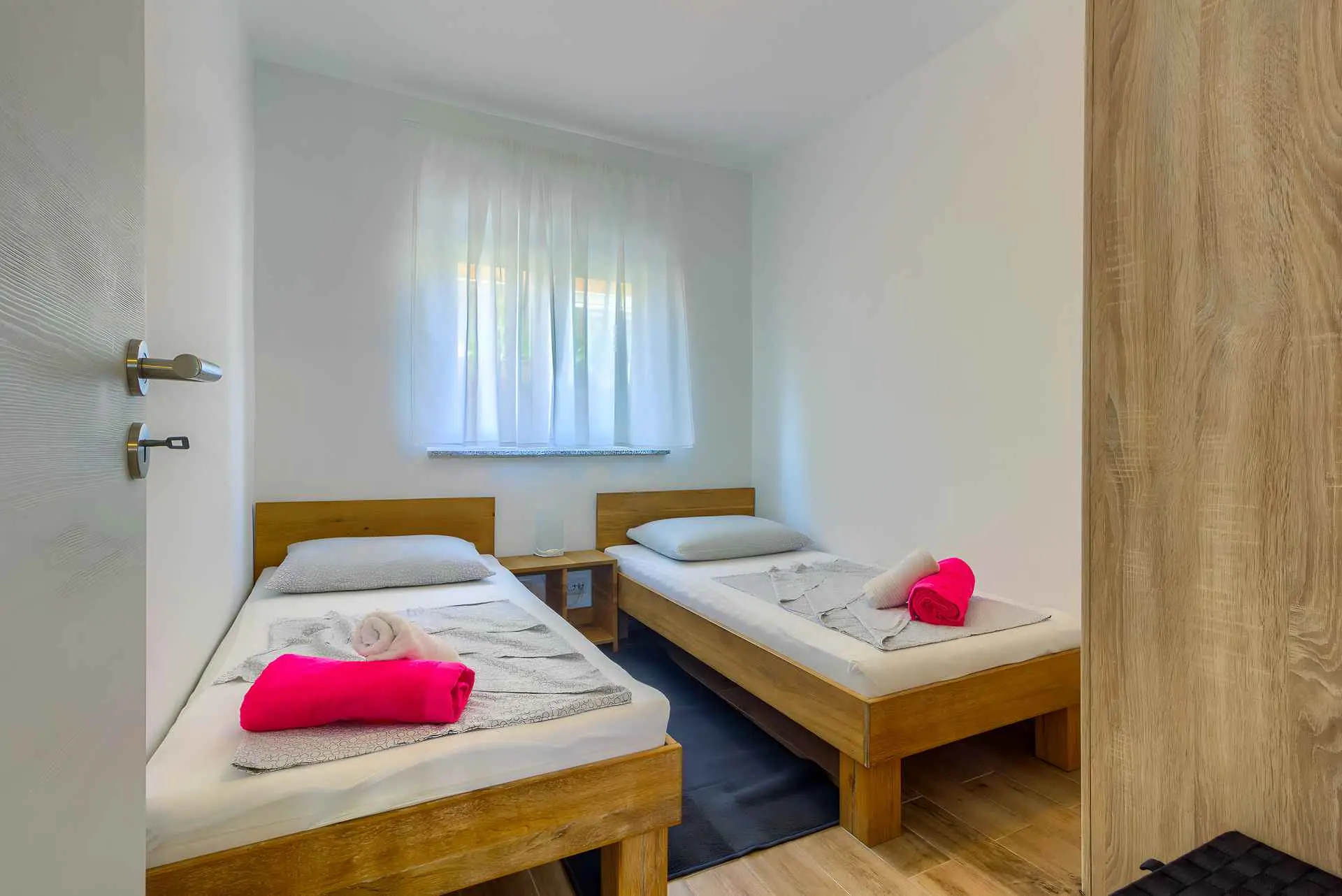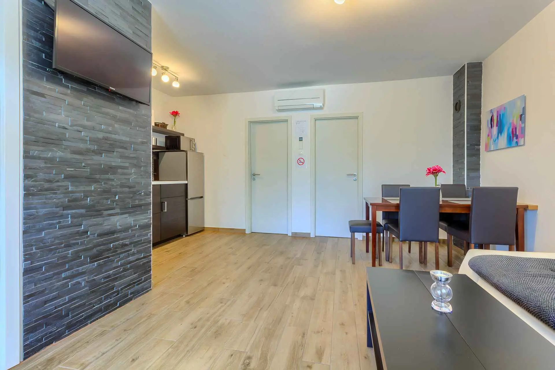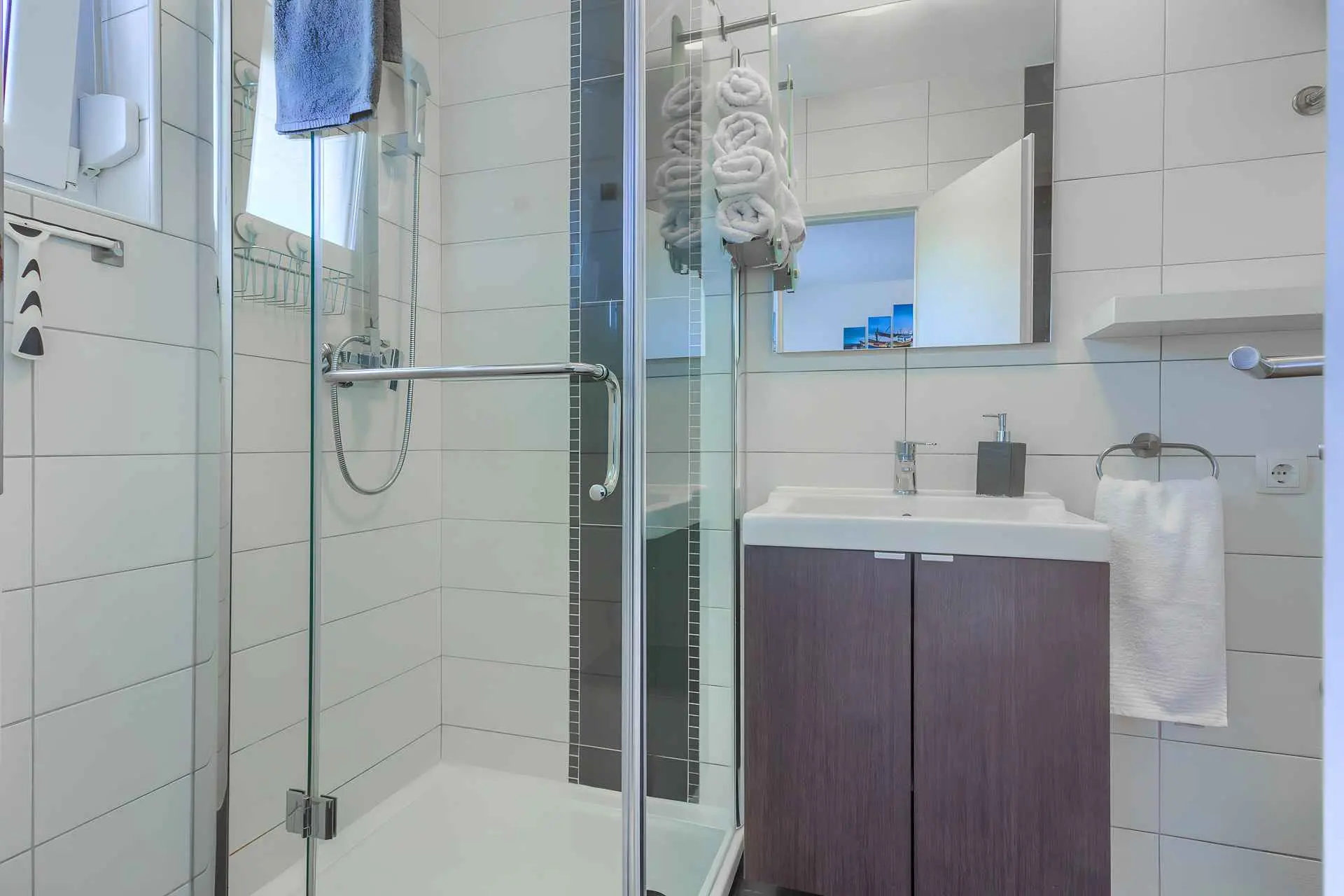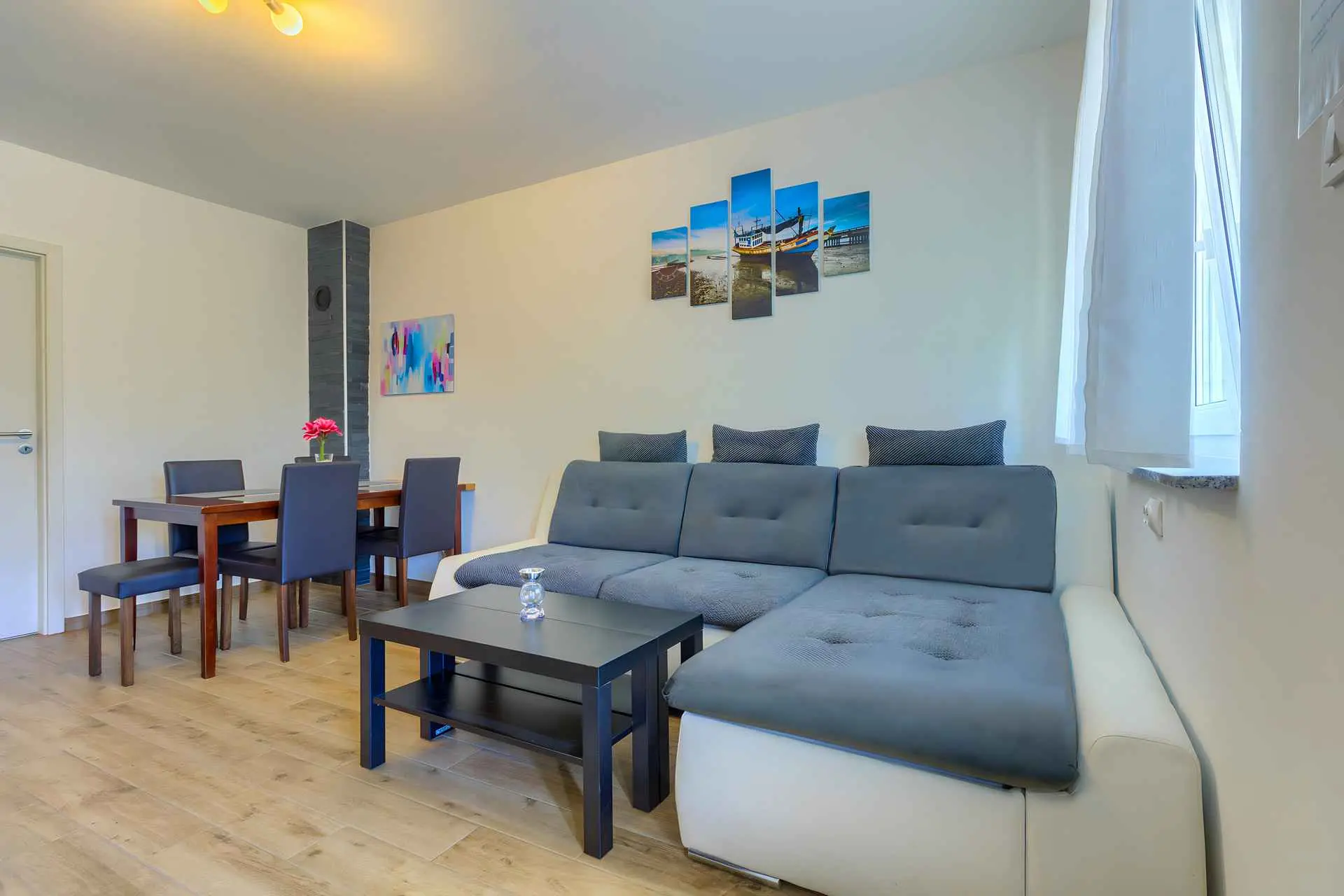 The holiday home is approx. 100 m from the beach/sea. There is an outdoor grill and a parking space at the house to enjoy your vacation in a relaxed manner. There is a bakery, a supermarket and several restaurants within a radius of approximately 100 m. The apartments ara equipped with air conditioning, Wi-Fi, and a smart TV. We also provide a hairdryer, bed linens, towels, and kitchen towels. For your safety, we have a key safe and a first aid kit. If you are traveling with a small child, we can provide a baby crib and a mattress, and upon request, we will supply an iron and ironing board. Your stay in our apartment will be comfortable and enjoyable, and we take care of all the details to ensure you can relax and enjoy your vacation.
