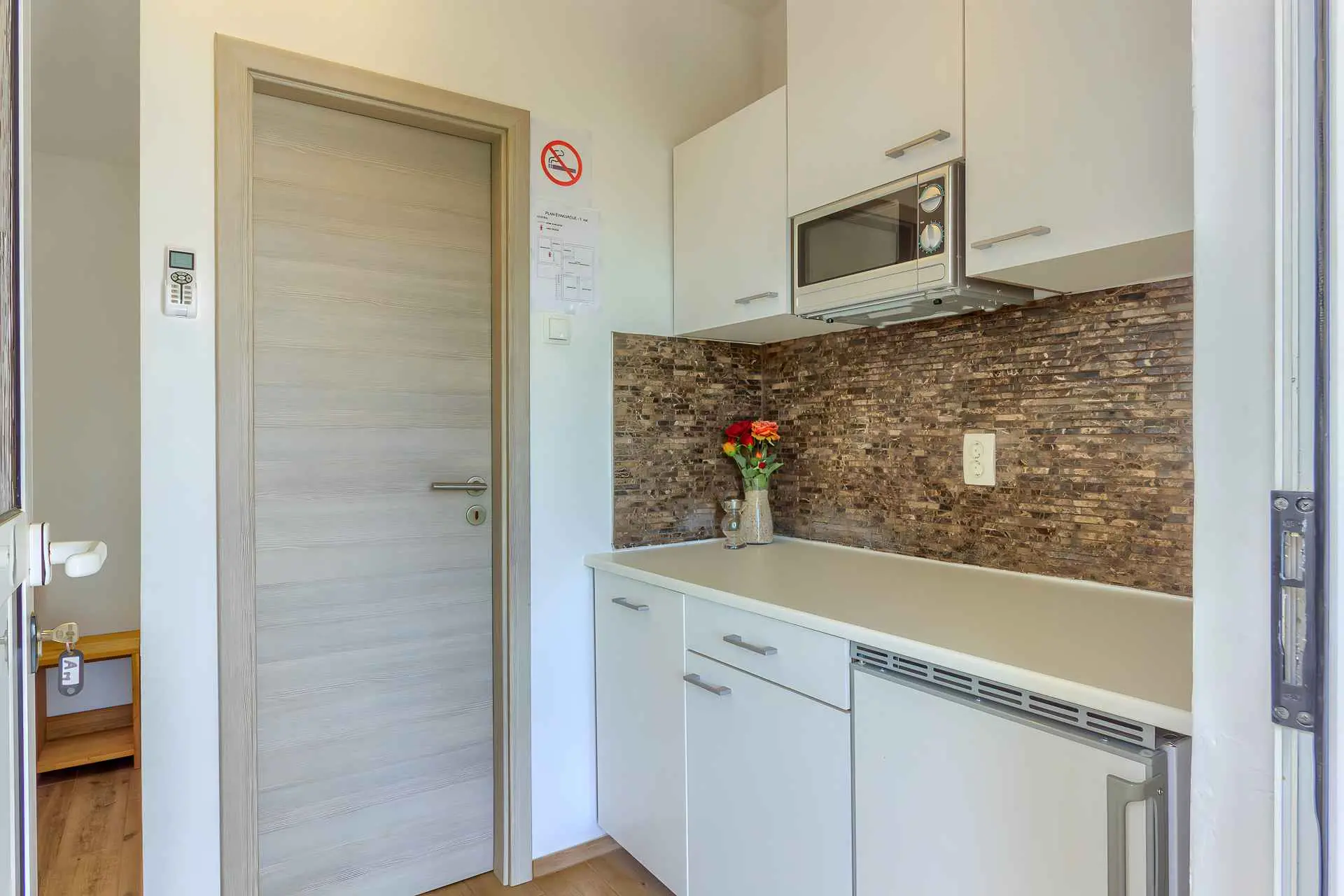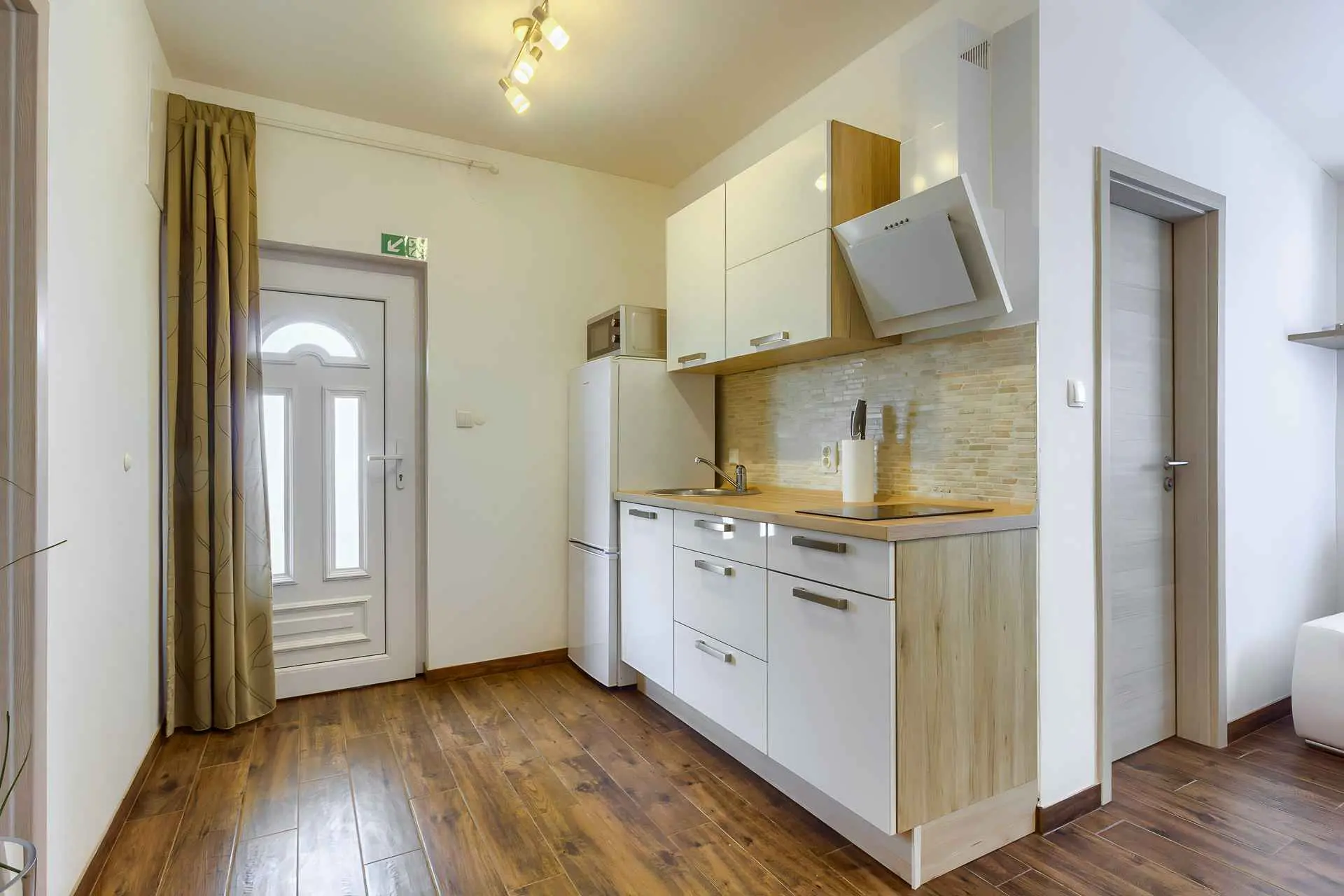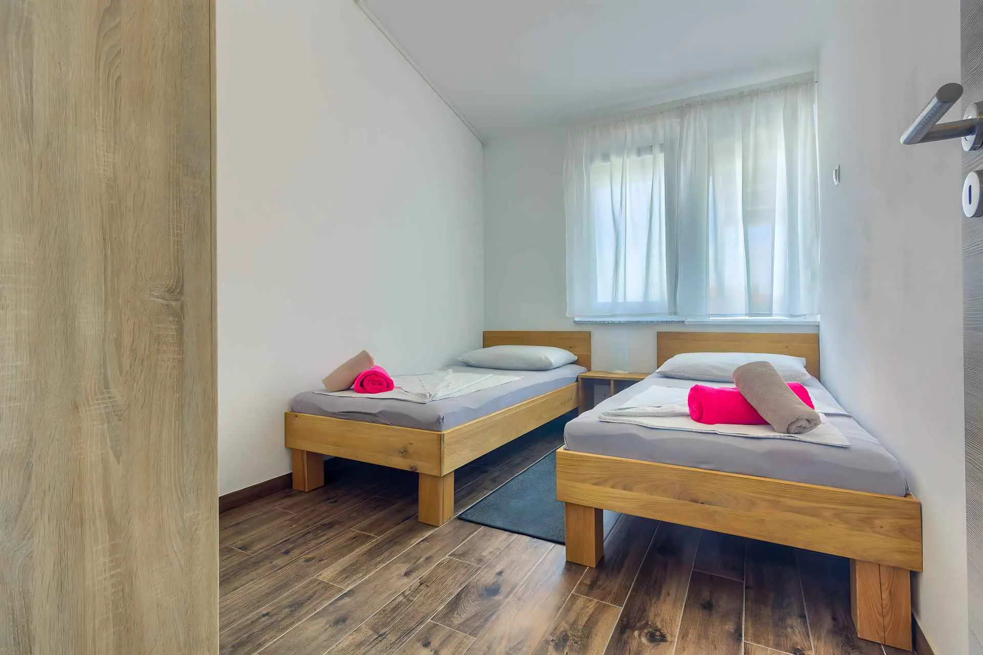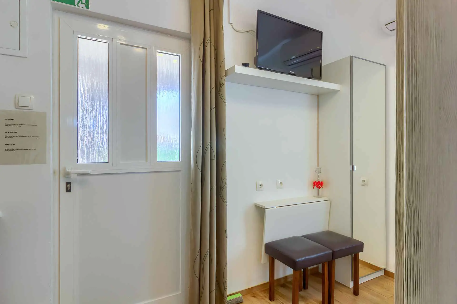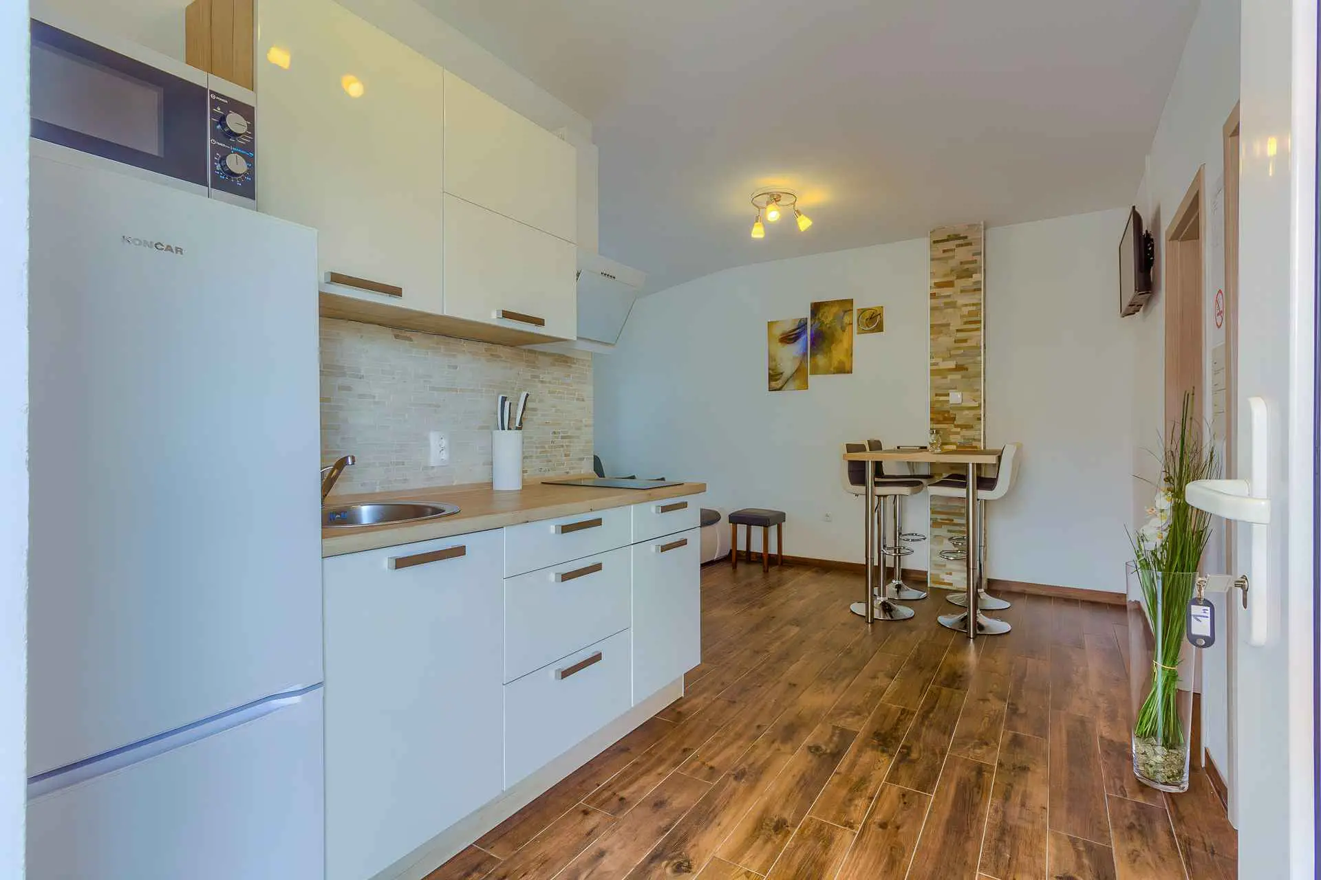 The holiday home is approx. 100 m from the beach/sea. There is an outdoor grill and a parking space at the house to enjoy your vacation in a relaxed manner. There is a bakery, a supermarket and several restaurants within a radius of approximately 100 m. The apartments ara equipped with air conditioning, Wi-Fi, and a smart TV. We also provide a hairdryer, bed linens, towels, and kitchen towels. For your safety, we have a key safe and a first aid kit. If you are traveling with a small child, we can provide a baby crib and a mattress, and upon request, we will supply an iron and ironing board. Your stay in our apartment will be comfortable and enjoyable, and we take care of all the details to ensure you can relax and enjoy your vacation.