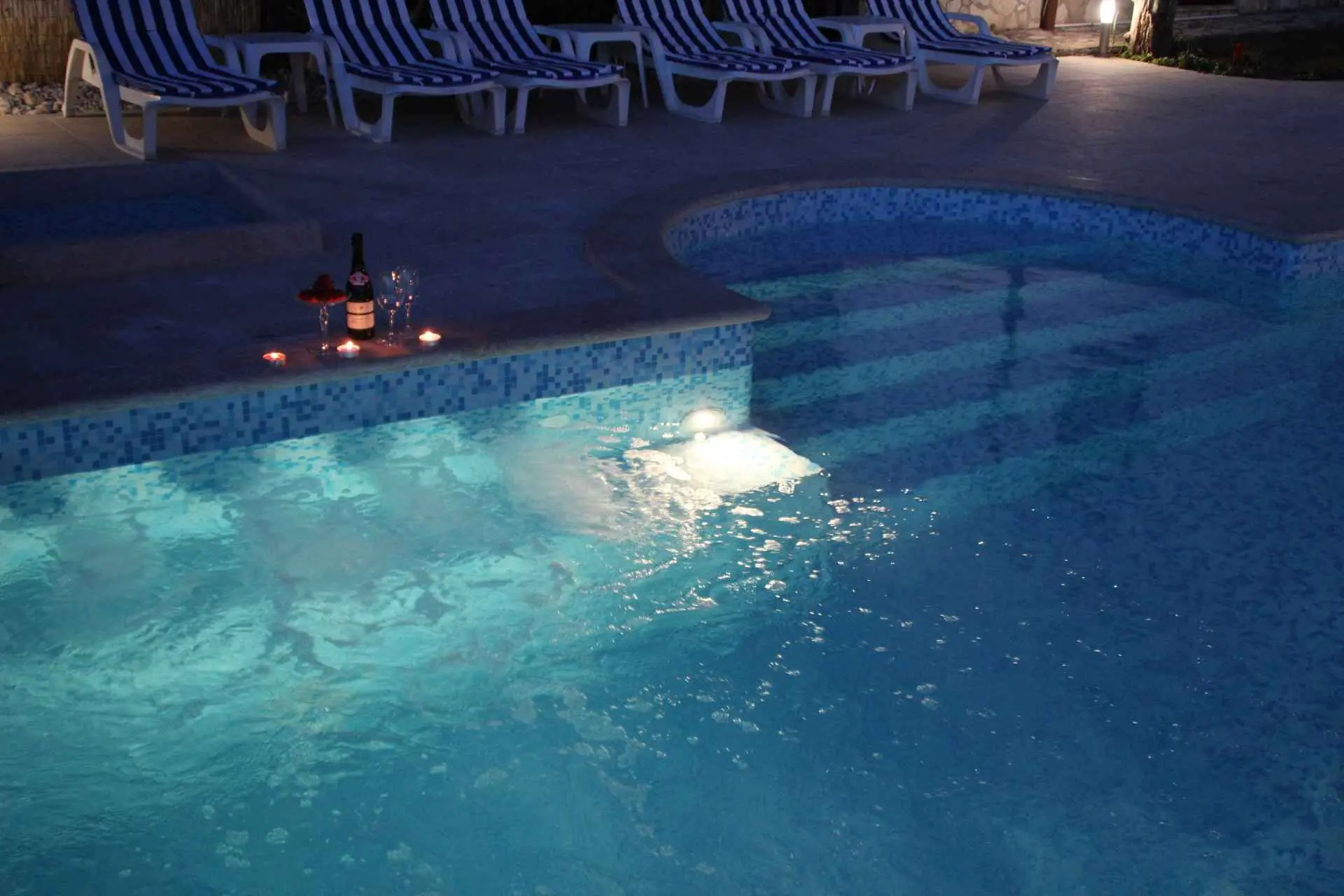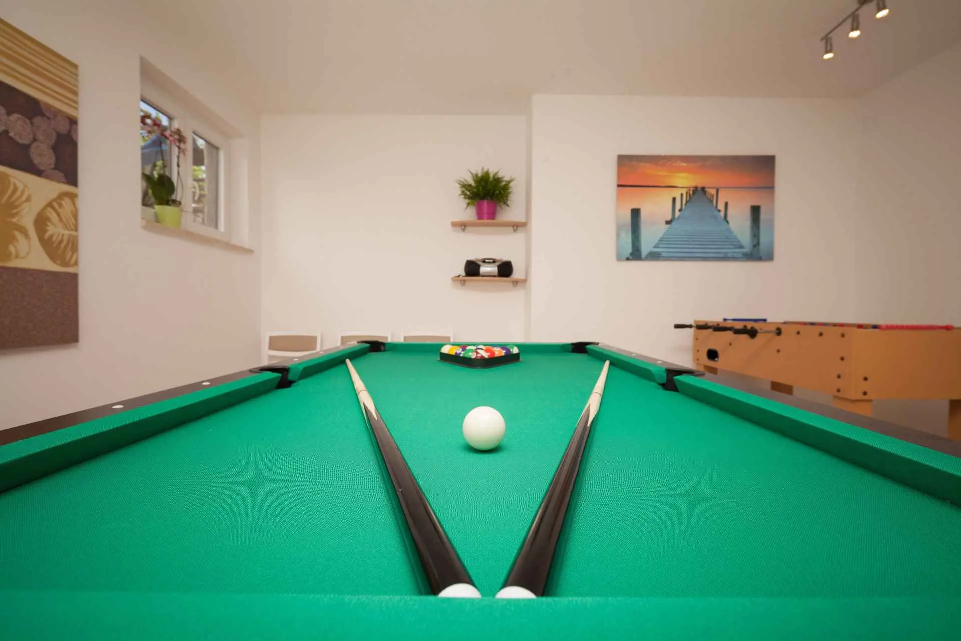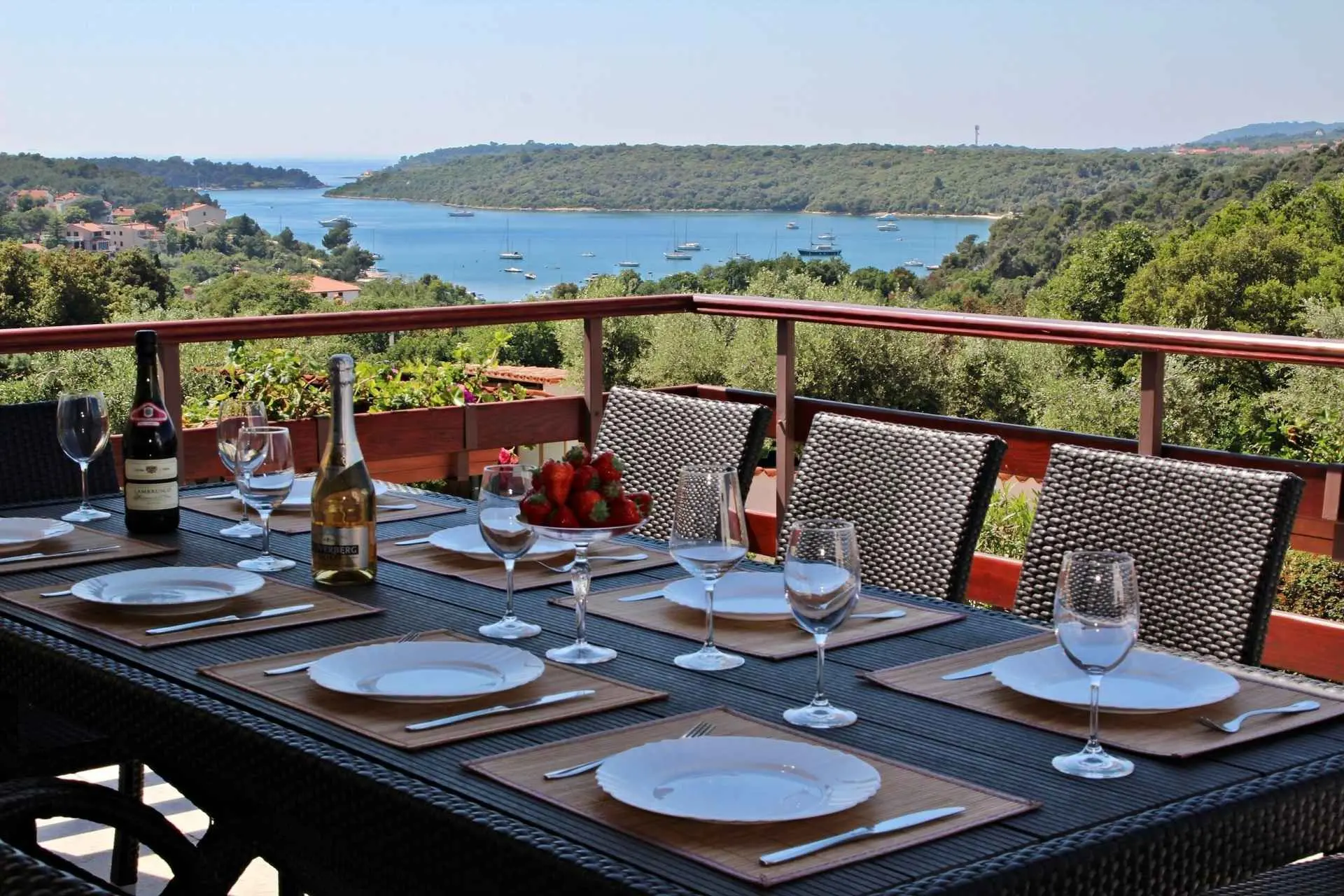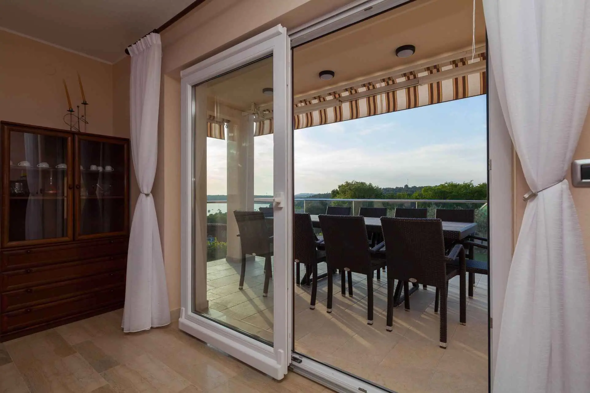 Spacious and refreshing villa with an amazing sea view, large pool with whirpool, sauna, game room with billiard for amazing vacation time Beautiful villa is based on 3 floors. Higher ground floor is the resting area with living room,large kitchen,winter terrace with indoor fireplace,garage, bathroom and a large open terrace with large dining table and a stunning view of the sea-Banjole's bay and natural suroundings. On the 1st floor there are 3 bedrooms and 2 bathroms. Each bedroom has balcony and view of the sea. From the outdoor terrace a staircase is leading to the garden area where is the large pool with jacuzzi and large sunbathing area with deckchairs. There is outside grill area and a place for relaxing. On the ground floor there are 2 more bedrooms each one with private bathroom, air condition, SAT TV. There is also game room with billiard, darts and table soccer. The garden area is walled and safe for children. The villa is located on one of the highest vantage points of the village which means it offers a stuning view of the sea and natural beauties. The area is safe and quiet which allows you to be relaxed during your stay. Nearest sea is just 800 meters away and in vicinity of not more then 2 kilometers there are many rocky and sandy beaches, campsites, wild beaches. Near the property is one small shop for everything you need and just 1 km away there is larger supermarket,gas staion,bank,ATM. Whirpool inside the swimming pool, wellness room with sauna and shower, game room with biliard, table soccer, darts, garage + 2 parking spaces, outside grill on coal or gas, inside fireplace on the large winter terrace.