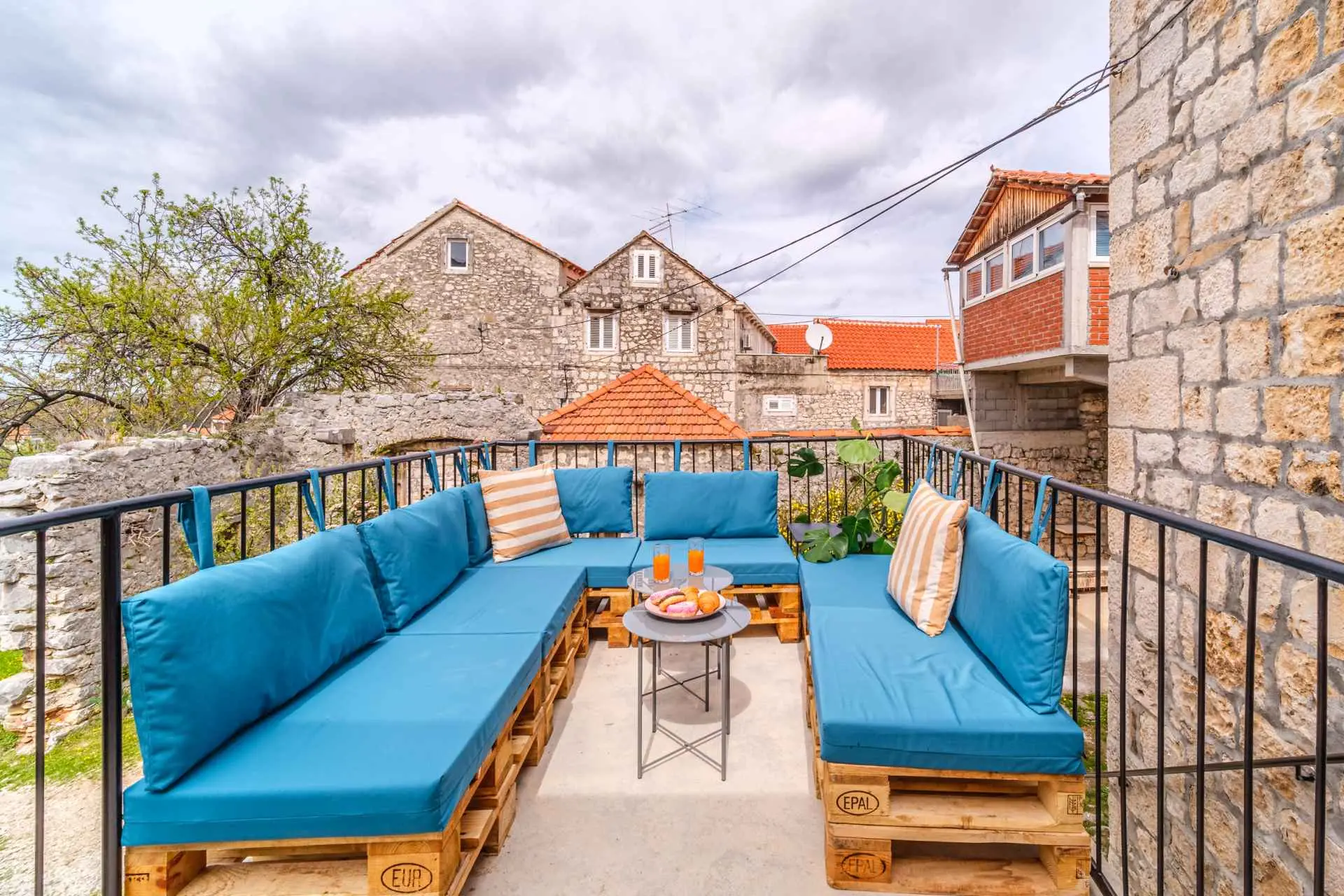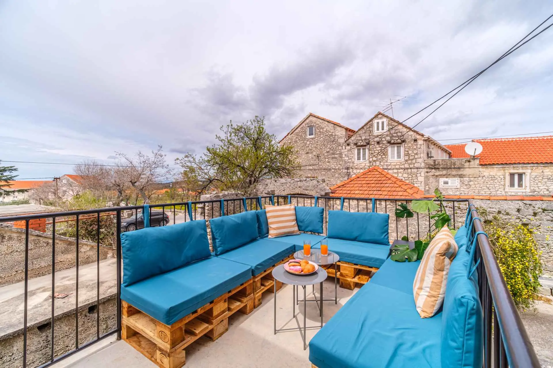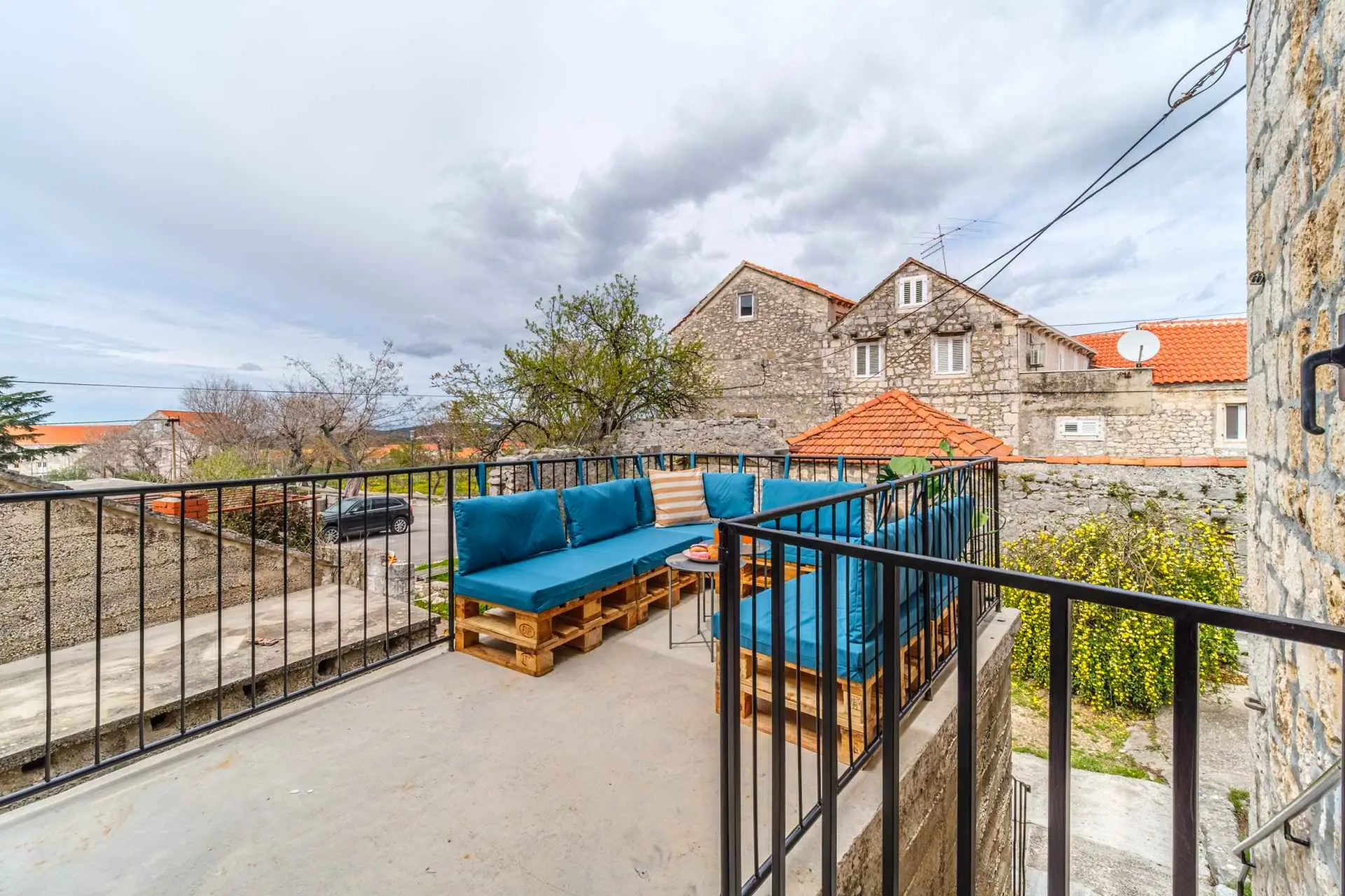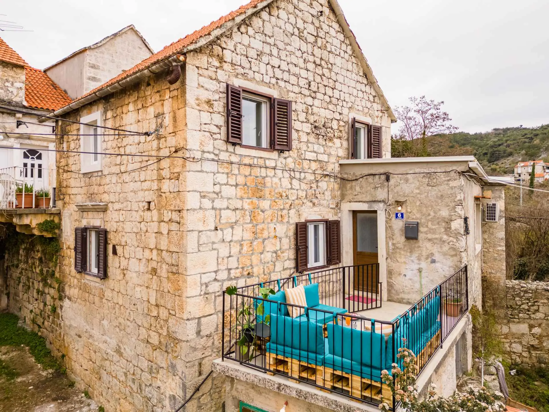 House is located in center of Nerezisca, near the store, restaurant and coffe shop. It contains 3 bedrooms, each with TV, two and a half bathrooms, loundry room, living room and fully equiped kitchen with dining room.