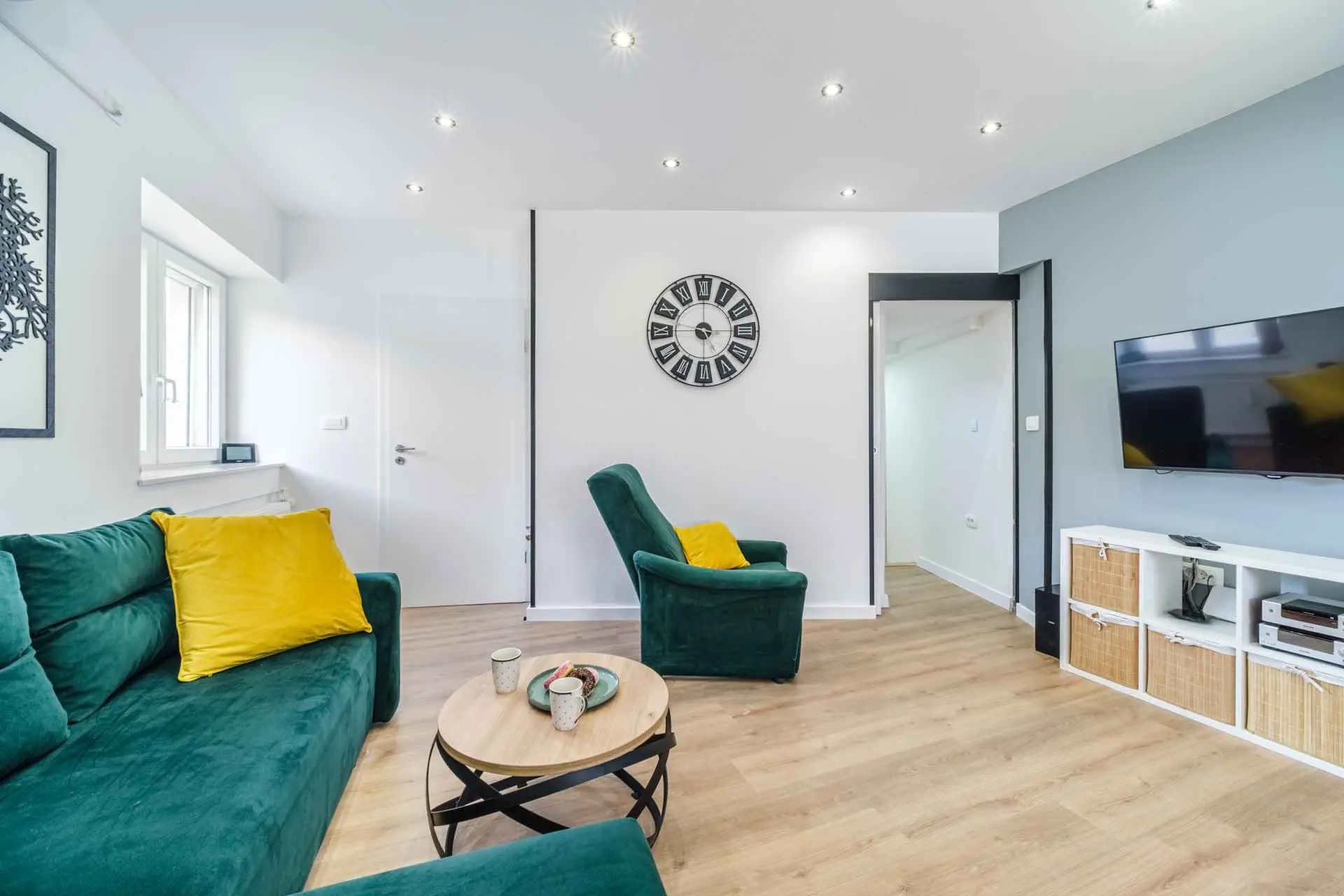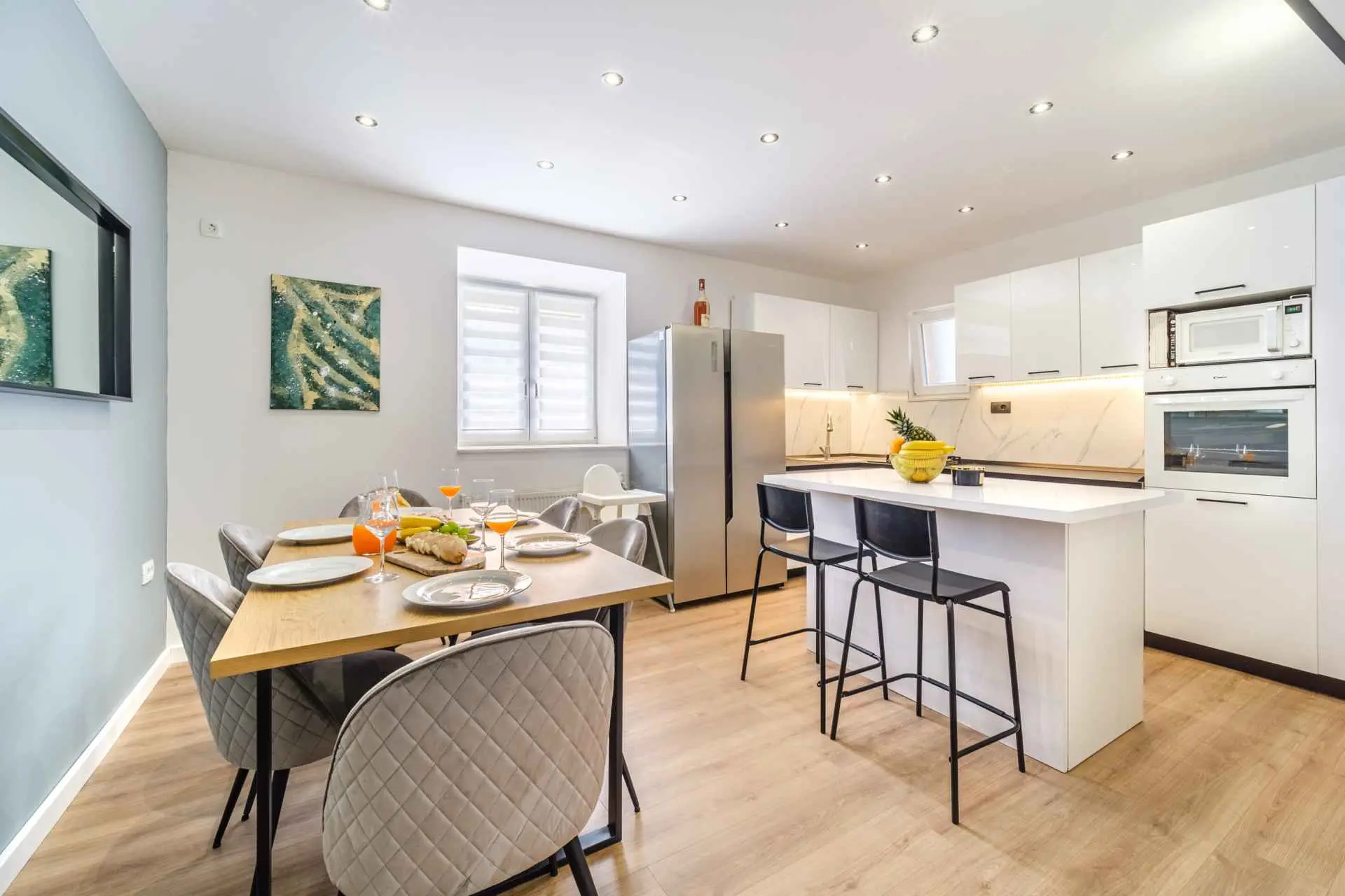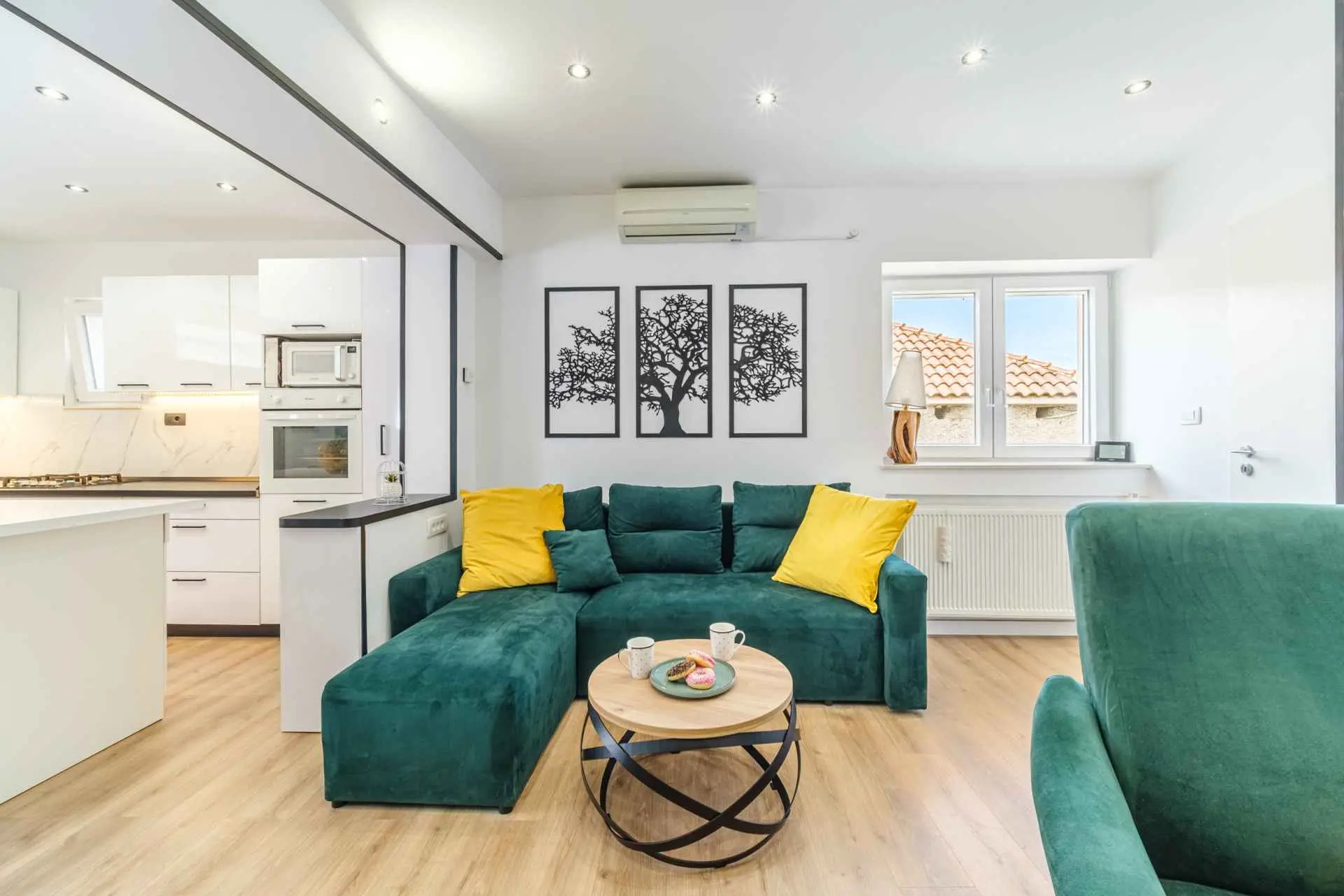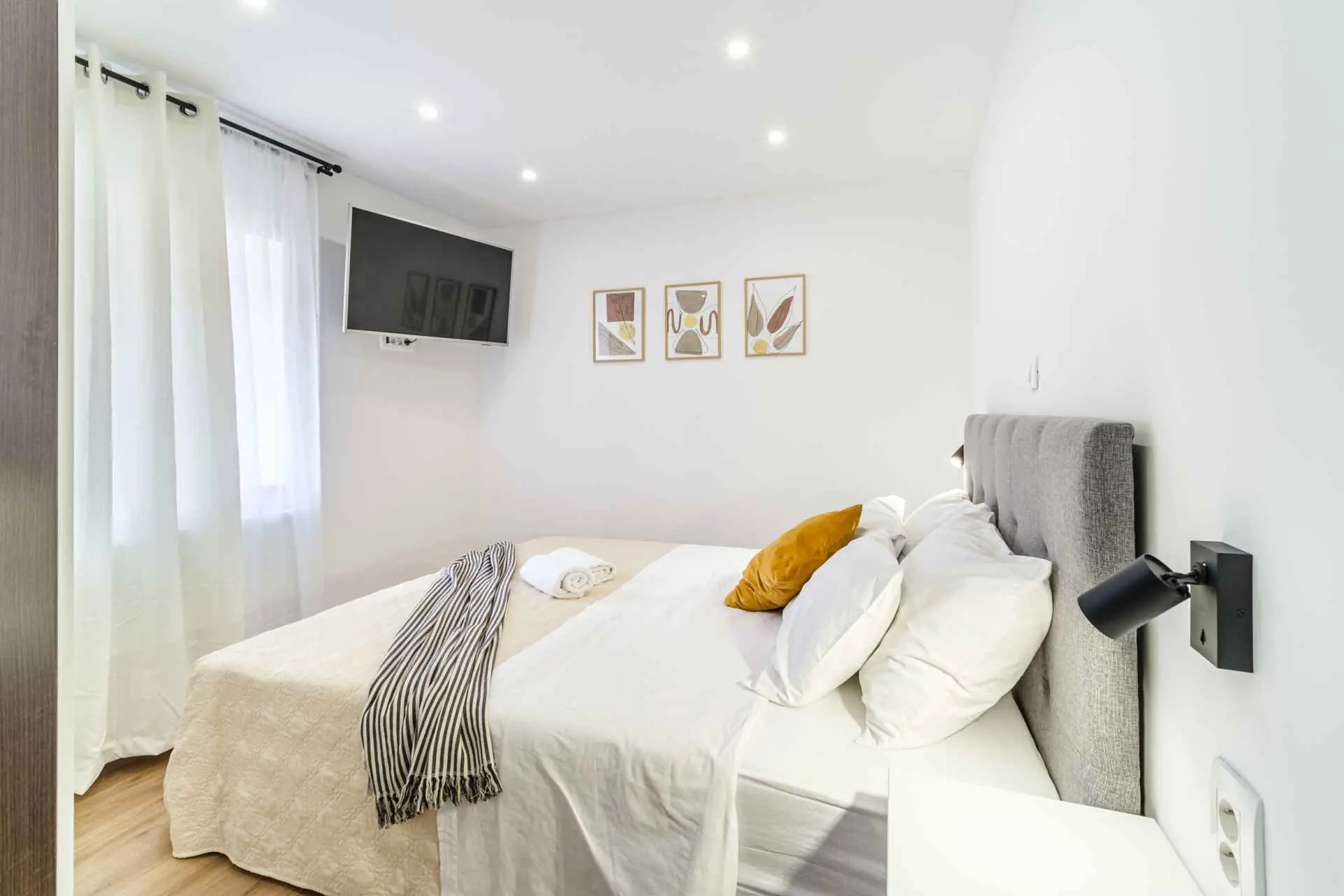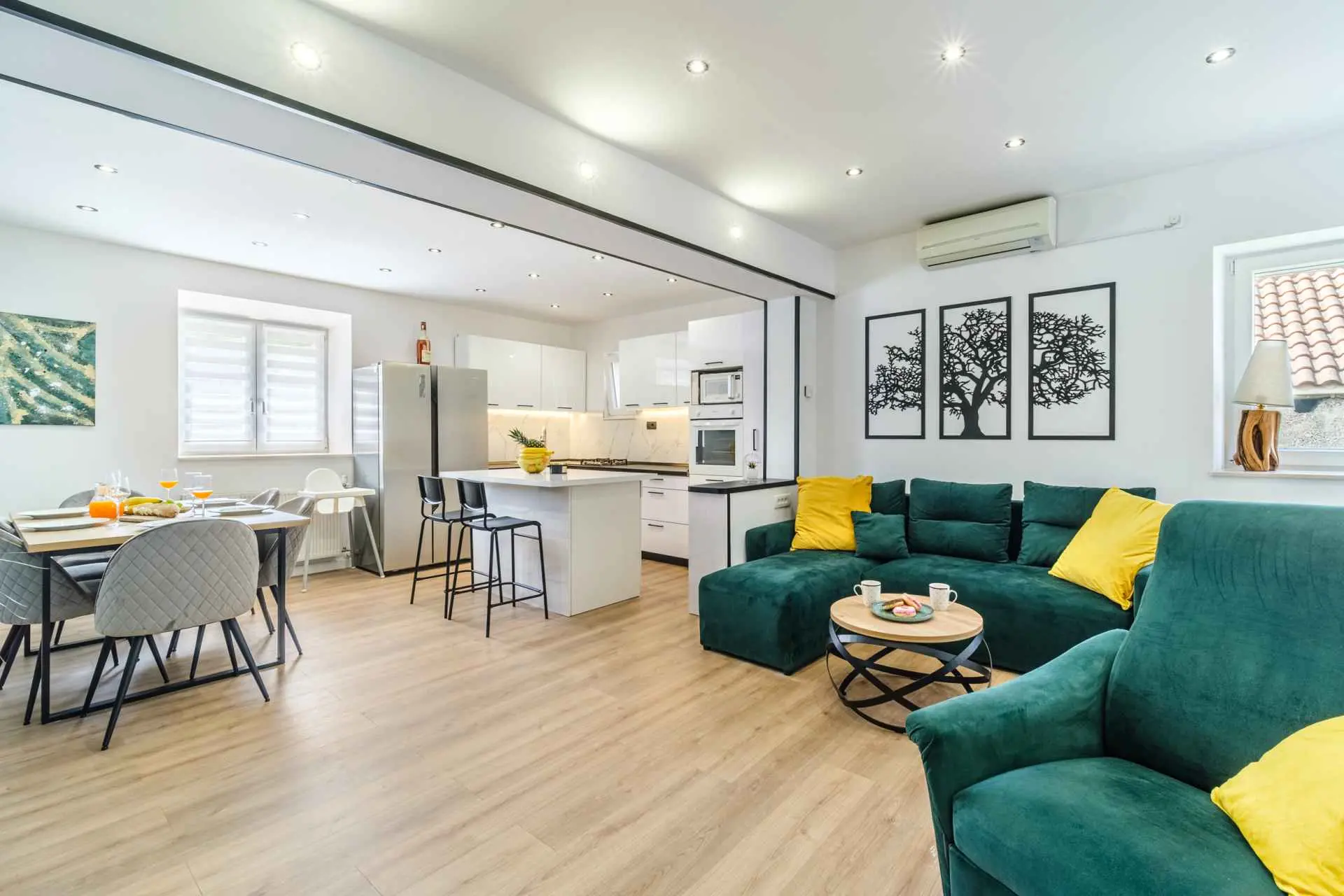 House is located in center of Nerezisca, near the store, restaurant and coffe shop. It contains 3 bedrooms, each with TV, two and a half bathrooms, loundry room, living room and fully equiped kitchen with dining room.