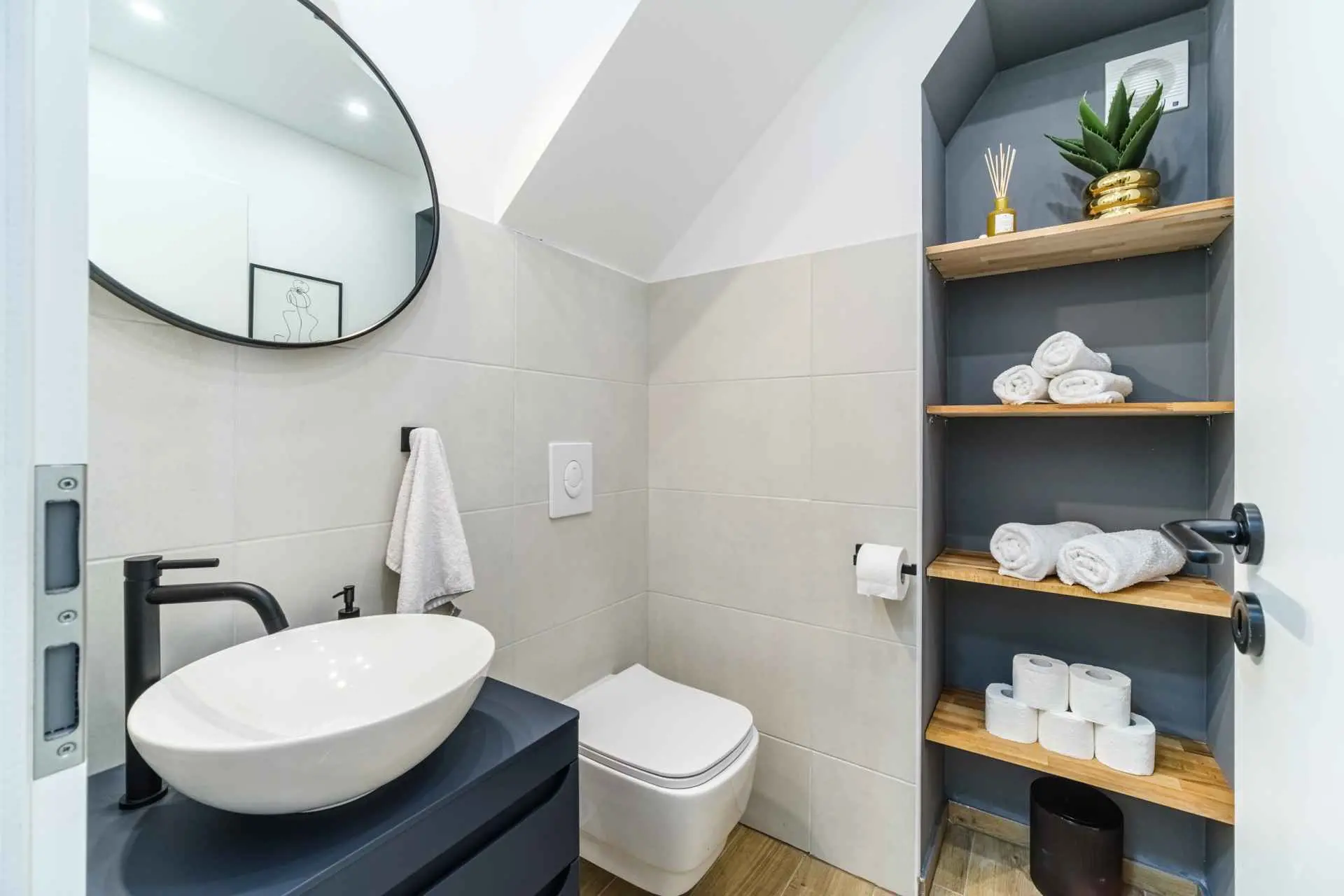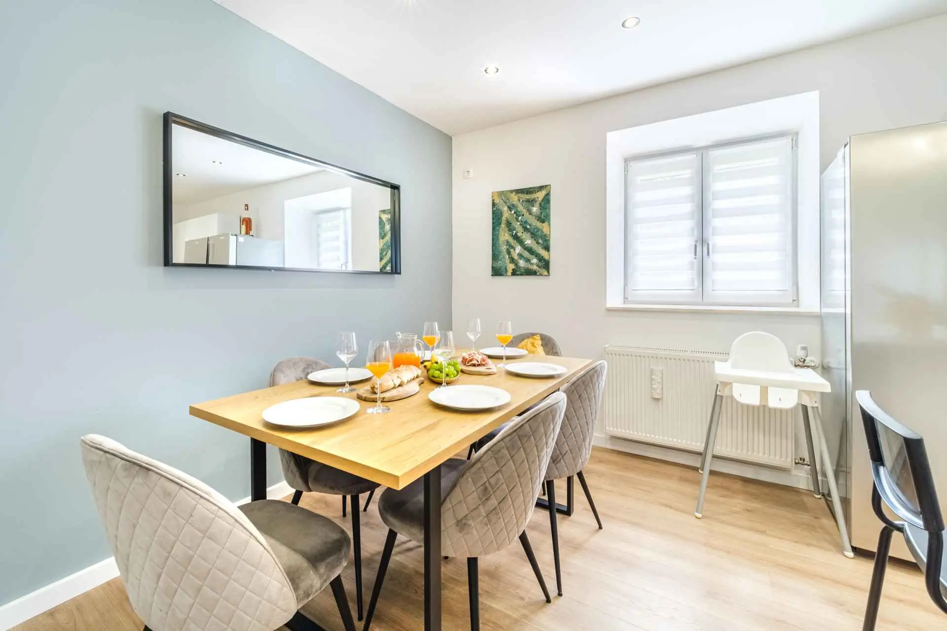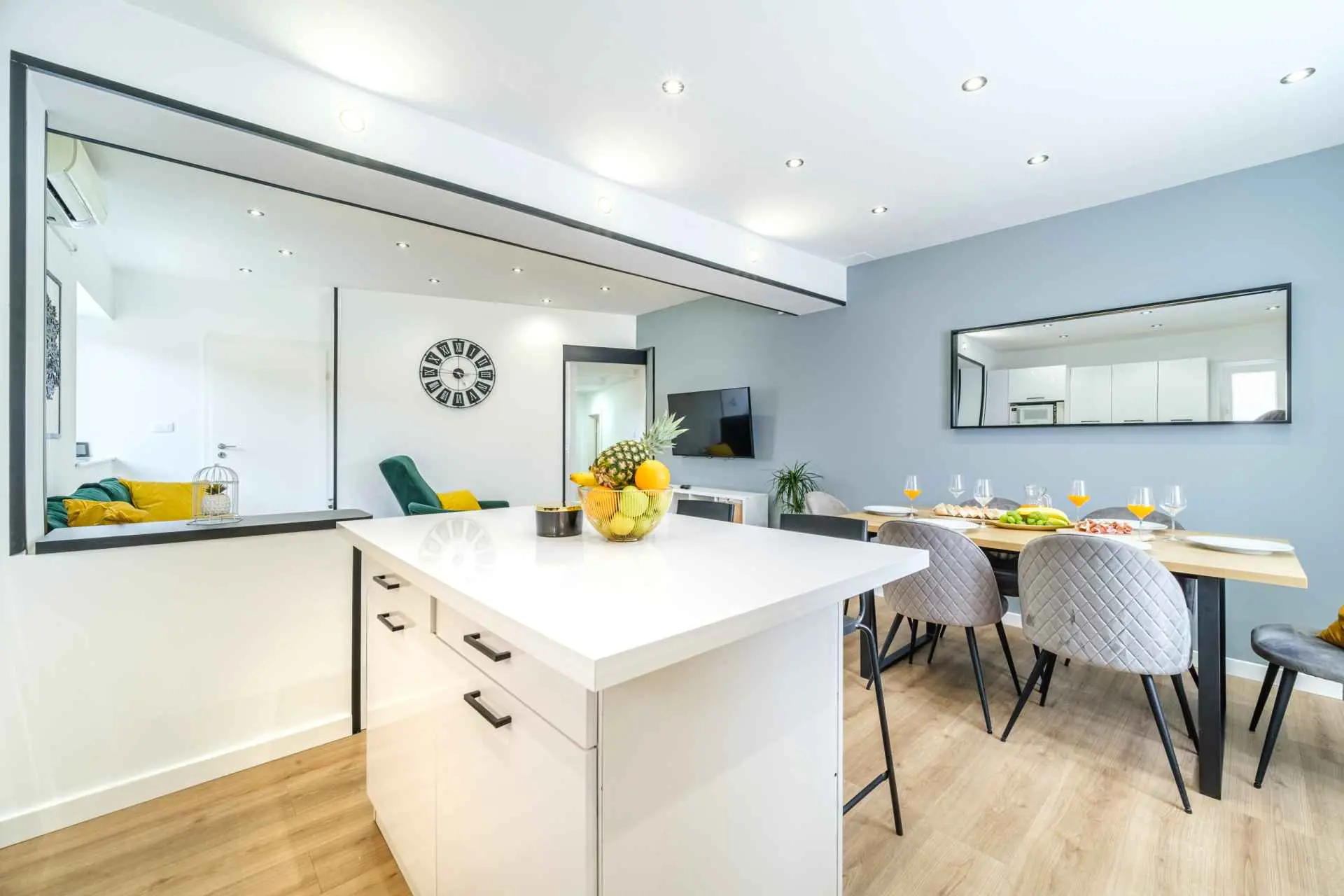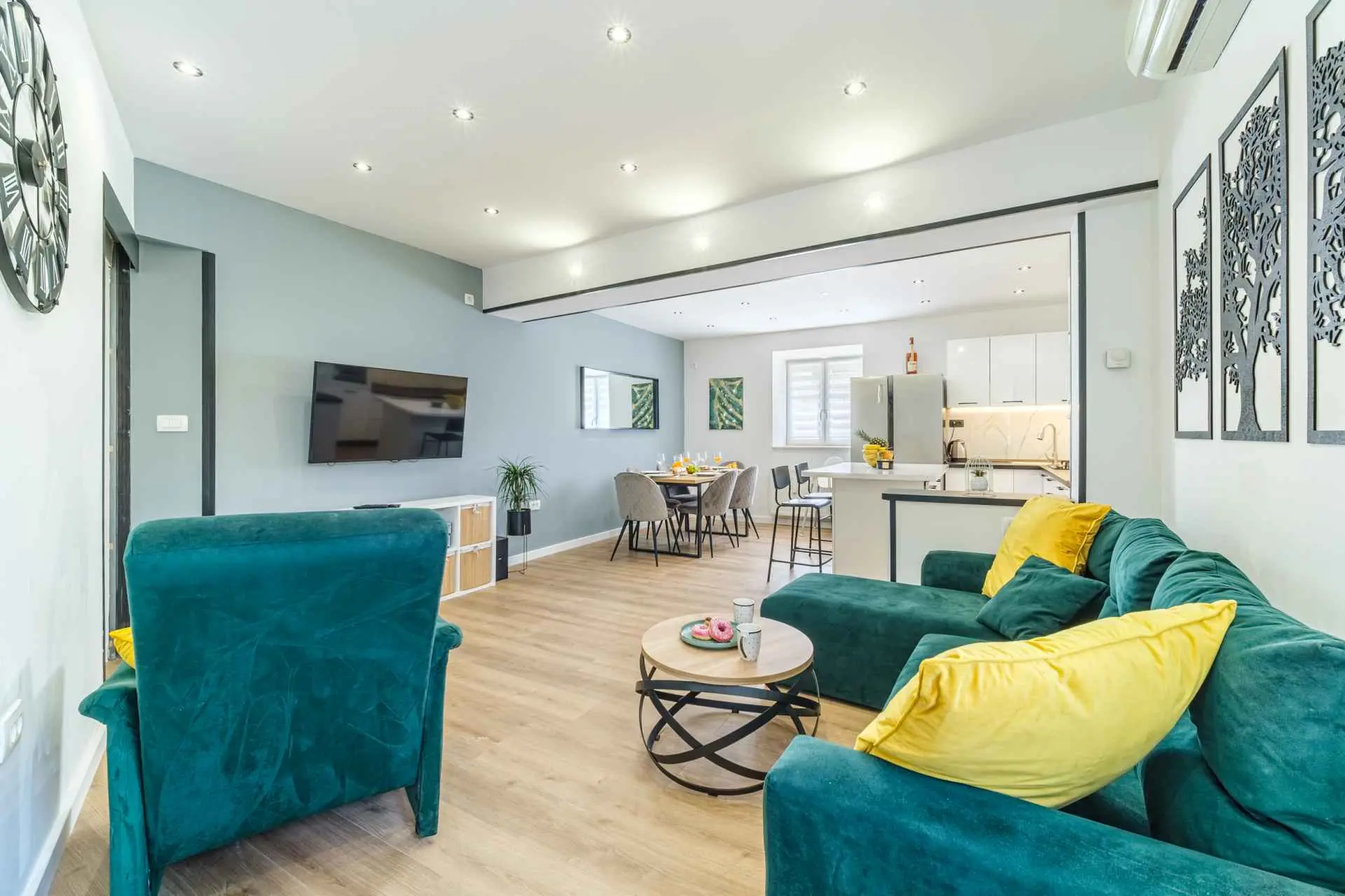 House is located in center of Nerezisca, near the store, restaurant and coffe shop. It contains 3 bedrooms, each with TV, two and a half bathrooms, loundry room, living room and fully equiped kitchen with dining room.
