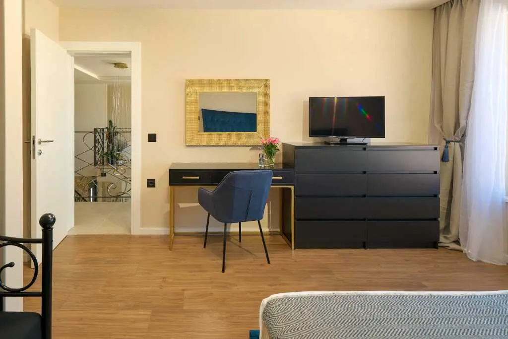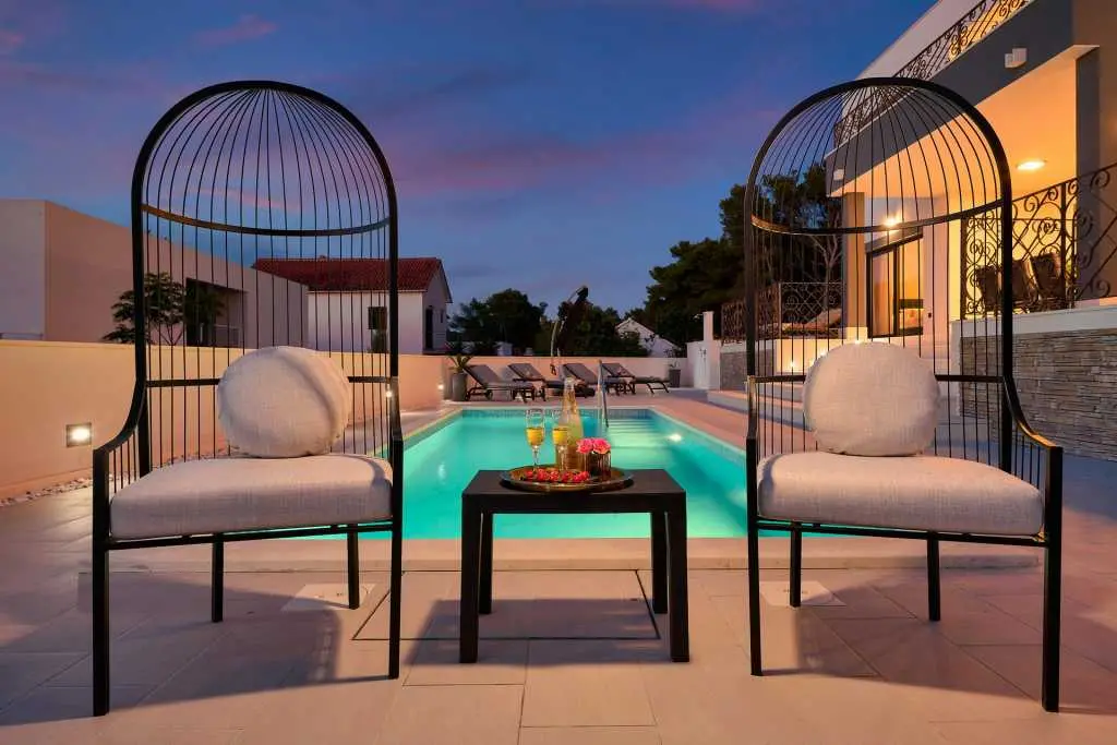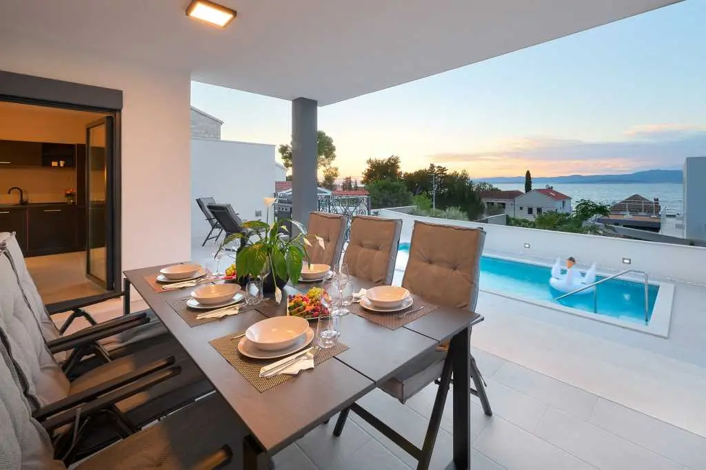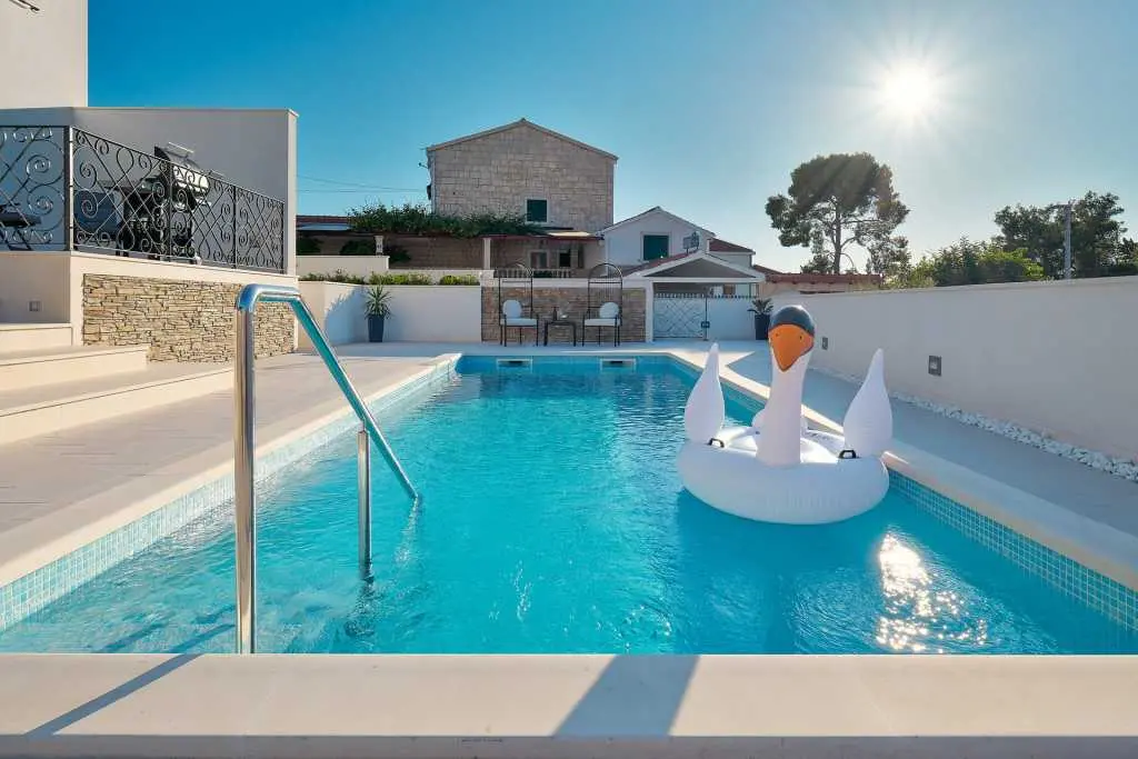 Spend your vacation in the small picturesque town of Sutivan on the island of Brač. It is also home to Villa Allure, which invites you to come and see for yourself the beauty of this part of the Adriatic coast. Villa Allure is a newly built vacation home with an accommodation capacity of 6+2. The villa contains three bedrooms with attached bathrooms, several terraces, each of which has a sea view , a fully equipped kitchen, a living room and a garage for your car. Outdoor facilities include a swimming pool, gas grill, two bicycles for free use and a table tennis.