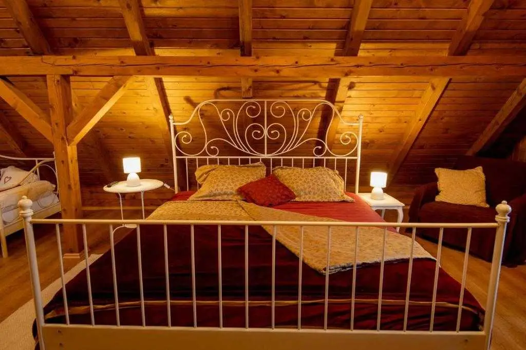 Grunt is located near spas, such as Terme Jezerčica, Krapinske Toplice, Stubičke Toplice and Tuheljske Toplice, they provide a wonderful wellness atmosphere and relaxation. Also nearby are several castles to visit the castle Oršić, Trakošćan, Veliki Tabor, Miljana Bežanec and many other summer houses waiting to tell their legends. Cycling along the hills of Zagorje leaves you breathless both in view and in the literal sense of the world. But worth every drop of sweat. The house is located on the hill of Zagorje, completely separated from the city crowds surrounded by forests and vineyards. Every year the garden is landscaped and various types of roses, bulbs, ornamental shrubs and trees are planted. Because of the current situation where everything shut down, Grunt was given new energy and a grill was built for both family and friends. There is also a place for meditation called "Peace of Morris". There is a bench with a beautiful view of the hills and forest. The interior of the house is decorated with a lot of creativity and objects that each has its own story and its own history. The house provides capacity for 4 people, but with extra beds can accommodate 6 people. It is equipped with all necessary kitchen utensils to provide a comfortable stay. We want every guest to feel welcome and to behave like a good master in the house, because we give our house to you!
