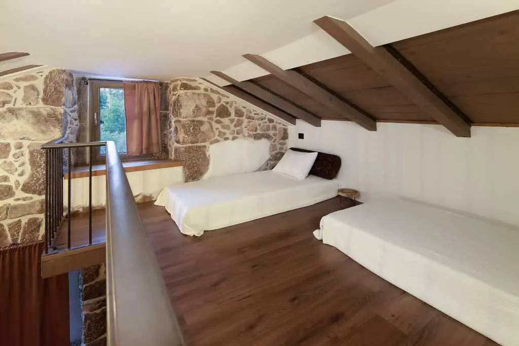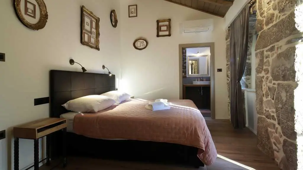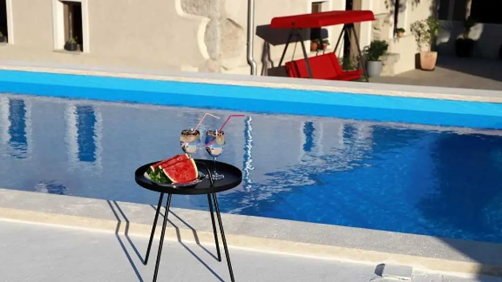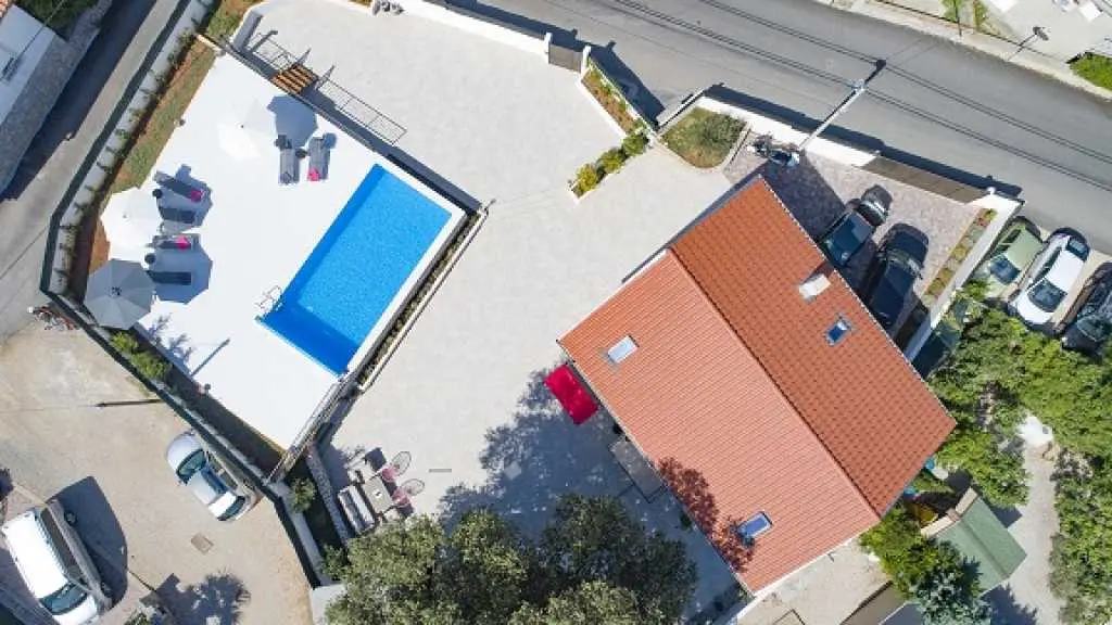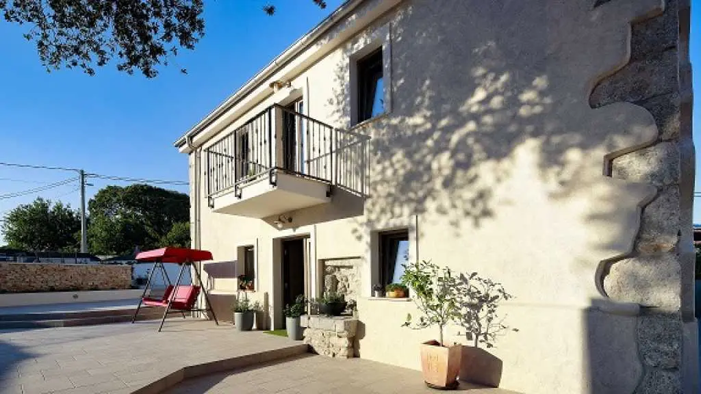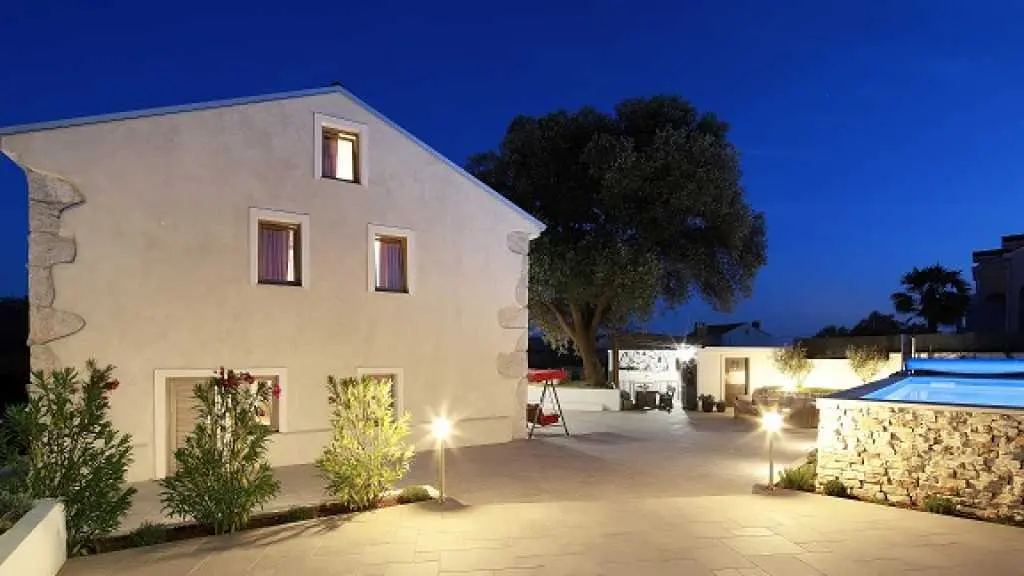The old stone house completely renovated and adapted with its equipment and facilities to a modern lifestyle and family vacation. The house has 3 bedrooms (one room with a gallery and additional accommodation for two children); all rooms with bathrooms (toilet and shower), and an additional toilet on the ground floor (with washing machine). All rooms are air conditioned and equipped with large double beds. The ground floor has a kitchen, dining room and living room (one space); kitchen with all necessary facilities (large refrigerator, dishwasher, oven and hob), as well as ventilation hood. Of the smaller appliances there is a toaster and coffee maker. Dining room with table and chairs for 8 people, in the living room 2 sofas, cable TV and NETFLIX, WIFI -Internet. Fenced garden with closed parking for 3 vehicles, covered summer kitchen with built-in barbecue and bread oven, table for 8 people, stone sink and work surface. The rest of the garden consists of terraces with furniture and a swing for sitting, swimming pool 8 x 4m with a large sun deck, equipped with deck chairs and umbrellas. Also a table tennis table. The house is in the center of Kornic, 1km from the beach Dunat where there are entertainment facilities, restaurant and cafe, ski lift, beach volleyball, and the possibility of renting a boat. 3km from the place is the famous marina Punat and the town of Punat, and to the west 6km is the largest place on the island of Krk, the town of Krk, with many tourist and gastronomic facilities. In the village Kornić is a cafe and shop (100m from the house), as well as a seasonal restaurant MAREA (50m from the house). In the village there is a post office, beauty salon, bakery, and 2km north of Lakmartin is the farm OPG MAGRIŽ.