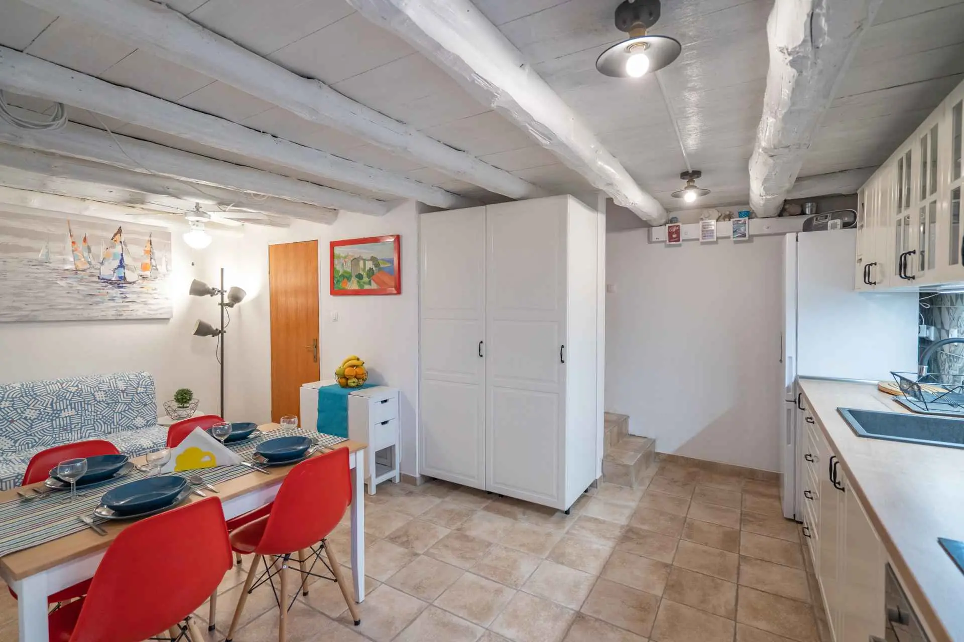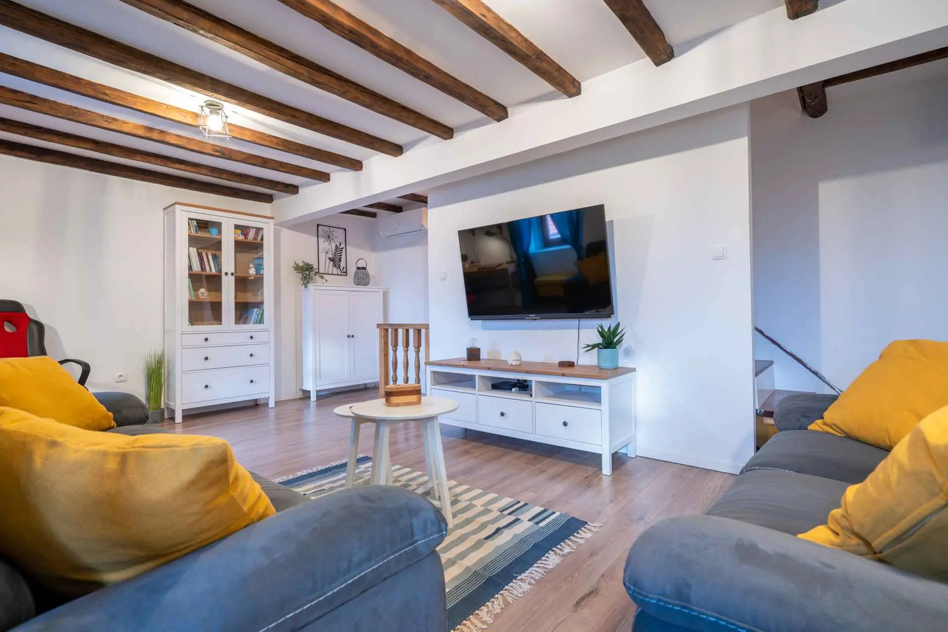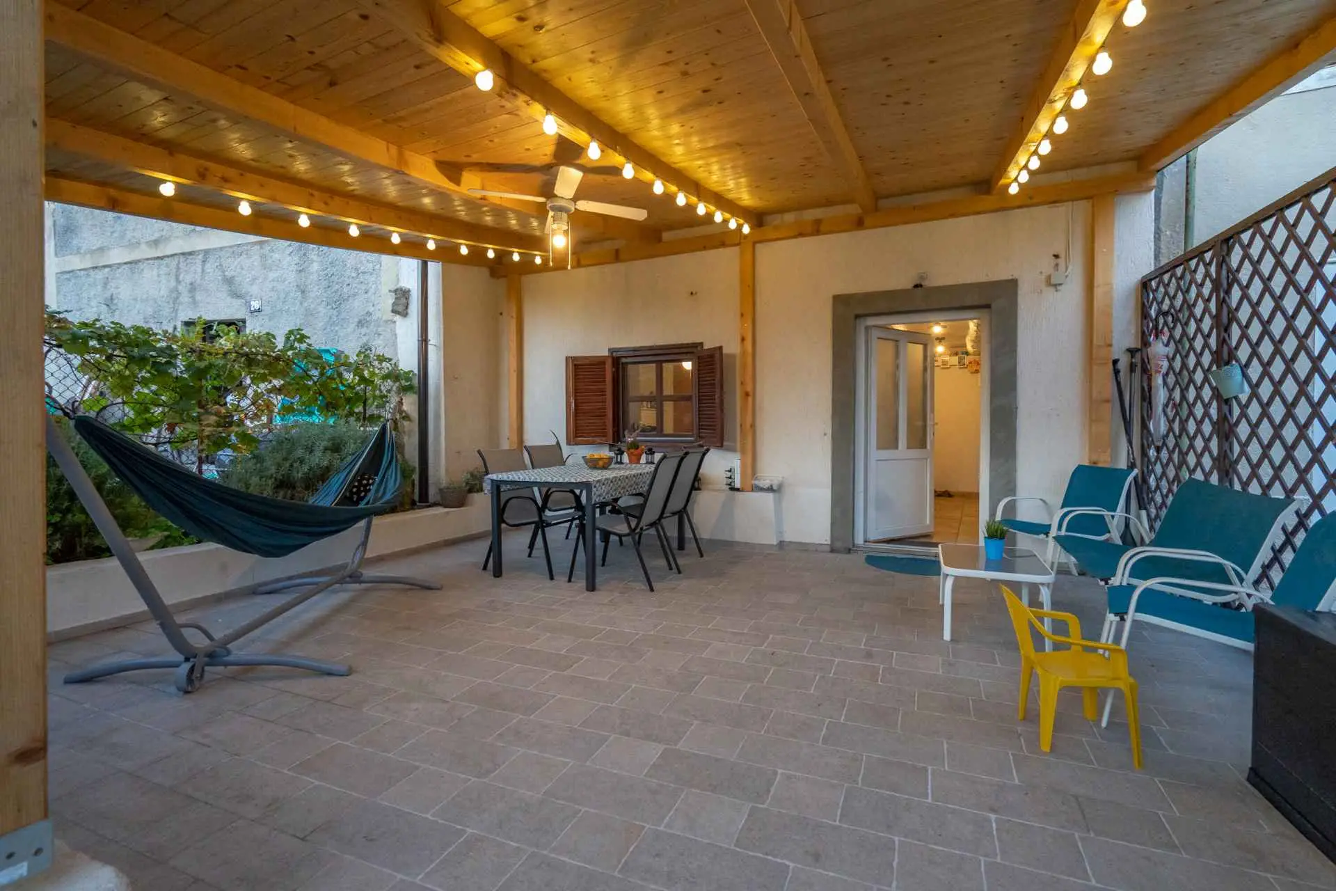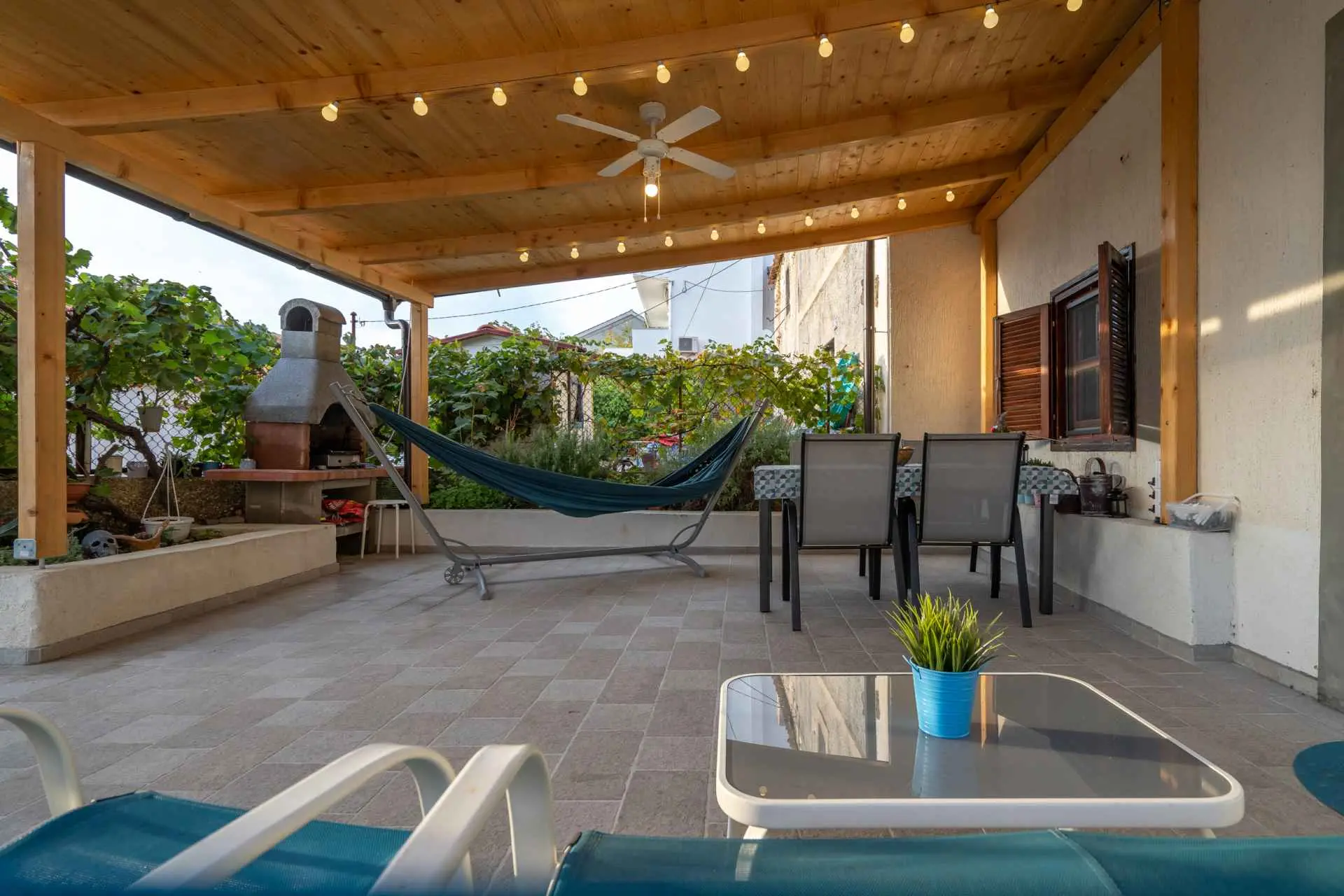House Nova is located at the beginning of the village, 100 meters from the church and 100 meters from the beach. It has two separate bedrooms, two air conditioning, a washing machine, equipped kitchen, a living room, a toilet, and a bathroom. On the second floor, there are two bedrooms and a bathroom. For additional relaxation on the first floor you have a large TV screen and a nice comfortable sofa for watching the program of your choice or a desk in case you need it. On the ground floor of the house, there is a kitchen with a dining room and toilet, all connected to a covered terrace with a barbecue available. The private parking place, free of charge, is located around 100 meters from the apartment, right next to the church.