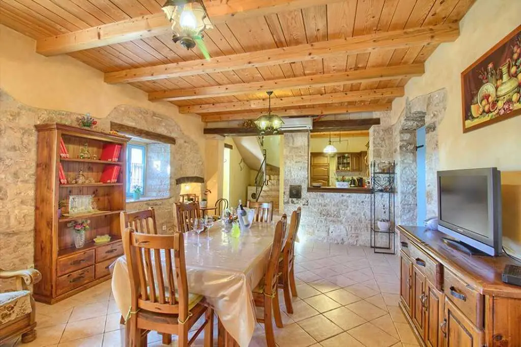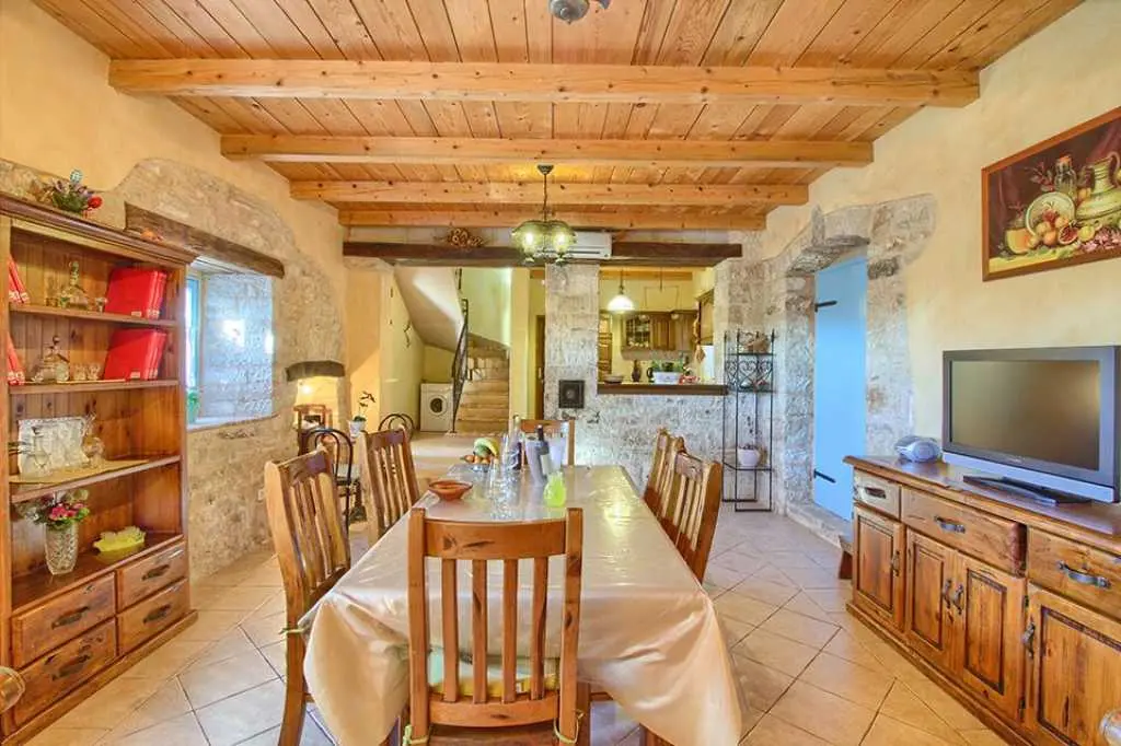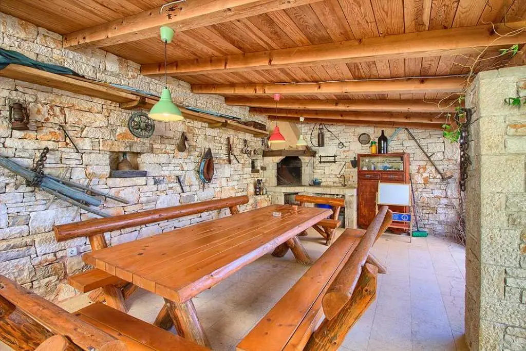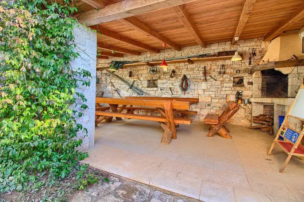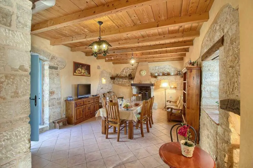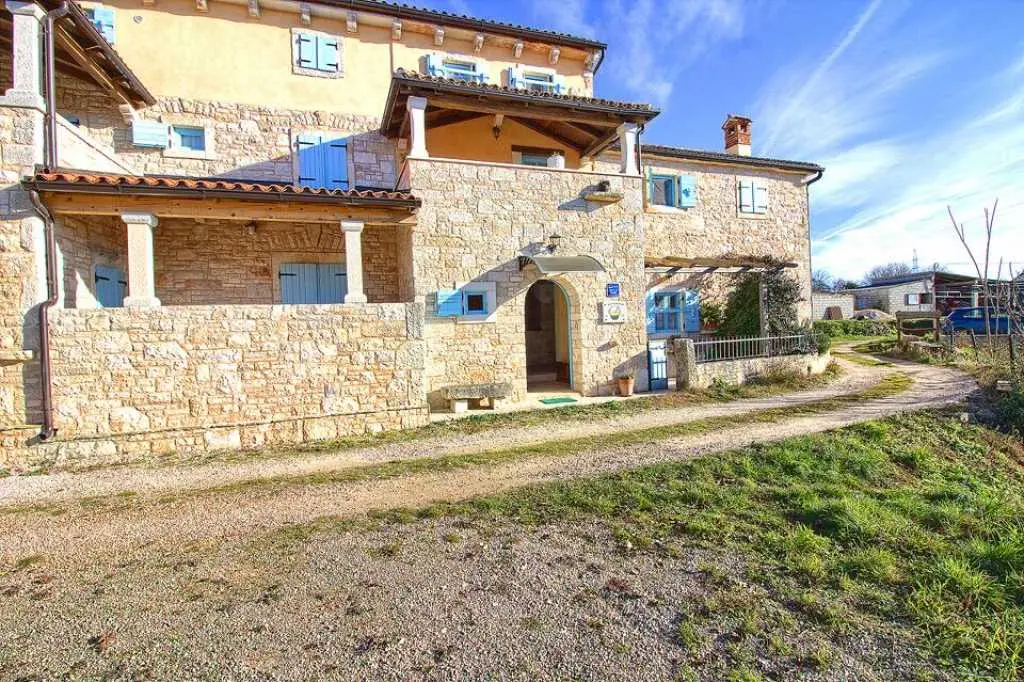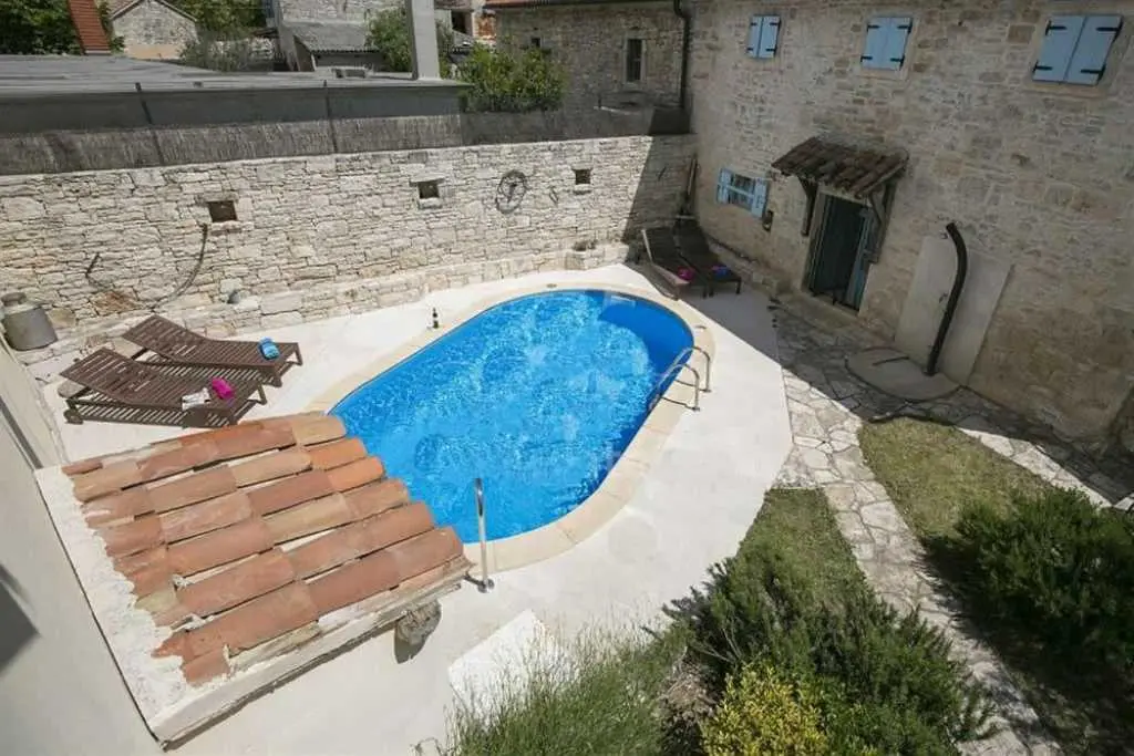 The 4-star Villa Palentar consists of 2 lovingly restored Istrian stone houses. The larger of the two separate houses has 3 bedrooms and 3 bathrooms with shower and toilet. There is an additional toilet on the ground floor. The smaller house has a bedroom and a bathroom with shower and toilet as well as an additional toilet on the ground floor. Both houses have a new kitchen with a large refrigerator, freezer, stove, oven, microwave and dishwasher as well as a living/dining room. The amenities of this property include an outdoor pool and a large covered barbecue area with a wooden table and wooden benches for at least 10 people. Free parking is available for 4 cars. Dogs are welcome at no extra charge. Guests can surf in the Internet using free wireless Internet access, and satellite television is also available.