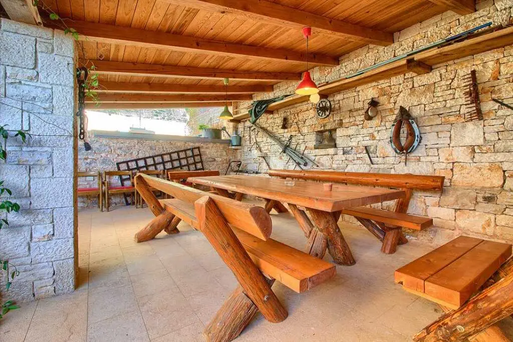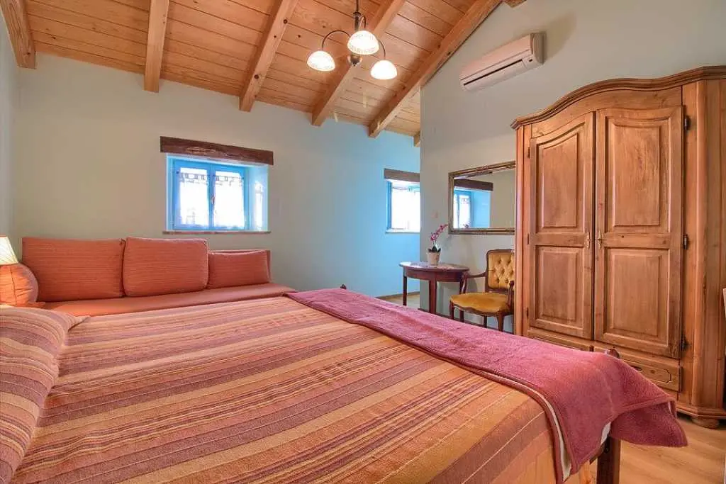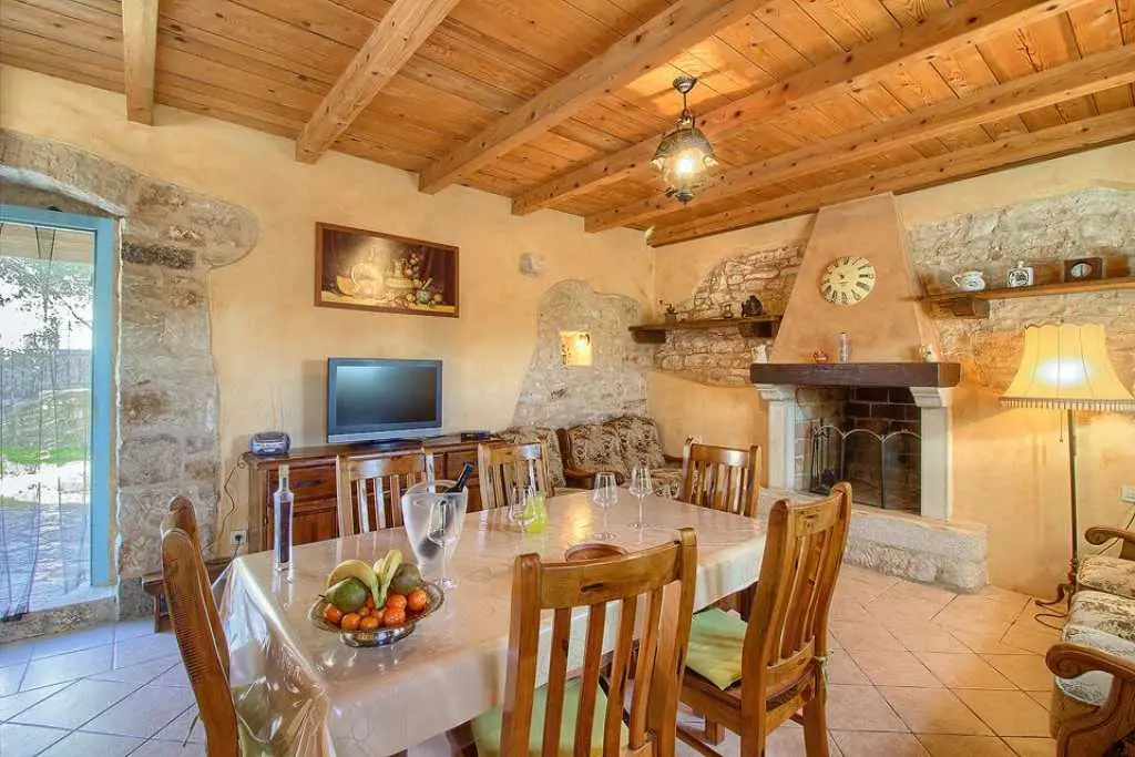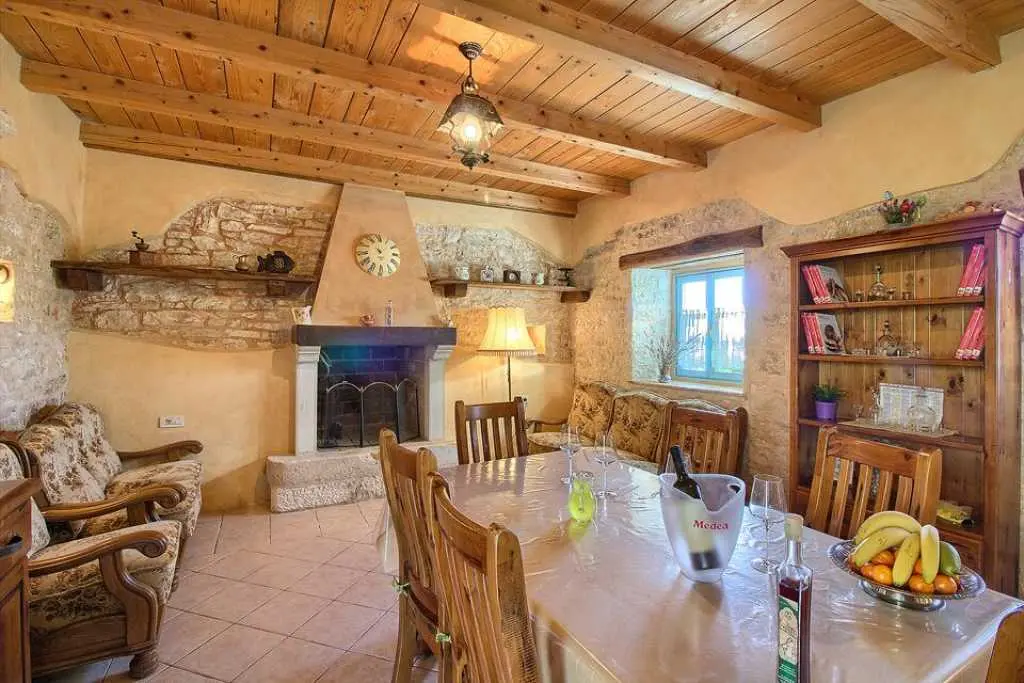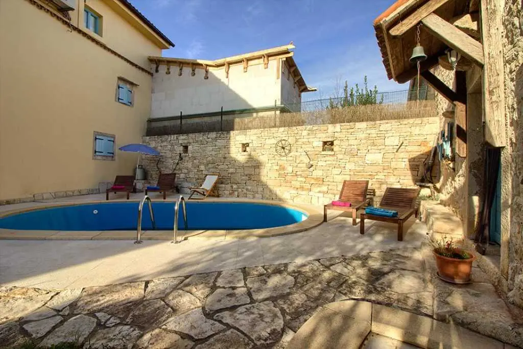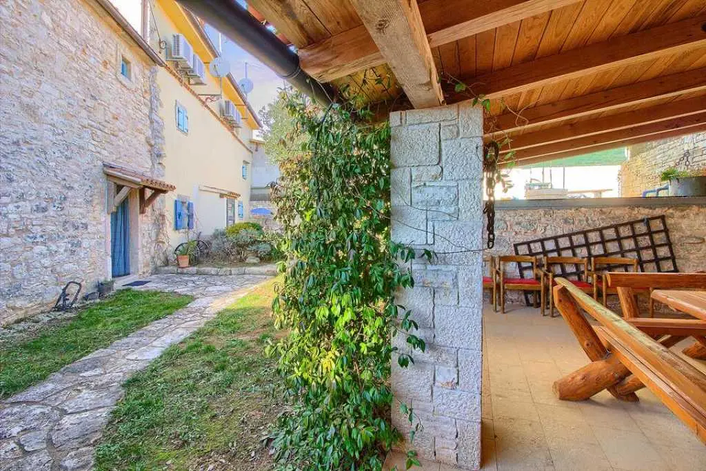 The 4-star Villa Palentar consists of 2 lovingly restored Istrian stone houses. The larger of the two separate houses has 3 bedrooms and 3 bathrooms with shower and toilet. There is an additional toilet on the ground floor. The smaller house has a bedroom and a bathroom with shower and toilet as well as an additional toilet on the ground floor. Both houses have a new kitchen with a large refrigerator, freezer, stove, oven, microwave and dishwasher as well as a living/dining room. The amenities of this property include an outdoor pool and a large covered barbecue area with a wooden table and wooden benches for at least 10 people. Free parking is available for 4 cars. Dogs are welcome at no extra charge. Guests can surf in the Internet using free wireless Internet access, and satellite television is also available.