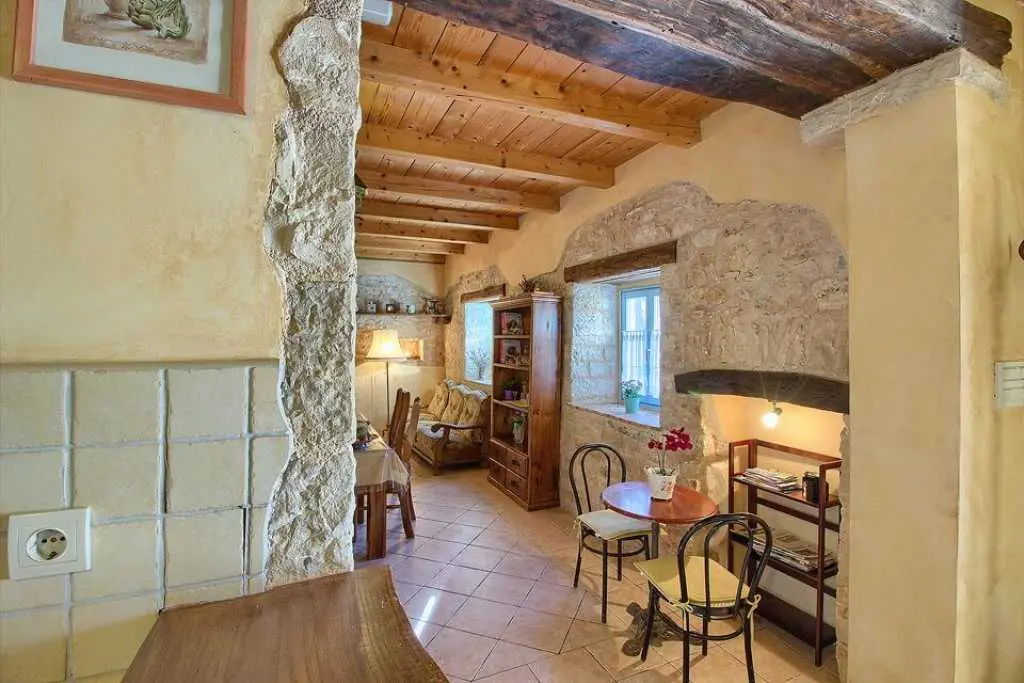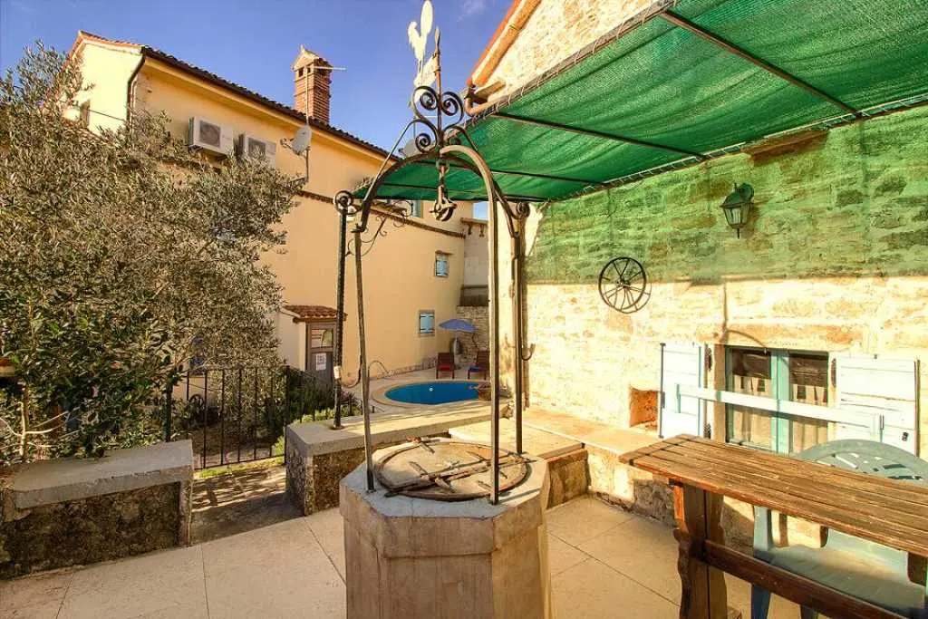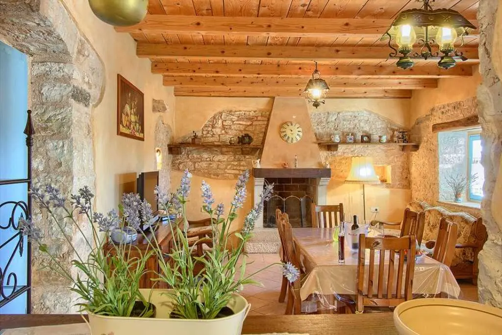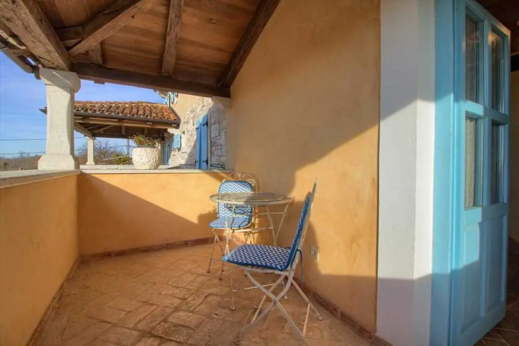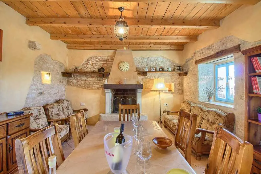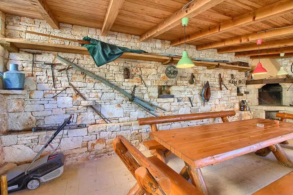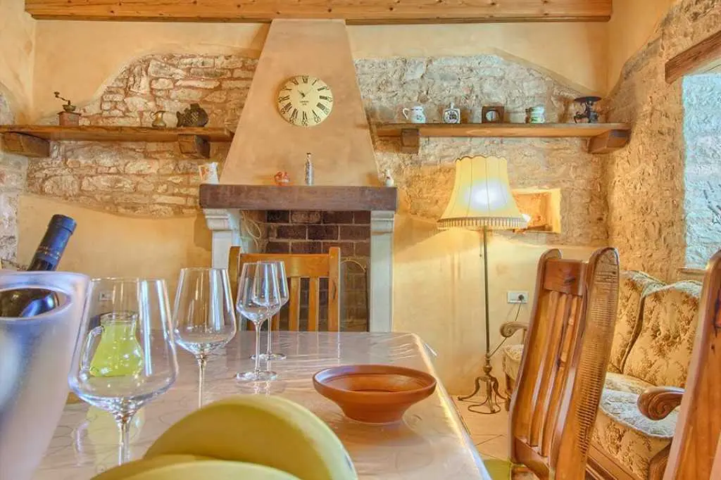 The 4-star Villa Palentar consists of 2 lovingly restored Istrian stone houses. The larger of the two separate houses has 3 bedrooms and 3 bathrooms with shower and toilet. There is an additional toilet on the ground floor. The smaller house has a bedroom and a bathroom with shower and toilet as well as an additional toilet on the ground floor. Both houses have a new kitchen with a large refrigerator, freezer, stove, oven, microwave and dishwasher as well as a living/dining room. The amenities of this property include an outdoor pool and a large covered barbecue area with a wooden table and wooden benches for at least 10 people. Free parking is available for 4 cars. Dogs are welcome at no extra charge. Guests can surf in the Internet using free wireless Internet access, and satellite television is also available.