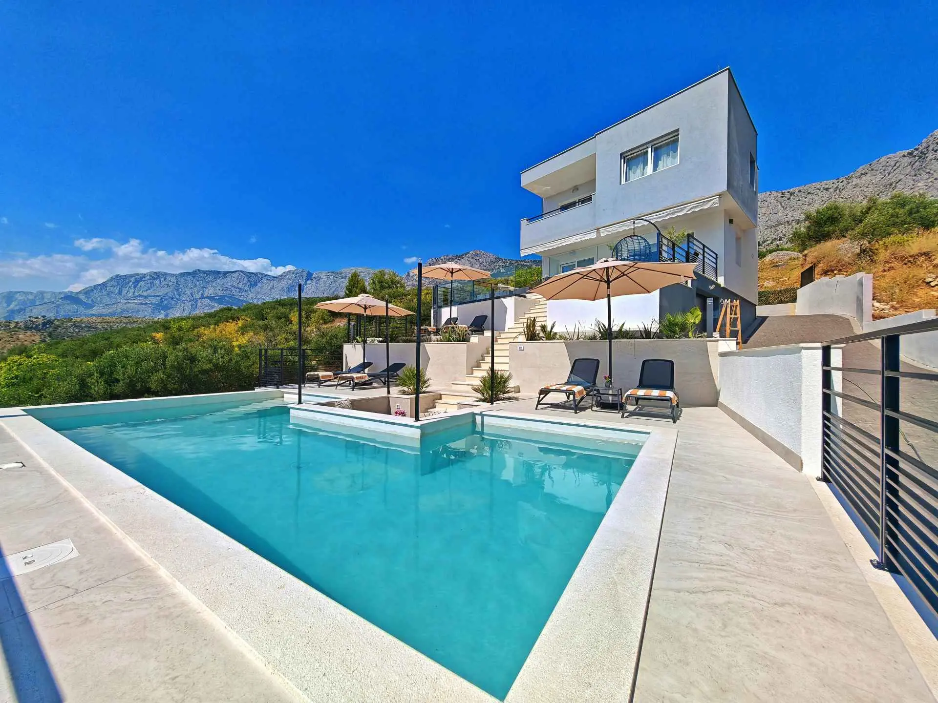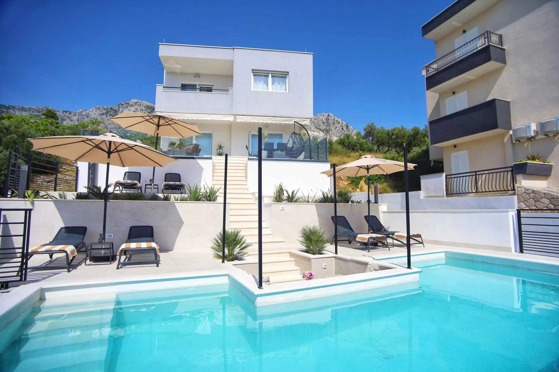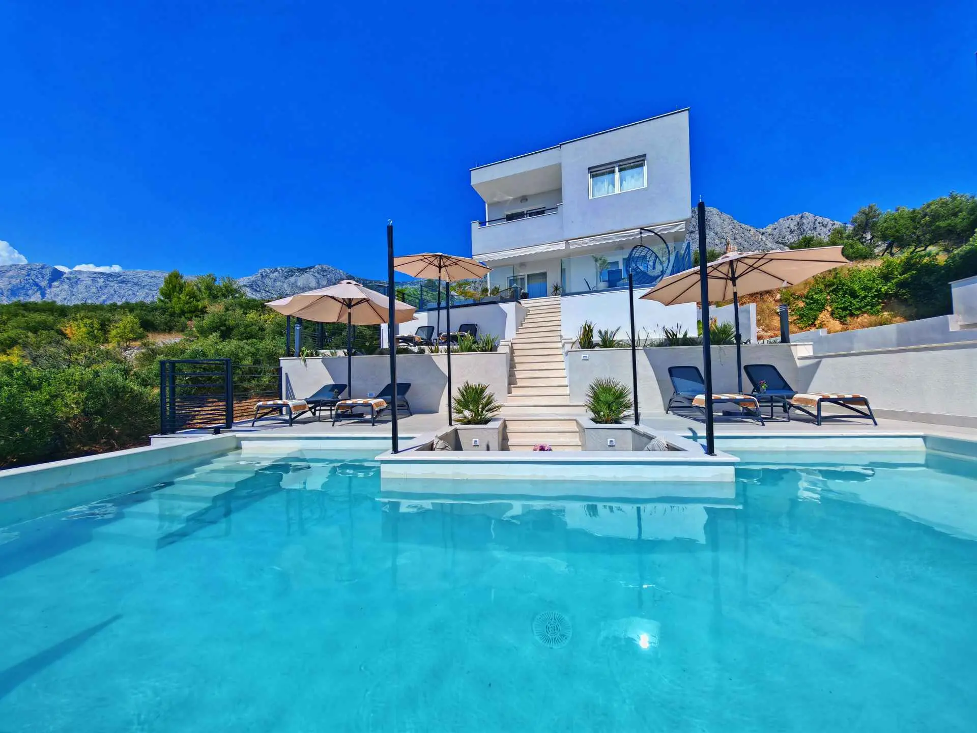 To see interior pictures, visit https://www.facebook.com/Luxury-Holiday-home-Dioniz-107336354262020/?ref=aymt_homepage_panel&eid=ARBzfjBrLxvxhs34boNvOUGWLnb-t4qcwVYQm0ELjrQ3PwWRByBO0xlrC8jwCnYu9lQay3-X7CA0tW8V Holiday home Dioniz is situated in Podgora, one of the nicest towns at Makarska Riviera. If you wish to enjoy the oasis by the Adriatic sea, we are the right choice. Holiday home Dioniz is in a peaceful neighbourhood with it's own driveway, garage and an additional parking place and a pool. It's air conditioned and covered by WI-FI. It can accommodate 6 persons, has 2 bedrooms at your disposal, one of which has a hot tub. The view is absolutely astonishing, you can see the sea, Podgora harbour and the old town center. The house has a bathroom, separate toilet, and a small laundry room. We tried to fit the whole house with a modern furniture, which is highlighted in dining and living room, with a big screen TV offering satellite channels. Fully-equipped kitchen has everything you need to prepare your favourite dishes, but outside grill is also available to use. Podgora is a beautiful town, rich with small bays and sandy beaches with a clear blue sea. Just a mile north there is a national nature park Biokovo that is highly worth a visit, walking, cycling or even a picnic. Don't forget Makarska, an adorable city full of history and culture which will leave you breathless. Podgora offers daily trips to the surrounding islands of the Riviera, you can try a number of water sports, or you can go white water rafting in Cetina river, Omiš. If you wish, we can organise everything, you just have to come and spend the best vacation ever.