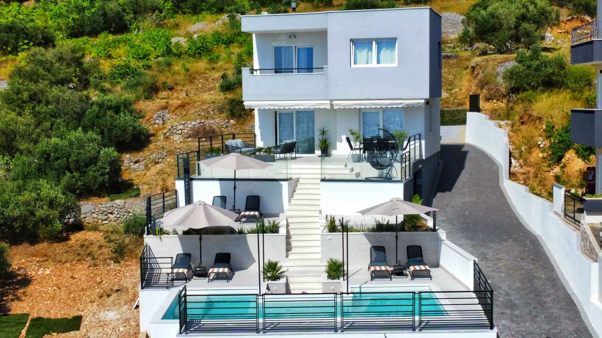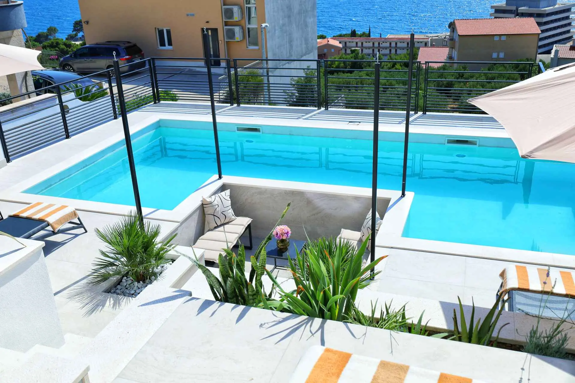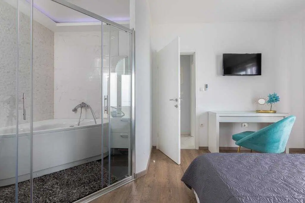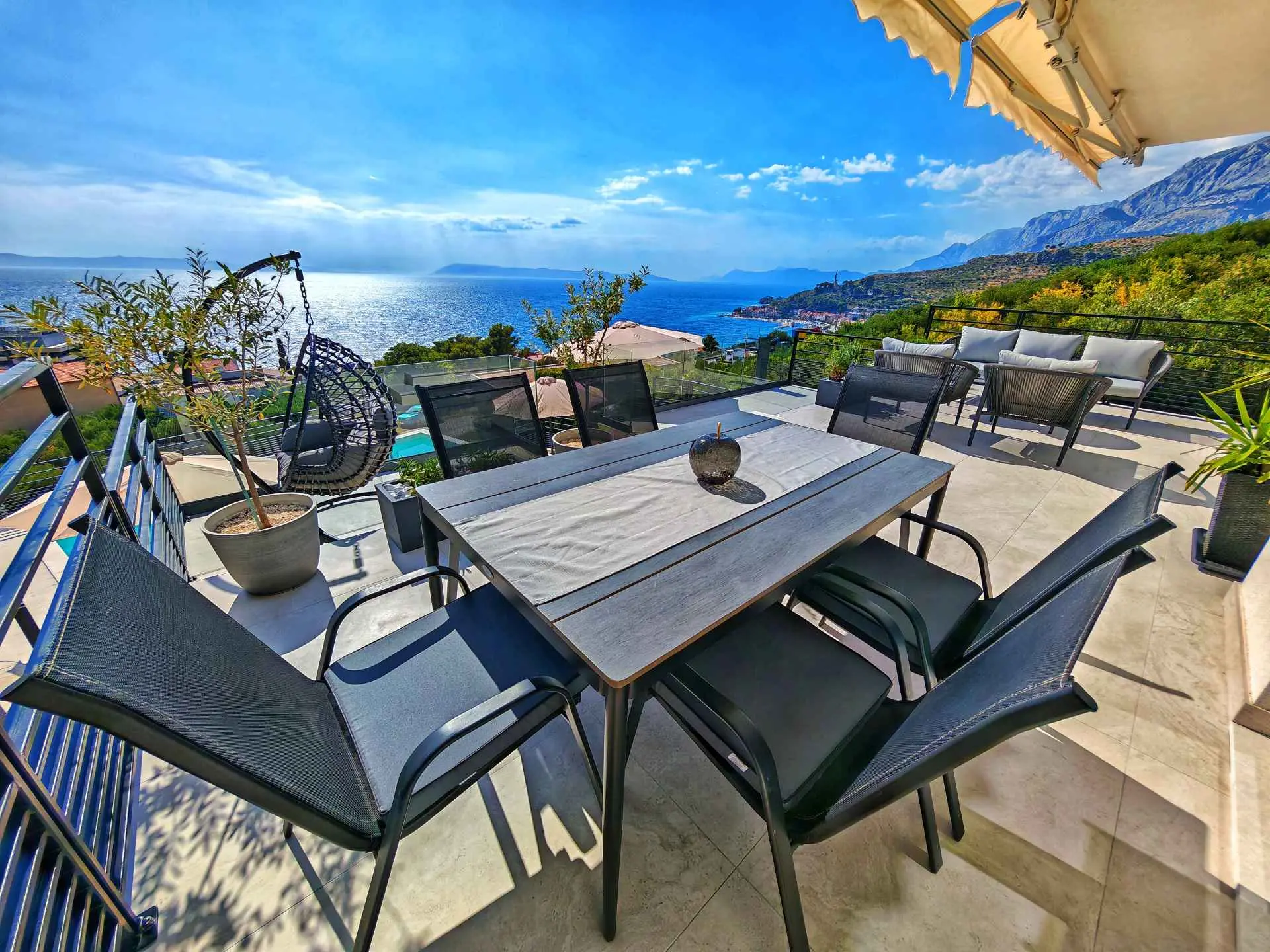 To see interior pictures, visit https://www.facebook.com/Luxury-Holiday-home-Dioniz-107336354262020/?ref=aymt_homepage_panel&eid=ARBzfjBrLxvxhs34boNvOUGWLnb-t4qcwVYQm0ELjrQ3PwWRByBO0xlrC8jwCnYu9lQay3-X7CA0tW8V Holiday home Dioniz is situated in Podgora, one of the nicest towns at Makarska Riviera. If you wish to enjoy the oasis by the Adriatic sea, we are the right choice. Holiday home Dioniz is in a peaceful neighbourhood with it's own driveway, garage and an additional parking place and a pool. It's air conditioned and covered by WI-FI. It can accommodate 6 persons, has 2 bedrooms at your disposal, one of which has a hot tub. The view is absolutely astonishing, you can see the sea, Podgora harbour and the old town center. The house has a bathroom, separate toilet, and a small laundry room. We tried to fit the whole house with a modern furniture, which is highlighted in dining and living room, with a big screen TV offering satellite channels. Fully-equipped kitchen has everything you need to prepare your favourite dishes, but outside grill is also available to use. Podgora is a beautiful town, rich with small bays and sandy beaches with a clear blue sea. Just a mile north there is a national nature park Biokovo that is highly worth a visit, walking, cycling or even a picnic. Don't forget Makarska, an adorable city full of history and culture which will leave you breathless. Podgora offers daily trips to the surrounding islands of the Riviera, you can try a number of water sports, or you can go white water rafting in Cetina river, Omiš. If you wish, we can organise everything, you just have to come and spend the best vacation ever.