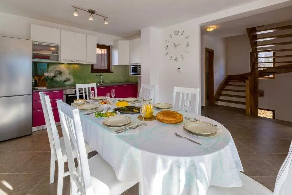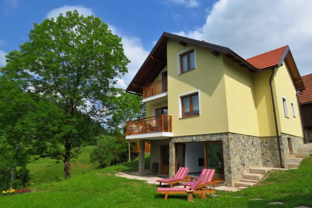 Newly built gorgeous house of 180 m2 on three floors, for up to 10 people. Built on the site of an old shade, on a plot of 1200 m2. In the basement there is a basement (a communal room decorated in a gorgeous style, with a fireplace on the wood). In addition there is an indoor pool size (300 x 260), a Finnish sauna for relaxation and a shower. The first floor is dominated by a large living room with a kitchen and dining room, a living room with a terrace overlooking the Dobre valley and the surrounding green hills. There is one room equipped with a double bed and a bathroom with a shower. On the attic are three bedrooms, one room equipped with two single beds, one room with double bed (160x 200), one with a sofa bed (160x 200). In addition, spacious bathrooms are equipped with a shower and a washing machine. Parking space, green and spacious garden with outdoor grill and gazebo for enjoying the air. In Moravice, on state road D3 (70 km from Rijeka and 90 km from Zagreb), Vučinići village turns into the valley of the river Dobre, passes by the train station and comes to the small village of Žakule.
