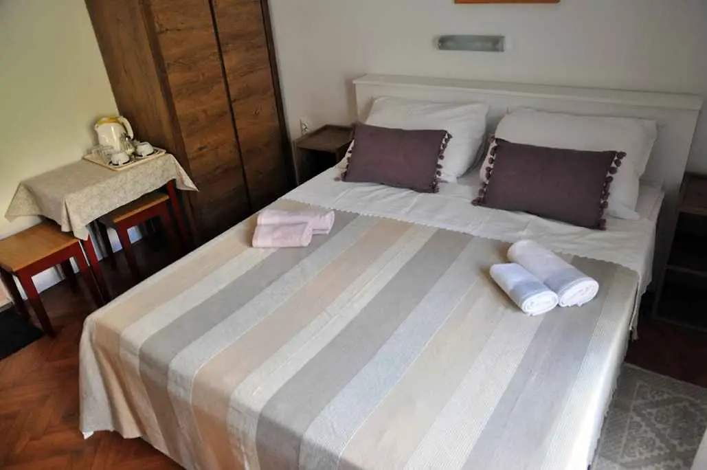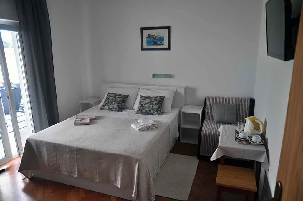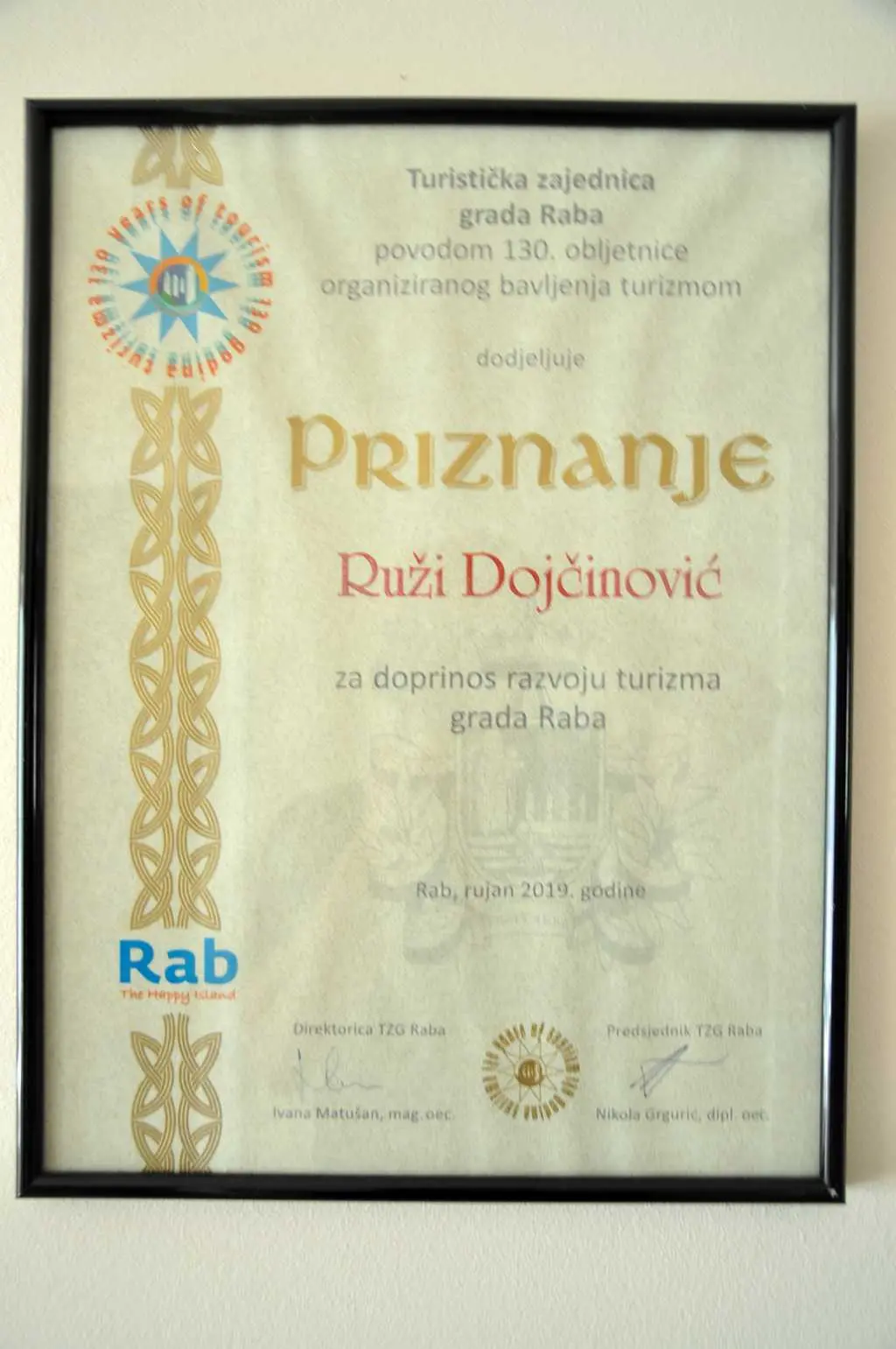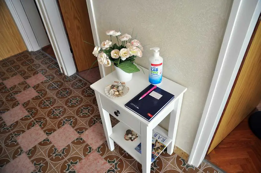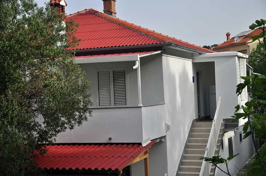 Family house with rooms for rent is located in a quiet place in an old olive grove overlooking the old town of Rab. The rooms are located on the first floor and each room is a separate unit with its own entrance and terrace. The rooms are double, plus extra bed, spacious and comfortable with private bathroom. Rooms have Smart TV, free wifi, always clean bed linen, towels, soap, shampoo, shower gel, hair dryer, refrigerator in the hallway at 10m, smoke detector, ceiling fan for pleasant natural cooling and kettle with cups. Free parking is provided for guests, the host is available 24 hours a day for their guests.
